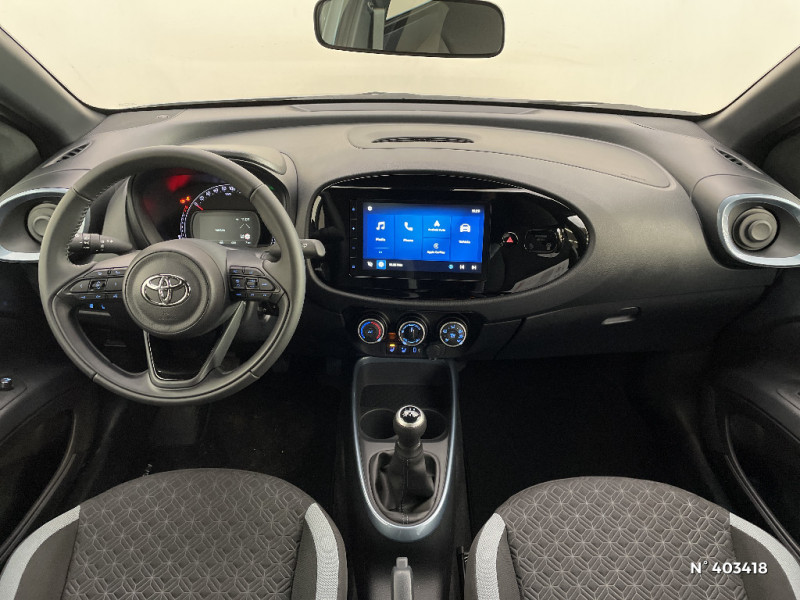 Branche centrale du volant noir laqué / Calandre noir laqué / Carrosserie bi-ton avec toit et piliers peints en noir / Ciel de toit noir / Combiné d'instrumentation avec écran couleur TFT multifonction 4,2" / Compte-tours / Connectivité smartphone Apple CarPlay et Android Auto sans fil / Contour d'aérateurs couleur carrosserie / Contour de console centrale couleur carrosserie / Contour de l'écran tactile noir laqué / Coques de rétroviseurs noires / Eclairage de coffre / Fermeture centralisée avec commande à distance / Indicateur de perte de pression des pneus / Insert de pare-chocs AR couleur carrosserie / Jantes en alliage 17" noir usiné avec centre de roue avec logo Toyota noir / Kit anti-crevaison / Kit de sécurité / Levier de vitesse en cuir avec surpiqûres couleur carrosserie / Ornements latéraux noirs (partie supérieure du bas de caisse) / Passages de roues et bas de caisse latéraux noirs / Poignées de portes extérieurs couleur carroserie / Pommeau de levier de vitesse avec contour chromé / Porte-gobelets (2) / Projecteurs AV et clignotants halogènes / Rétroviseurs extérieurs électriques, dégivrants et rabattables manuellement / Sellerie tissu avec contour d'assise et de dossier couleur carrosserie / Services connectés standards MyToyota (inclus 10 ans) / Système d'appel d'urgence automatique "E-Call" / Système de contrôle de stabilité (VSC) + Système de contrôle de motricité (TRC) / Système de freinage antiblocage ABS / Système multimédia Toyota Touch 3 avec écran couleur tactile 9" haute définition, Bluetooth, USB, Radio FM et DAB (digitale), Système de connectivité smartphone Apple CarPlay et Android Auto (sans fil) / Système multimédia Toyota Touch 3 avec écran couleur tactile 9", radio digitale (DAB) et système de téléphonie Bluetooth / Tapis de sol AV/AR / Toyota Safety Sense Système de sécurité précollision avec détection des véhicules, des piétons et des cyclistes, actif également dans les intersections, Alerte de franchissement de ligne avec aide au maintien dans la voie et assistant de trajectoire, Régulateur de vitesse adaptatif intelligent, Lecture des panneaux de signalisation, Gestion automatique des feux de route / Toyota Safety Sense Système de sécurité précollision avec détection des véhicules, piétons et cyclistes, actif également dans les intersections. Alerte de franchissement de ligne avec aide au maintien dans la file, assistant de trajectoire et détecteur de fatigue, Lecture des panneaux de signalisation avec limiteur de vitesse, Gestion automatique des feux de route, Régulateur de vitesse adaptatif intelligent / Volant cuir avec commandes au volant / 1 Port USB de type C sur console centrale / 1 prise 12V AV sur console centrale / 4 HP