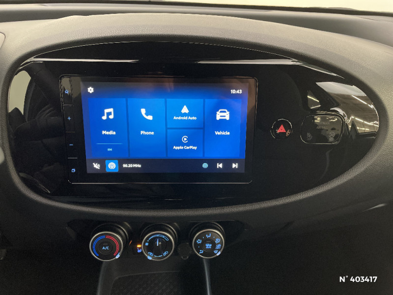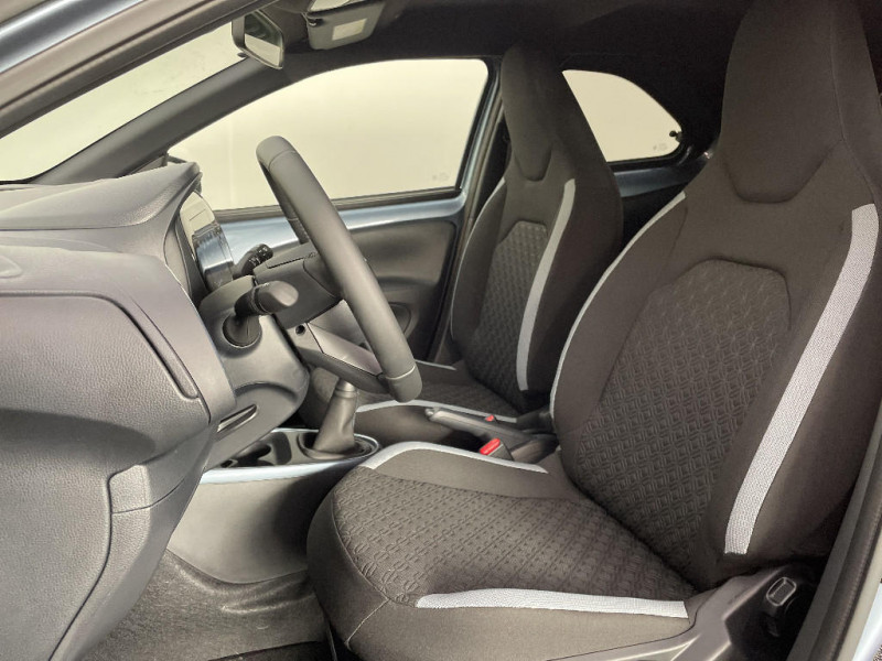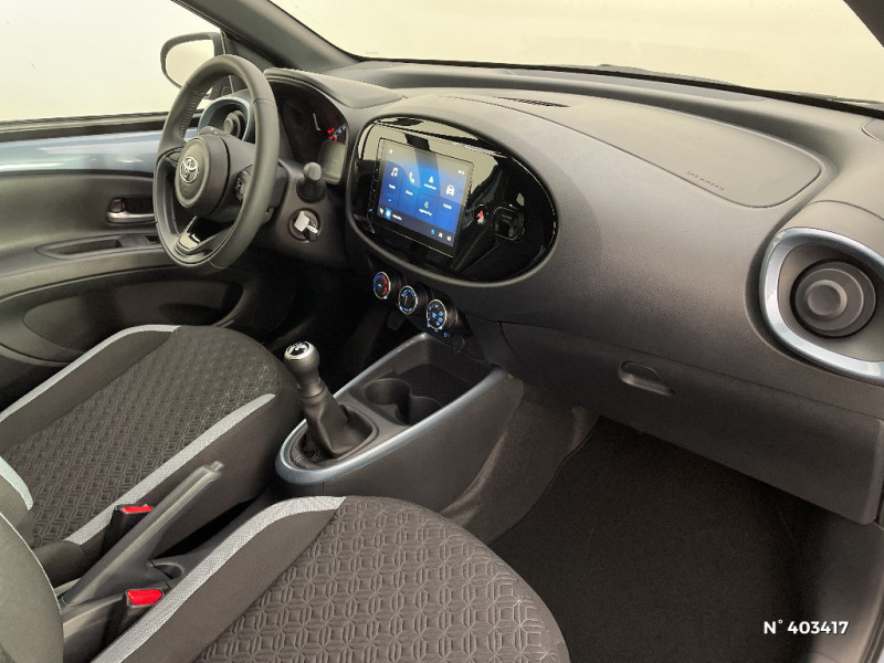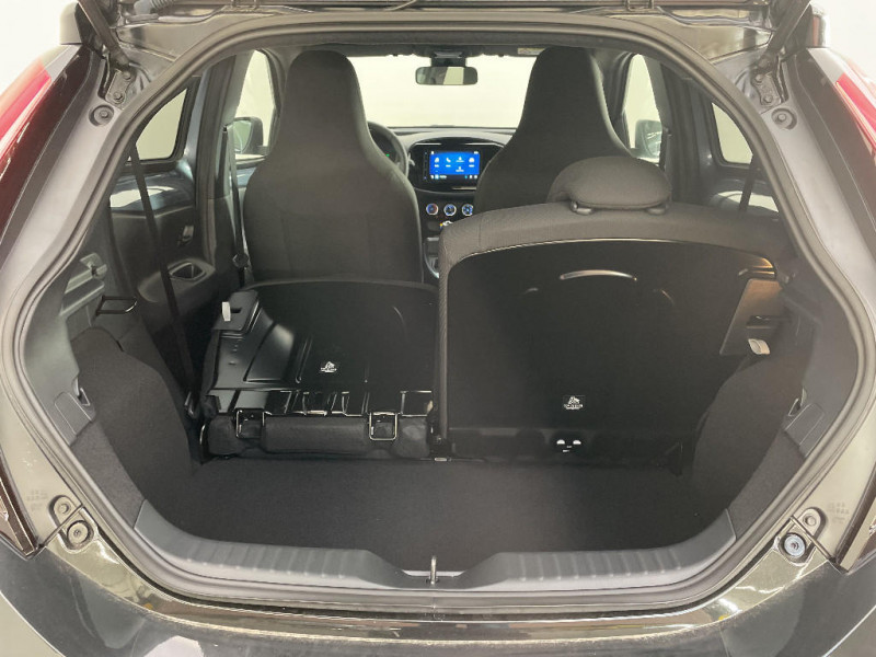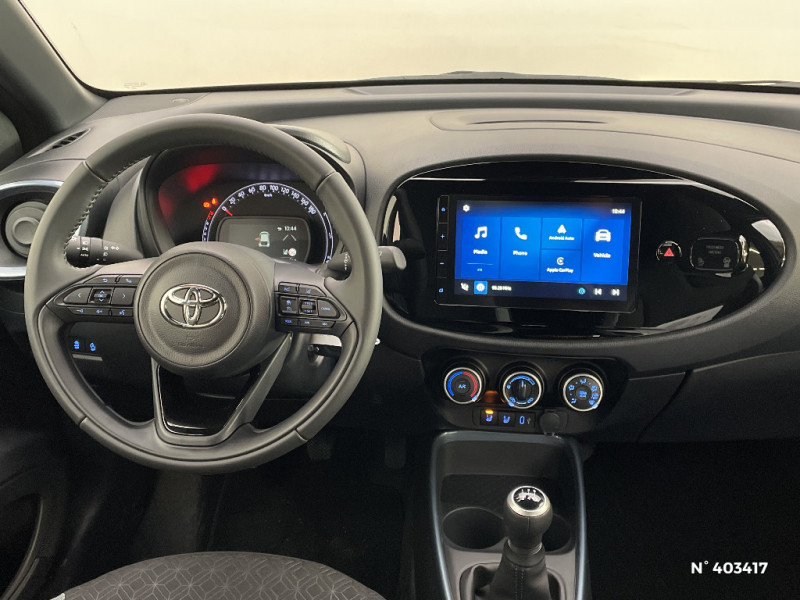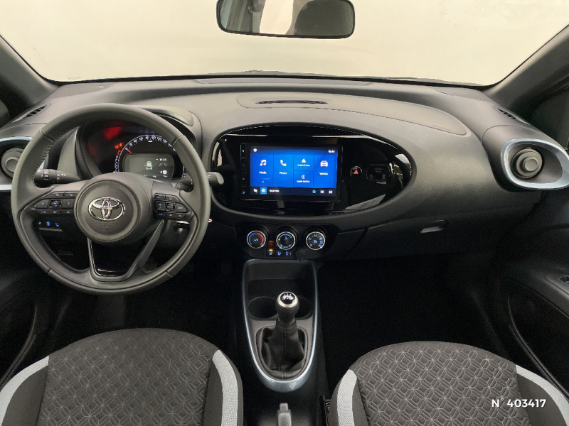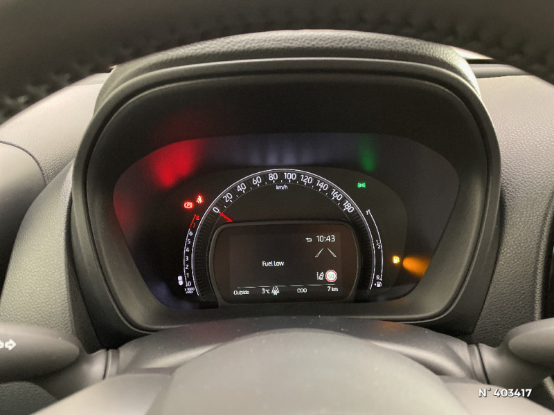 Calandre noir laqué / Carrosserie bi-ton avec toit et piliers peints en noir / Ciel de toit noir / Combiné d'instrumentation avec écran couleur TFT multifonction 4,2" / Compte-tours / Connectivité smartphone Apple CarPlay et Android Auto avec câble USB / Contour de console centrale couleur carrosserie / Branche centrale du volant noir laqué / Contour de l'écran tactile noir laqué / Contours d'aérateurs couleur carrosserie / Coques de rétroviseurs extérieurs peintes en noir / Eclairage de coffre / Fermeture centralisée avec commande à distance / Indicateur de perte de pression des pneus / Insert de pare-chocs AR couleur carrosserie / Jantes en alliage 17" noir usiné avec centre de roue avec logo Toyota noir / Kit anti-crevaison / Kit de sécurité / Levier de vitesse en cuir avec surpiqûres couleur carrosserie / Ornements latéraux noirs (partie supérieure du bas de caisse) / Passages de roues et bas de caisse latéraux noirs / Poignées de portes extérieures couleur carroserie / Pommeau de levier de vitesses avec contour chromé / Porte-gobelet / Projecteurs AV et clignotants halogènes / Rétroviseurs dégivrants et réglables électriquement (rabattables manuellement) / Sellerie tissu avec contour d'assise et de dossier couleur carrosserie / Services connectés MyT (Niveau de carburant, trouver mon véhicule, données de conduite, voyants d'avertissements, service et entretien) / Système d'appel d'urgence automatique "E-Call" / Système de freinage antiblocage ABS / Système multimédia Toyota Touch avec écran couleur tactile 8'', radio digitale (DAB), système téléphonique Bluetooth / Systèmes de contrôle de stabilité (VSC) et de motricité (TRC) / Tapis de sol AV/AR / Toyota Safety Sense : Système de sécurité précollision avec détection des véhicules, des piétons et des cyclistes, actif également dans les intersections, Alerte de franchissement de ligne avec aide au maintien dans la voie et assistant de trajectoire, Régulateur de vitesse adaptatif intelligent, Lecture des panneaux de signalisation et Commutation automatique des feux de route / 1 Port USB de type A sur console centrale / 4 HP