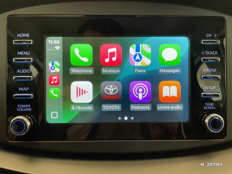 Indicateur de perte de pression des pneus / Jantes en acier 17" avec enjoliveurs et centre de roue avec logo Toyota / Kit anti-crevaison / Kit de sécurité / Passages de roues et bas de caisse latéraux noirs / Peinture Blanc Pur / Poignées de portes noires / Porte-gobelet / Projecteurs AV et clignotants et feux halogènes / Système d'appel d'urgence automatique "E-Call" / Système de contrôle de stabilité (VSC) et système de contrôle de motricité (TRC) / Système de freinage antiblocage ABS / Système multimédia Toyota Touch avec écran couleur tactile 7", radio digitale (DAB) et système téléphonique Bluetooth / Tapis de sol AV/AR / Toyota Safety Sense : Système de sécurité précollision avec détection des véhicules, piétons et cyclistes, actif également dans les intersections, Alerte de franchissement de ligne avec aide au maintien dans la file, assistant de trajectoire et détecteur de fatigue, Régulateur de vitesse adaptatif intelligent allant jusqu'à l'arrêt, Lecture des panneaux de signalisation avec limiteur de vitesse et Gestion automatique des feux de route / 1 Port USB type A AV / 2 HP / Appuis-tête AR intdépendants / Ciel de toit gris clair / Combiné d'instrumentation avec écran couleur TFT multifonction 4" / Commande de boîte de vitesses en cuir synthetique / Compte-tours / Connectivité smartphone Apple CarPlay et Android Auto / Coques de rétroviseurs noires / Eclairage de coffre / Fermeture centralisée avec commande à distance