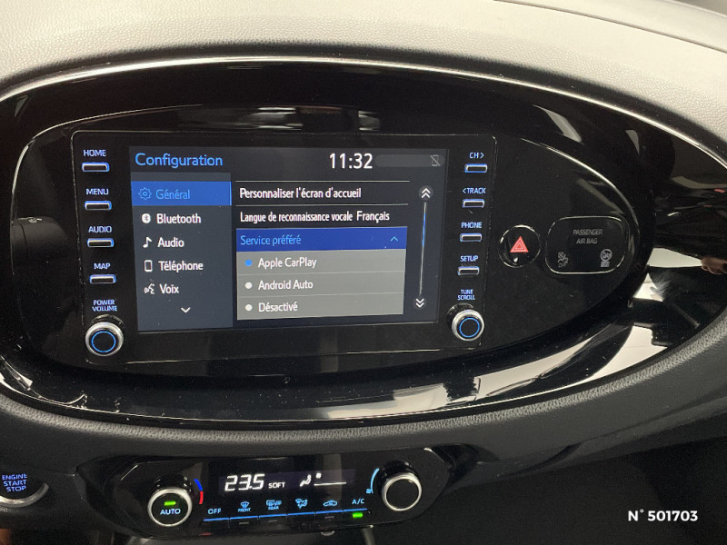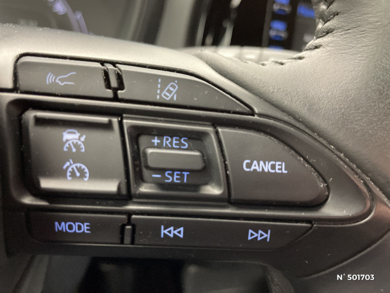 2 HP / Toyota Safety Sense : Système de sécurité précollision avec détection des véhicules, piétons et cyclistes, actif également dans les intersections, Alerte de franchissement de ligne avec aide au maintien dans la file, assistant de trajectoire et détecteur de fatigue, Régulateur de vitesse adaptatif intelligent allant jusqu'à l'arrêt, Lecture des panneaux de signalisation avec limiteur de vitesse et Gestion automatique des feux de route / Système multimédia Toyota Touch avec écran tactile couleur 8" / Porte-gobelet / Jantes alliage 17" avec centre de roues avec logo Toyota noir / Contours d'aérateurs couleur carrosserie / Connectivité smartphone Apple CarPlay et Android Auto / Combiné d'instrumentation avec écran couleur TFT multifonction 4" / Carrosserie bi-ton avec toit et piliers peints en noir