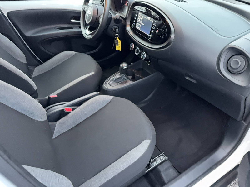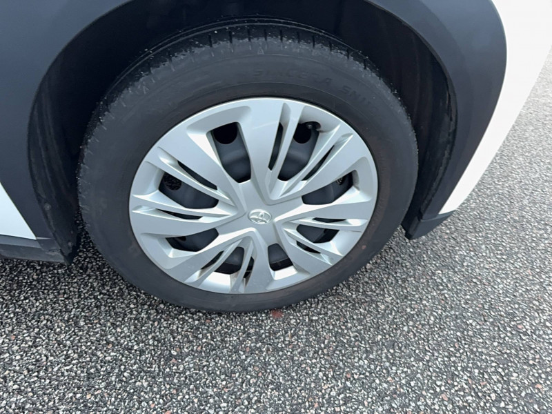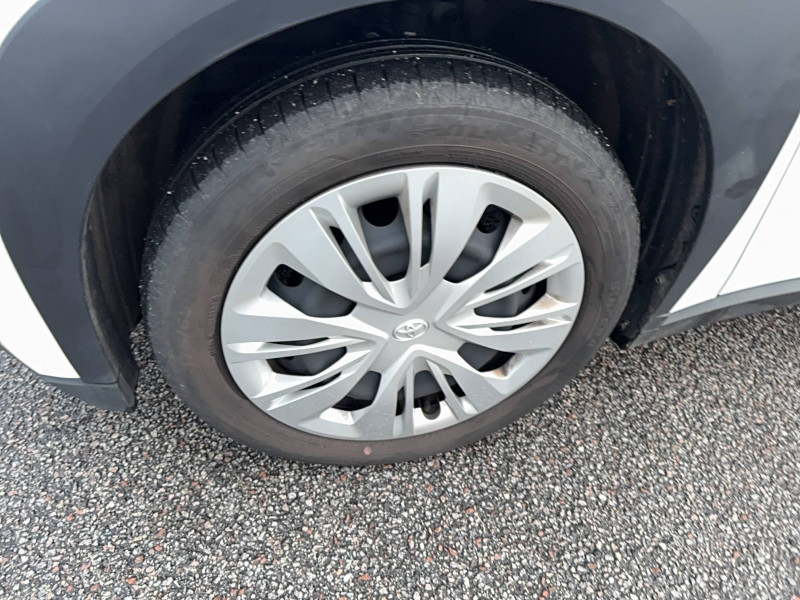 1 Port USB de type A sur console centrale / 4 HP / Branche centrale du volant noir laqué / Ciel de toit gris clair / Combiné d'instrumentation avec écran couleur TFT multifonction 4,2" / Compte-tours / Connectivité smartphone Apple CarPlay et Android Auto avec câble USB / Coques de rétroviseurs extérieurs peintes en noir / Eclairage de coffre / Fermeture centralisée avec commande à distance / Indicateur de perte de pression des pneus / Jantes en acier 17" avec enjoliveurs et centre de roue avec logo Toyota / Kit anti-crevaison / Kit de sécurité / Levier de vitesse en cuir avec surpiqûres / Passages de roues et bas de caisse latéraux noirs / Poignées de portes extérieures couleur carroserie / Porte-gobelet / Projecteurs AV et clignotants halogènes / Rétroviseurs dégivrants et réglables électriquement (rabattables manuellement) / Services connectés MyT (Niveau de carburant, trouver mon véhicule, données de conduite, voyants d'avertissements, service et entretien) / Système d'appel d'urgence automatique "E-Call" / Système de freinage antiblocage ABS / Système multimédia Toyota Touch avec écran couleur tactile 7", radio digitale (DAB) et système téléphonique Bluetooth / Systèmes de contrôle de stabilité (VSC) et de motricité (TRC) / Tapis de sol AV/AR / Toyota Safety Sense : Système de sécurité précollision avec détection des véhicules, des piétons et des cyclistes, actif également dans les intersections, Alerte de franchissement de ligne avec aide au maintien dans la voie et assistant de trajectoire, Régulateur de vitesse adaptatif intelligent, Lecture des panneaux de signalisation et Commutation automatique des feux de route