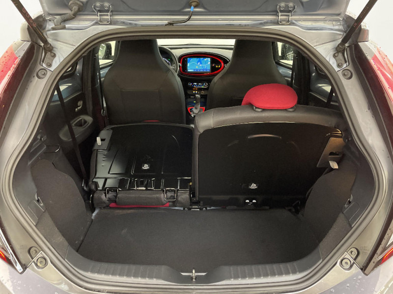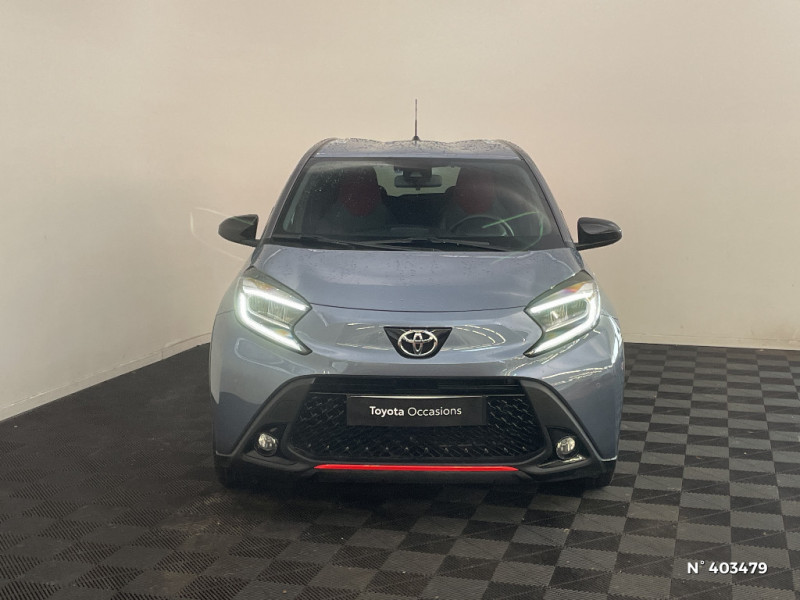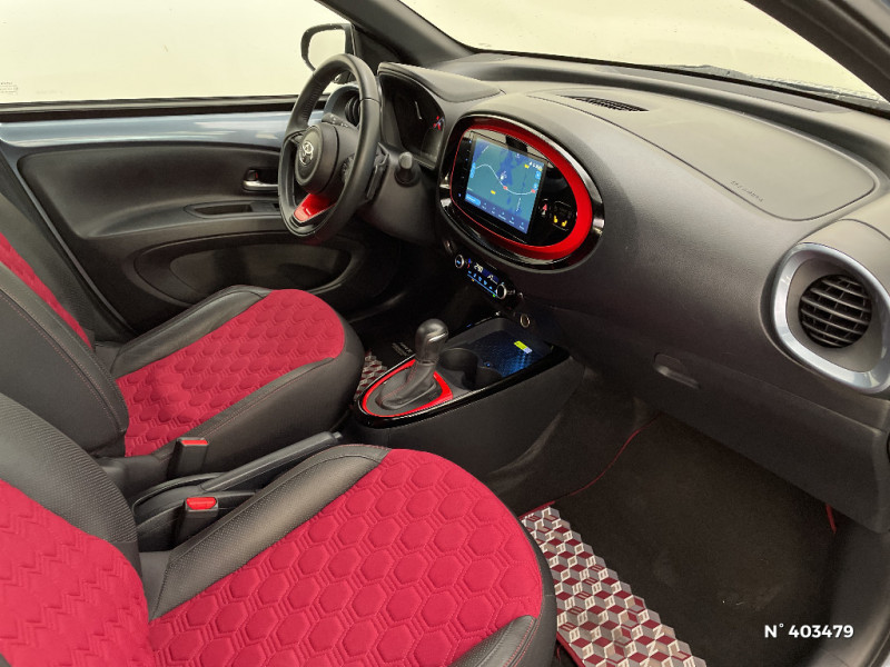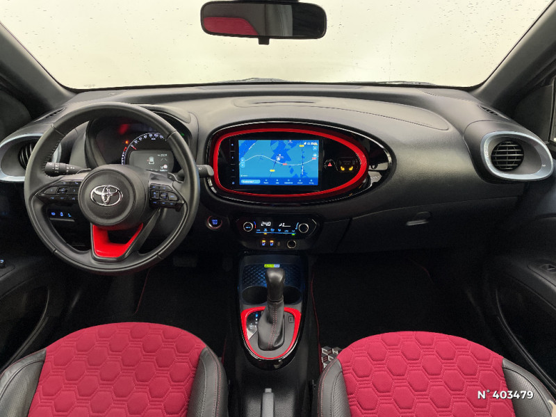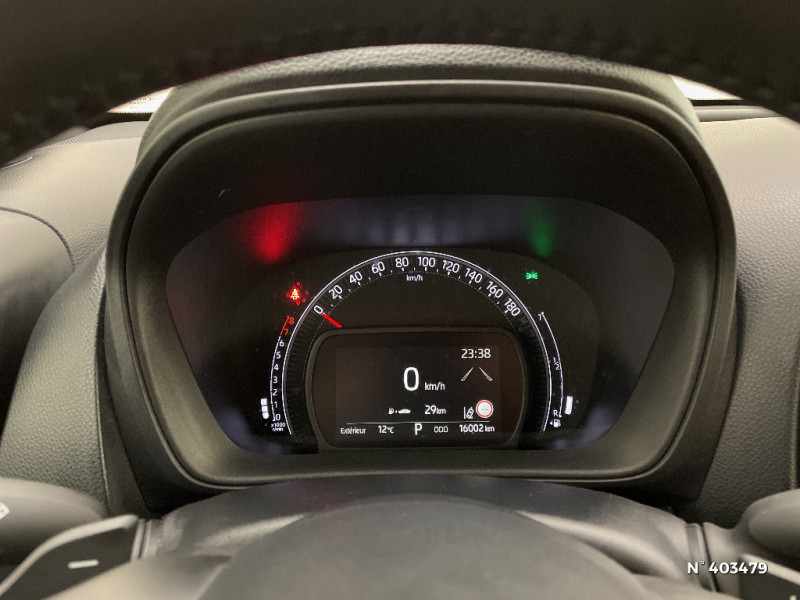 Poignées de portes extérieures couleur carroserie / Porte-gobelet / Rétroviseurs dégivrants et réglables électriquement (rabattables manuellement) / Alerte de franchissement de ligne avec aide au maintien dans la file et assistant de trajectoire / Badge "UNDERCOVER Jun Takahashi" sur la lunette AR / Branche centrale du volant Rouge Corail éclatant / Calandre noir laqué / Carrosserie bi-ton Gris Célestine avec piliers Gris Atlas métallisés / Ciel de toit noir / Combiné d'instrumentation avec écran couleur TFT multifonction 4,2" / Compte-tours / Connectivité smartphone Apple CarPlay et Android Auto sans fil / Contour d'aérateurs Gris Célestine / Contour de console central noir laqué avec insert Rouge Corail éclatant / Contour de l'écran tactile 9" Rouge Corail éclatant / Coques de rétroviseurs extérieurs peintes en noir / Eclairage de coffre / Entourage d'antibrouillards noir laqué / Entourage Rouge Bordeaux sur les tapis de sol / Essuie-glaces AV avec détecteur de pluie / Fermeture centralisée avec commande à distance / Feux AV à extinction différée (Follow me home) / Filtre à air anti-pollen / Gestion automatique des feux de route (AHB) / Impression "Chaos" et "Balance" sur toit Gris Célestine / Indicateur de conduite ECO Drive / Indicateur de perte de pression des pneus / Insert de pare-chocs AR Noir laqué / Inserts Rouge Corail éclatant sur contours, bas de caisse AV/AR / Jantes alliage 18" noir laqué avec inserts Rouge Corail éclatant / Kit anti-crevaison / Levier de vitesse en cuir avec surpiqûres Rouge Bordeaux / Levier de vitesses en cuir synthétique / Logo "Aygo X UNDERCOVER Jun Takahashi" sur les tapis de sol / Lunette AR surteintées / Ordinateur de bord avec écran TFT couleur 4.2" multifonctions / Ornements latéraux noirs (partie supérieure du bas de caisse) / Passages de roues et bas de caisse latéraux noirs / Sellerie mi-cuir avec assise et dossier en tissu aux motifs Rouge Bordeaux Contour d'assise et de dossier en cuir véritable avec surpiqûres / Services connectés MyT avec contrôle à distance (Verrouillage et déverrouillage des portes, localiser mon véhicule (feux clignotants) et commande à distance de température) / Sièges AV avec embossage "UNDERCOVER Jun Takahashi" / Système d'appel d'urgence automatique "E-Call" / Système de freinage antiblocage ABS / Système de sécurté précollision (PCS) / Système d'ouverture/fermeture et démarrage sans clé "Smart Entry & Start" / Système multimédia Toyota Smart Connect avec écran tactile 9" : Navigation connectée avec accès en temps réel aux informations routières et aux données utiles de navigation, "Smart Fuel" (aide à la recherche de stations-service), "Smart Parking" (aide à la recherche de stationnement), 4 ans de mises à jour cartographiques et services connectés inclus, Mise à jour à distance / Systèmes de contrôle de stabilité (VSC) et de motricité (TRC) / Tapis de sol exclusifs avec décorations "UNDERCOVER" / Toyota Safety Sense : Système de sécurité précollision avec détection des véhicules, des piétons et des cyclistes, actif également dans les intersections, Alerte de franchissement de ligne avec aide au maintien dans la voie et assistant de trajectoire, Régulateur de vitesse adaptatif intelligent, Lecture des panneaux de signalisation et Commutation automatique des feux de route / Volant avec insert noir laqué / 1 Port USB de type A sur console centrale / 4 HP