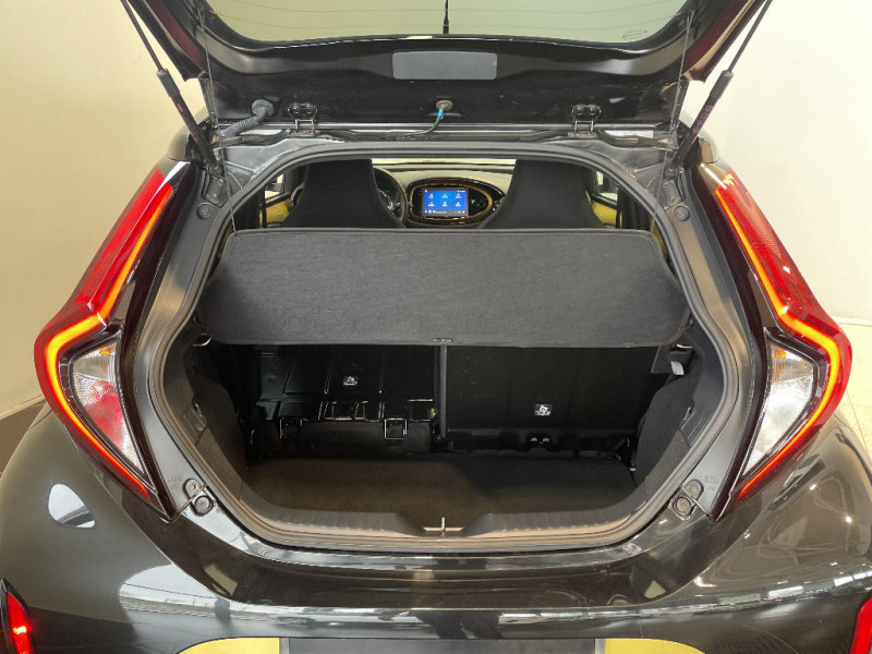 Système de freinage antiblocage ABS / Système multimédia Toyota Smart Connect avec écran tactile 9" : Navigation connectée avec accès en temps réel aux informations routières et aux données utiles de navigation, "Smart Fuel" (aide à la recherche de stations-service), "Smart Parking" (aide à la recherche de stationnement), 4 ans de mises à jour cartographiques et services connectés inclus, Mise à jour à distance / Système multimédia Toyota Touch avec écran tactile couleur 8" / Tapis de sol AV/AR / Toyota Safety Sense : Système de sécurité précollision avec détection des véhicules, piétons et cyclistes, actif également dans les intersections, Alerte de franchissement de ligne avec aide au maintien dans la file, assistant de trajectoire et détecteur de fatigue, Régulateur de vitesse adaptatif intelligent allant jusqu'à l'arrêt, Lecture des panneaux de signalisation avec limiteur de vitesse et Gestion automatique des feux de route / 1 Port USB type A AV / 2 HP / Fermeture centralisée avec commande à distance / Indicateur de perte de pression des pneus / Insert de pare-chocs AR couleur carrosserie / Jantes alliage 18" noir mat et inserts Orange Tangerine / Alerte de franchissement de ligne avec aide au maintien dans la file et assistant de trajectoire / Appuis-tête AR intdépendants / Branche centrale du volant noir laqué / Calandre noir laqué / Capote en toile découvrable electriquement / Carrosserie bi-ton avec toit et piliers peints en noir / Ciel de toit noir / Combiné d'instrumentation avec écran couleur TFT multifonction 4" / Compte-tours / Connectivité smartphone Apple CarPlay et Android Auto / Contour de console centrale couleur carrosserie / Contour de l'ecran tactile 8" noir laqué / Contours d'aérateurs couleur carrosserie / Coques de rétroviseurs noires / Eclairage de coffre / Kit anti-crevaison / Kit de sécurité / Levier de vitesse en cuir avec surpiqûres couleur carrosserie / Ornements latéraux noirs / Passages de roues et bas de caisse latéraux noirs / Poignées de portes couleur carrosserie / Porte-gobelet / Projecteurs AV et clignotants et feux halogènes / Sellerie tissu avec contour d'assise et de dossier couleur carrosserie / Système d'appel d'urgence automatique "E-Call" / Système de contrôle de stabilité (VSC) + Système de contrôle de motricité (TRC)