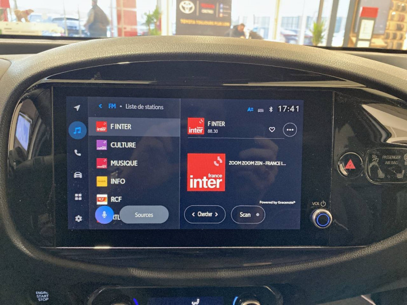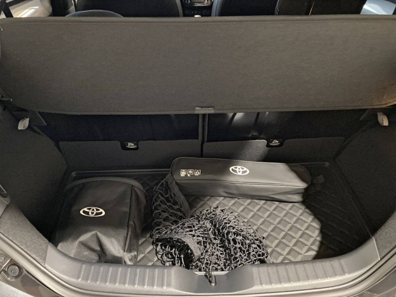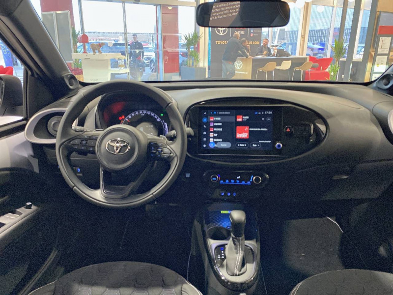 1 Port USB de type C sur console centrale / 1 prise 12V AV sur console centrale / 4 HP / Badge chrome AR exclusif JBL et sticker exclusif JBL sur vitres portes AR / Branche centrale du volant Violet Jasmin / Calandre noir laqué / Capote en toile découvrable electriquement / Carrosserie bi-ton Gris Jasmin avec toit et piliers peints en noir / Ciel de toit noir / Combiné d'instrumentation avec écran couleur TFT multifonction 4,2" / Compte-tours / Connectivité smartphone Apple CarPlay et Android Auto sans fil / Contour d'aérateurs couleur carrosserie / Contour de console centrale noir laqué / Contour de l'écran tactile noir laqué / Contour de levier de vitesses Violet Jasmin / Coques de rétroviseurs noires / Eclairage de coffre / Entourage d'antibrouillards noir laqué / Essuie-glace AV à détecteur de pluie / Fermeture centralisée avec commande à distance / Feux AV à extinction différée (Follow me home) / Indicateur de perte de pression des pneus / Insert de pare-chocs AR couleur carrosserie / Insert inférieur de l'écran tactile 10,5" couleur carrosserie avec traitement anodisé Violet Jasmin / Inserts sur contours et bas de caisse AV/AR (selon couleur carrosserie) : Violet Jasmin / Jantes en alliage 18" noir laqué avec inserts Violet Jasmin / Kit anti-crevaison / Kit de sécurité / Levier de vitesse en cuir avec surpiqûres Violet Jasmin / Ornements latéraux noirs (partie supérieure du bas de caisse) / Passages de roues et bas de caisse latéraux noirs / Poignées de portes extérieurs couleur carroserie / Porte-gobelets (2) / Rétroviseurs extérieurs électriques, dégivrants et rabattables manuellement / Sellerie mi-cuir avec renforts latéraux en cuir véritable et assise et dossier en tissu avec surpiqûres Violet Jasmin et estampage JBL sous l'appui-tête / Services connectés de contrôle à distance MyToyota (inclus 4 ans) / Services connectés standards MyToyota (inclus 10 ans) / Sticker exclusif JBL sur vitres portes AR / Système d'appel d'urgence automatique "E-Call" / Système de contrôle de stabilité (VSC) + Système de contrôle de motricité (TRC) / Système de freinage antiblocage ABS / Système d'ouverture/fermeture et démarrage sans clé "Smart Entry & Start" / Système multimédia Toyota Smart Connect avec écran tactile 10,5" haute définition, Bluetooth, USB, Radio FM et DAB (digitale), système de connectivité smartphone Apple CarPlay et Android Auto (sans fil), Services intelligents avec Navigation connectée avec infotrafic en temps réel, mises à jour cartographiques, assistant vocal "Hey Toyota" et recherche de points d'intérêts (inclus 4 ans) / Tapis de sol AV/AR avec surpiqûres Violet Jasmin / Toyota Safety Sense Système de sécurité précollision avec détection des véhicules, des piétons et des cyclistes, actif également dans les intersections, Alerte de franchissement de ligne avec aide au maintien dans la voie et assistant de trajectoire, Régulateur de vitesse adaptatif intelligent, Lecture des panneaux de signalisation, Gestion automatique des feux de route / Transmission automatique S-CVT avec commande de boîte de vitesses séquentielle / Volant cuir avec commandes au volant