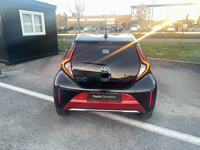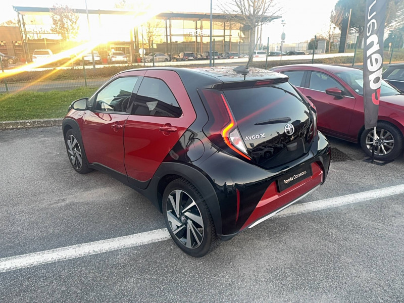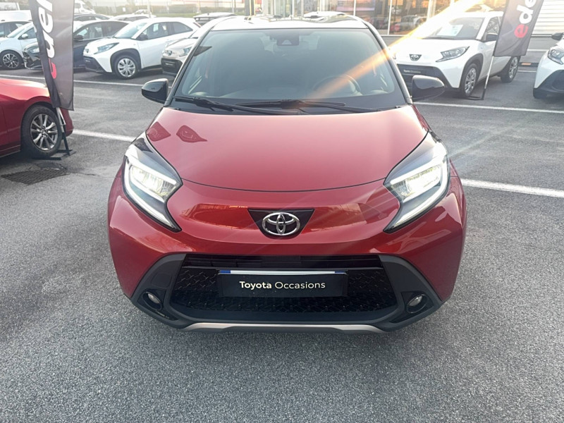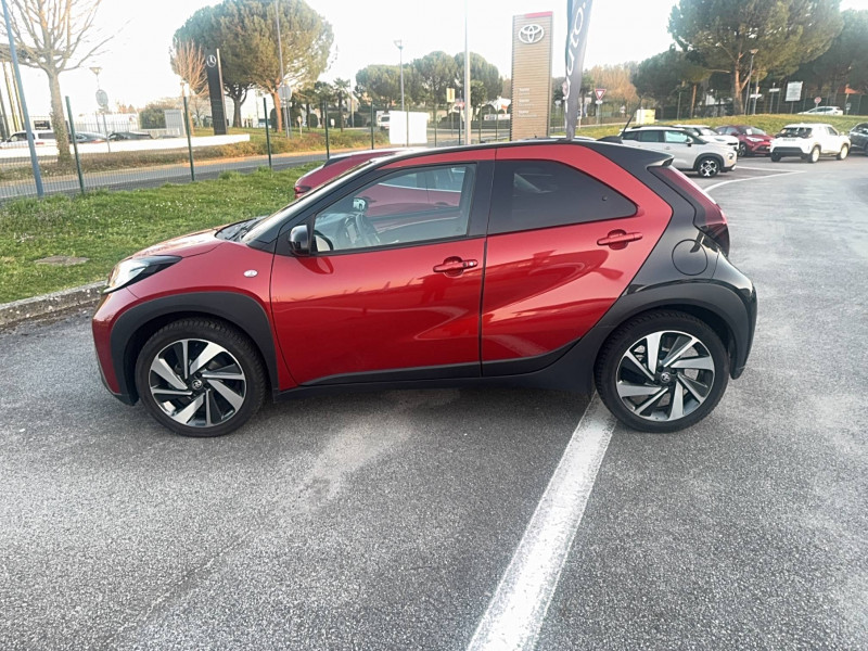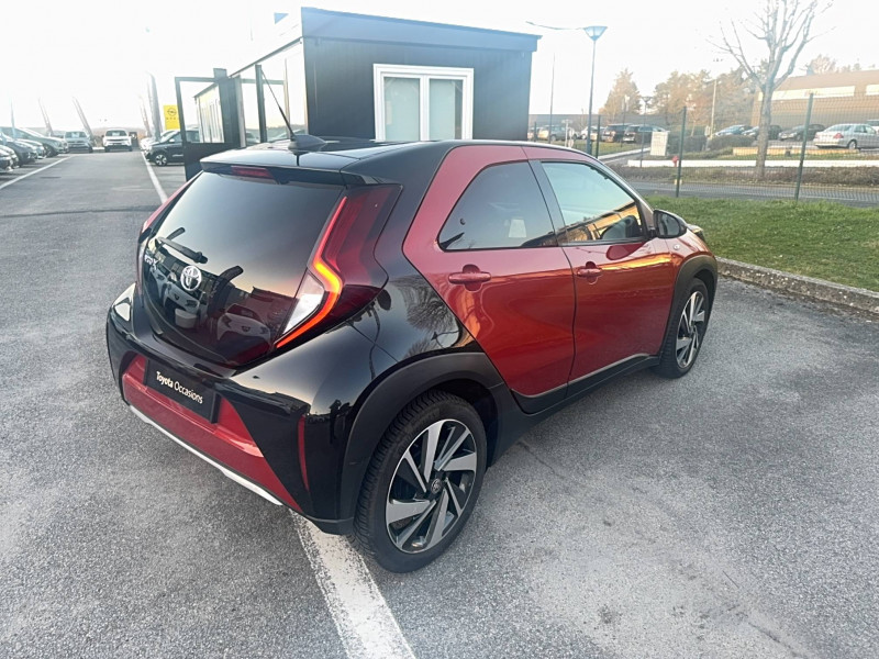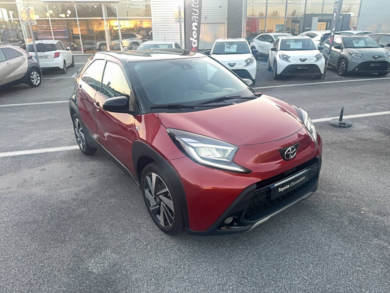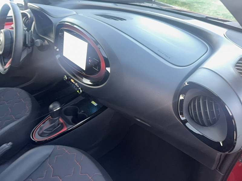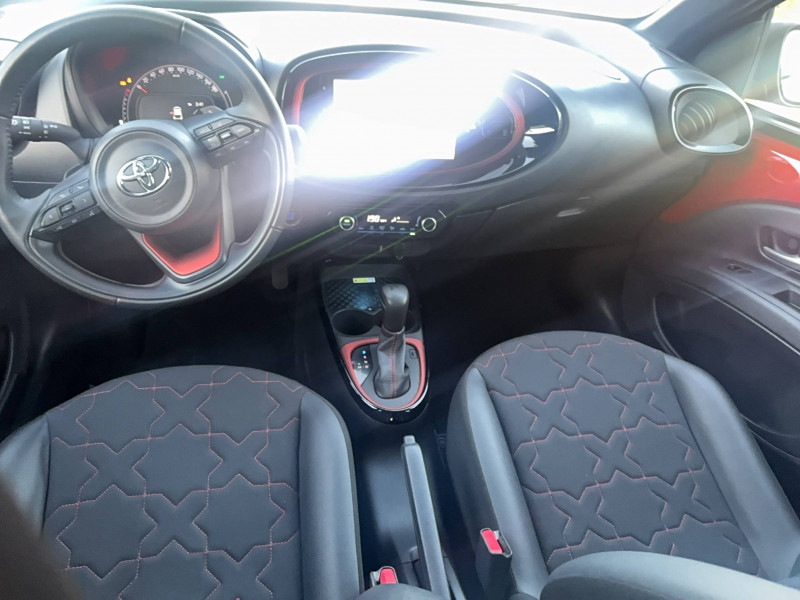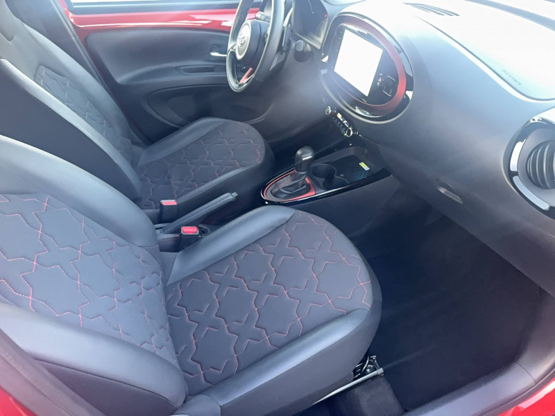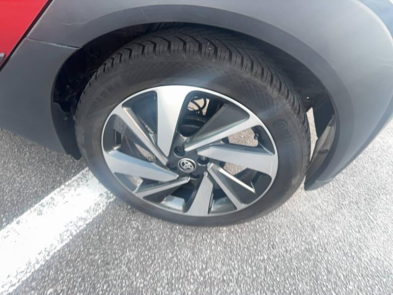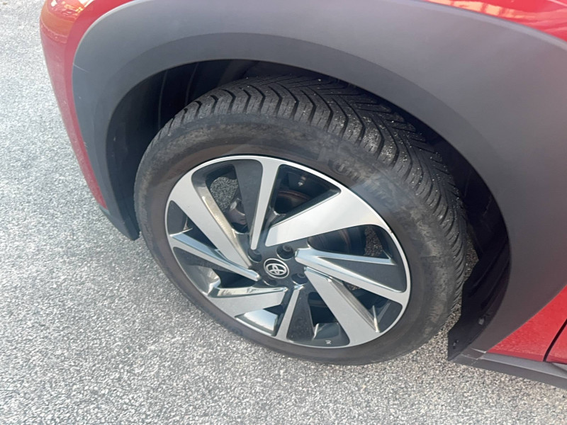 1 Port USB type A AV / 2 HP / Appuis-tête AR intdépendants / Branche centrale du volant couleur carrosserie avec traitement andoisé / Calandre noir laqué / Carrosserie bi-ton avec toit et piliers peints en noir / Ciel de toit noir / Combiné d'instrumentation avec écran couleur TFT multifonction 4" / Compte-tours / Connectivité smartphone Apple CarPlay et Android Auto sans fil / Contour de console central noir laqué avec insert anodisé couleur carrosserie / Contour de l'écran tactile 9" noir anodisé couleur carrosserie / Contours d'aérateurs noir laqué / Coques de rétroviseurs noires / Eclairage de coffre / Entourage d'antibrouillards noir laqué / Essuie-glaces AV avec détecteur de pluie / Fermeture centralisée avec commande à distance / Feux AV à extinction différée (Follow me home) / Indicateur de perte de pression des pneus / Insert de pare-chocs AR couleur carrosserie / Kit anti-crevaison / Kit de sécurité / Levier de vitesse en cuir avec surpiqûres couleur carrosserie / Ornements latéraux noirs / Passages de roues et bas de caisse latéraux noirs / Poignées de portes couleur carrosserie / Porte-gobelet / Protections de soubassement AV/AR argentées / Sellerie mi-cuir synthétique avec renforts leteraux, assise et dossier en tissu avec surpiqures couleur carrosserie / Système d'appel d'urgence automatique "E-Call" / Système de contrôle de stabilité (VSC) + Système de contrôle de motricité (TRC) / Système de freinage antiblocage ABS / Système d'ouverture/fermeture des portes et démarrage sans clé "Smart Entry & Start" / Tapis de sol AV/AR / Toyota Safety Sense : Système de sécurité précollision avec détection des véhicules, piétons et cyclistes, actif également dans les intersections, Alerte de franchissement de ligne avec aide au maintien dans la file, assistant de trajectoire et détecteur de fatigue, Régulateur de vitesse adaptatif intelligent allant jusqu'à l'arrêt, Lecture des panneaux de signalisation avec limiteur de vitesse et Gestion automatique des feux de route / Toyota Smart Connect