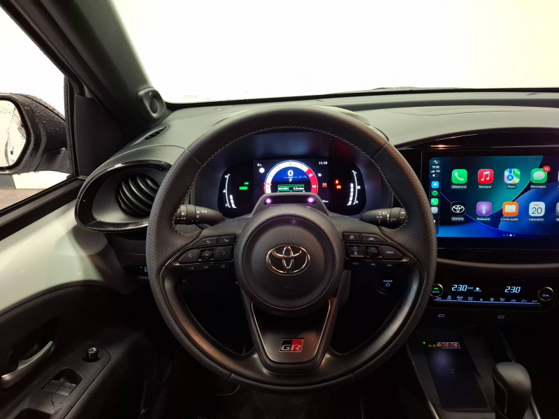4 HP / Aide à la descente / Aide proactive d´évitement d´obstacles (PDA) / Alerte d´attention du conducteur / Antenne DAB / Assistant de trajectoire (avec assistance de maintien dans la voie) / Bouton de démarrage / Calandre AV inédit avec motif en G / Calandre supérieure noire laquée / Clé digitale / Combiné d'instrumentation digital 7'' / Commande de téléphone Bluetooth au volant / Commande limiteur de vitesses au volant / Commande reconnaissance vocale au volant / Connectivité Smartphone / Essuie-glace AV à détecteur de pluie / Follow me home (feux AV à extinction différée) / Gestion automatique des feux de route (AHB) / Indicateur de perte de pression des pneus / Jantes alliage 18" spécifiques GR Sport / Kit anti-crevaison / Moulures noires de protection sur les portieres / Passage de roues noirs / Poignées de portes couleur carrosserie / Port USB-C avec prise 12V AV / Purificateur d'air ionique nanoe X / Radars de stationnement AV et AR avec freinage auto / Sécurité enfants / Sellerie Premium Dinamica et SakuraTouch avec surpiqûres grises et logo GR embossé / Suppression de l'accélération à vitesse réduite / Suspension AV type Mac Pherson / Système d'appel d'urgence automatique "E-Call" / Système d'arrêt et d'urgence autonome (EDSS) / Système de démarrage et d'ouverture des portes sans clé "Smart Entry & Start" / Système de freinage antiblocage ABS / Système de sécurité précollision avec correcteur de trajectoire / Système de sécurté précollision (PCS) / Système multimédia Toyota Smart Connect / Système pré-collision (caméra) / Tapis de sol / Toit noir / USB Type-C