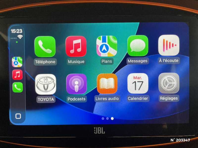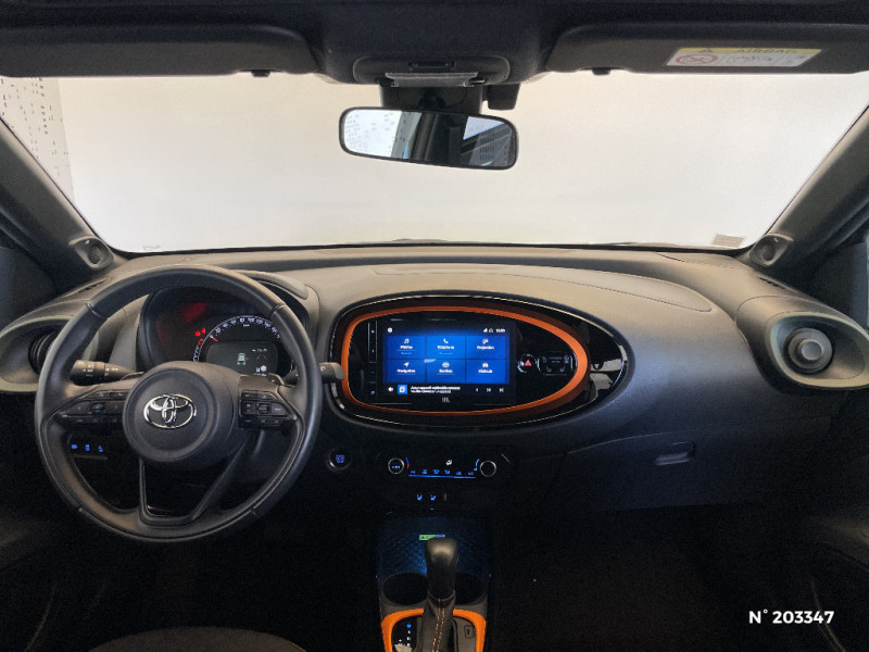 Combiné d'instrumentation avec écran couleur TFT multifonction 4" / Compte-tours / Connectivité smartphone Apple CarPlay et Android Auto sans fil / Contour d'aérateurs Vert Cardamome avec traitement anodisé / Contour de console central noir laqué avec insert anodise Orange Tangerine / Contour de l'ecran tactile 9" Orange Tangerine avec traitement anodisé / Coques de rétroviseurs noires / Eclairage de coffre / Entourage d'antibrouillards noir laqué / Essuie-glaces AV avec détecteur de pluie / Fermeture centralisée avec commande à distance / Feux AV à extinction différée (Follow me home) / Indicateur de perte de pression des pneus / Inserts Orange Tangerine mat latéraux et sur bas de caisse AV et AR / Jantes alliage 18" noir mat et inserts Orange Tangerine / Kit anti-crevaison / Kit de sécurité / Levier de vitesse en cuir avec surpiqures Orange Tangerine / Ornements latéraux noirs / Passages de roues et bas de caisse latéraux noirs / Poignées de portes couleur carrosserie / Porte-gobelet / Protections de soubassement AV/AR argentées / Sellerie mi-cuir avec renfort latéraux en cuir veritable et assise et dossier en tissu avec surpiqures Orange Tangerine / Système audio JBL 4 HP et 1 caisson de basse / Système d'appel d'urgence automatique "E-Call" / Système de contrôle de stabilité (VSC) + Système de contrôle de motricité (TRC) / Système de freinage antiblocage ABS / Système d'ouverture/fermeture des portes et démarrage sans clé "Smart Entry & Start" / Système multimédia Toyota Smart Connect avec écran tactile 9" : Navigation connectée avec accès en temps réel aux informations routières et aux données utiles de navigation, "Smart Fuel" (aide à la recherche de stations-service), "Smart Parking" (aide à la recherche de stationnement), 4 ans de mises à jour cartographiques et services connectés inclus, Mise à jour à distance / Tapis de sol avec bord Orange Tangerine et inscription "Limited" / Toyota Safety Sense : Système de sécurité précollision avec détection des véhicules, piétons et cyclistes, actif également dans les intersections, Alerte de franchissement de ligne avec aide au maintien dans la file, assistant de trajectoire et détecteur de fatigue, Régulateur de vitesse adaptatif intelligent allant jusqu'à l'arrêt, Lecture des panneaux de signalisation avec limiteur de vitesse et Gestion automatique des feux de route / 1 Port USB type A AV / 2 HP / Appuis-tête AR intdépendants / Badge "Limited" / Branche centrale du volant noir laqué / Calandre noir laqué / Capote en toile découvrable electriquement / Carrosserie bi-ton avec toit et piliers peints en noir / Ciel de toit noir / Climatisation automatique activable à distance via l'application MyT