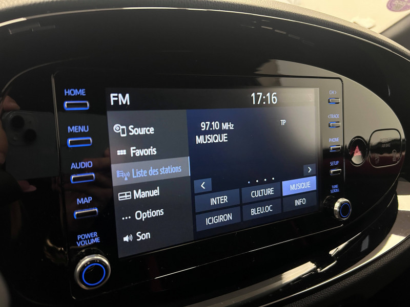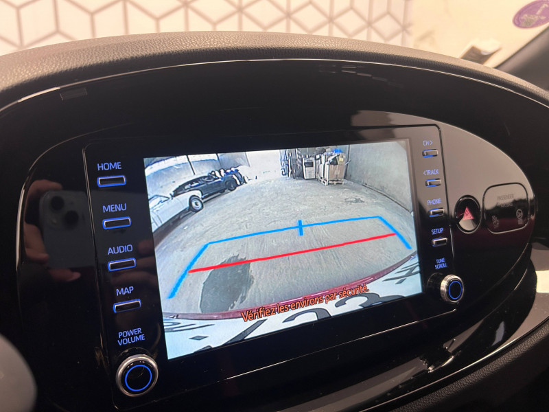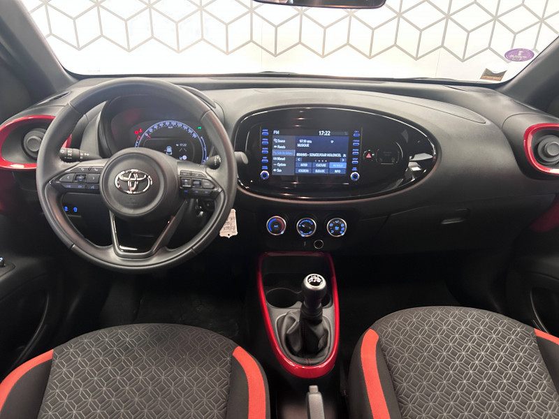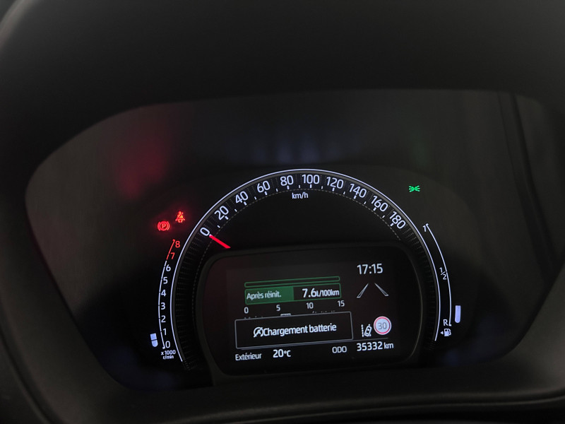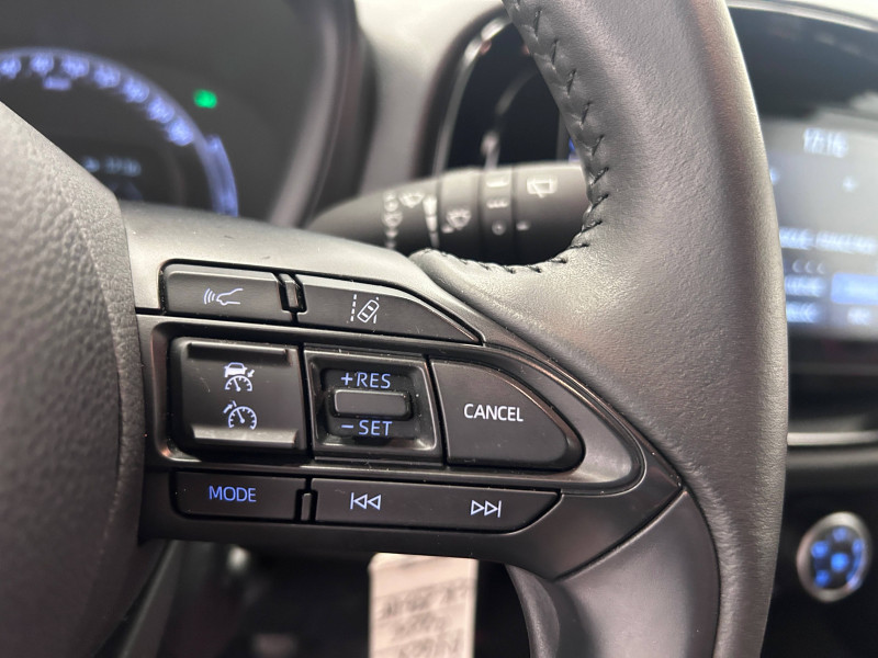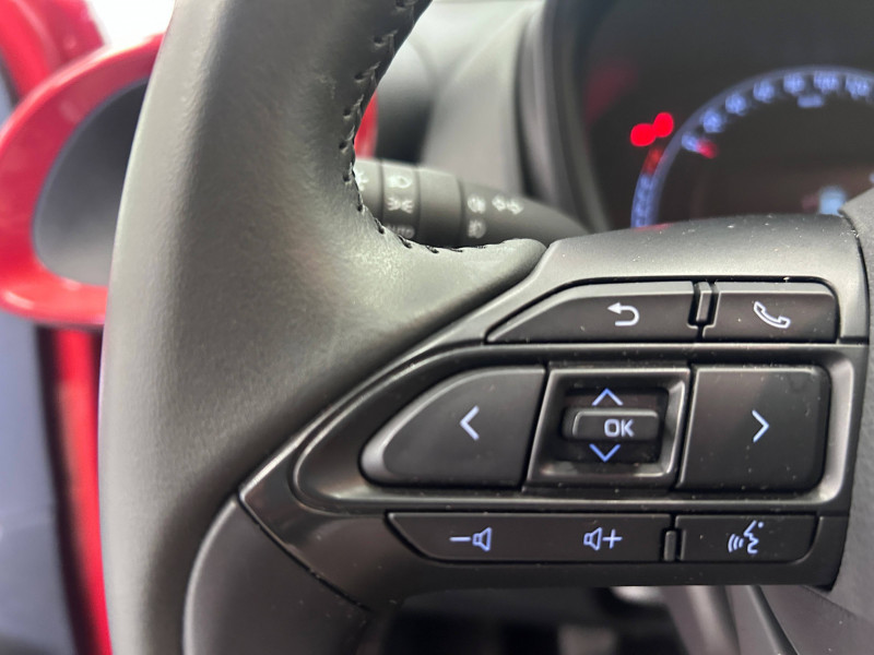 1 Port USB type A AV / 2 HP / Appuis-tête AR intdépendants / Branche centrale du volant noir laqué / Calandre noir laqué / Carrosserie bi-ton avec toit et piliers peints en noir / Ciel de toit noir / Combiné d'instrumentation avec écran couleur TFT multifonction 4" / Compte-tours / Connectivité smartphone Apple CarPlay et Android Auto / Contour de console centrale couleur carrosserie / Contour de l'ecran tactile 8" noir laqué / Contours d'aérateurs couleur carrosserie / Coques de rétroviseurs noires / Eclairage de coffre / Fermeture centralisée avec commande à distance / Indicateur de perte de pression des pneus / Insert de pare-chocs AR couleur carrosserie / Jantes alliage 17" avec centre de roues avec logo Toyota noir / Kit anti-crevaison / Kit de sécurité / Levier de vitesse en cuir avec surpiqûres couleur carrosserie / Ornements latéraux noirs / Passages de roues et bas de caisse latéraux noirs / Poignées de portes couleur carrosserie / Porte-gobelet / Projecteurs AV et clignotants et feux halogènes / Sellerie tissu avec contour d'assise et de dossier couleur carrosserie / Système d'appel d'urgence automatique "E-Call" / Système de contrôle de stabilité (VSC) + Système de contrôle de motricité (TRC) / Système de freinage antiblocage ABS / Système multimédia Toyota Touch avec écran tactile couleur 8" / Tapis de sol AV/AR / Toyota Safety Sense : Système de sécurité précollision avec détection des véhicules, piétons et cyclistes, actif également dans les intersections, Alerte de franchissement de ligne avec aide au maintien dans la file, assistant de trajectoire et détecteur de fatigue, Régulateur de vitesse adaptatif intelligent allant jusqu'à l'arrêt, Lecture des panneaux de signalisation avec limiteur de vitesse et Gestion automatique des feux de route