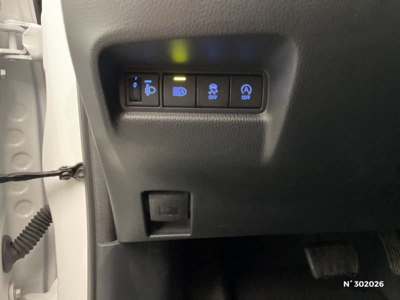 Ciel de toit gris clair / Combiné d'instrumentation avec écran couleur TFT multifonction 4" / Compte-tours / Connectivité smartphone Apple CarPlay et Android Auto / Coques de rétroviseurs noires / Eclairage de coffre / Fermeture centralisée avec commande à distance / Indicateur de perte de pression des pneus / Jantes en acier 17" avec enjoliveurs et centre de roue avec logo Toyota / Kit anti-crevaison / Kit de sécurité / Levier de vitesse en cuir synthetique avec surpiqures et pommeau avec contour chrome / Passages de roues et bas de caisse latéraux noirs / Peinture Blanc Pur / Poignées de portes couleur carrosserie / Porte-gobelet / Projecteurs AV et clignotants et feux halogènes / Système d'appel d'urgence automatique "E-Call" / Système de contrôle de stabilité (VSC) + Système de contrôle de motricité (TRC) / Système de freinage antiblocage ABS / Système multimédia Toyota Touch avec écran couleur tactile 7" multifonction, système de téléphone Bluetooth, 4 HP et radio digitale (DAB) / Tapis de sol AV/AR / Toyota Safety Sense : Système de sécurité précollision avec détection des véhicules, piétons et cyclistes, actif également dans les intersections, Alerte de franchissement de ligne avec aide au maintien dans la file, assistant de trajectoire et détecteur de fatigue, Régulateur de vitesse adaptatif intelligent allant jusqu'à l'arrêt, Lecture des panneaux de signalisation avec limiteur de vitesse et Gestion automatique des feux de route / 1 Port USB type A AV / 2 HP / Appuis-tête AR intdépendants