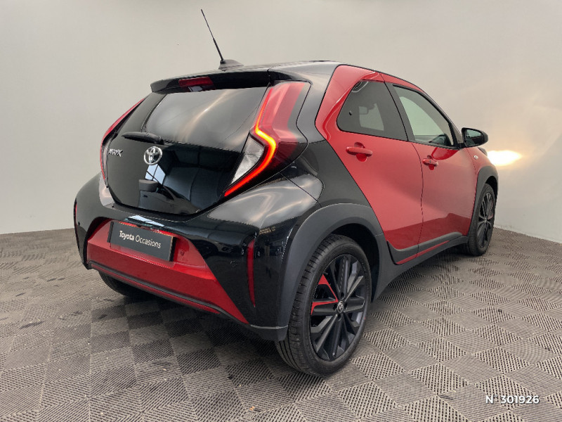 Rétroviseurs dégivrants et réglables électriquement (rabattables manuellement) / Entourage d'antibrouillards noir laqué / Système d'appel d'urgence automatique "E-Call" / Système de freinage antiblocage ABS / Système multimédia Toyota Touch avec écran couleur tactile 8'', radio digitale (DAB), système téléphonique Bluetooth / Systèmes de contrôle de stabilité (VSC) et de motricité (TRC) / Tapis de sol AV/AR / Toyota Safety Sense : Système de sécurité précollision avec détection des véhicules, des piétons et des cyclistes, actif également dans les intersections, Alerte de franchissement de ligne avec aide au maintien dans la voie et assistant de trajectoire, Régulateur de vitesse adaptatif intelligent, Lecture des panneaux de signalisation et Commutation automatique des feux de route / 1 Port USB de type A sur console centrale / 4 HP / Porte-gobelet / Projecteurs AV et clignotants halogènes / Fermeture centralisée avec commande à distance / Indicateur de perte de pression des pneus / Insert de pare-chocs AR couleur carrosserie / Kit anti-crevaison / Kit de sécurité / Levier de vitesse en cuir avec surpiqûres couleur carrosserie / Ornements latéraux noirs (partie supérieure du bas de caisse) / Passages de roues et bas de caisse latéraux noirs / Poignées de portes extérieures couleur carroserie / Pommeau de levier de vitesses avec contour chromé / Branche centrale du volant noir laqué / Calandre noir laqué / Capote en toile découvrable electriquement / Carrosserie bi-ton avec toit et piliers peints en noir / Ciel de toit noir / Combiné d'instrumentation avec écran couleur TFT multifonction 4,2" / Compte-tours / Connectivité smartphone Apple CarPlay et Android Auto avec câble USB / Contour de console centrale couleur carrosserie / Contour de l'écran tactile noir laqué / Contours d'aérateurs couleur carrosserie / Coques de rétroviseurs extérieurs peintes en noir / Eclairage de coffre / Services connectés MyT (Niveau de carburant, trouver mon véhicule, données de conduite, voyants d'avertissements, service et entretien)