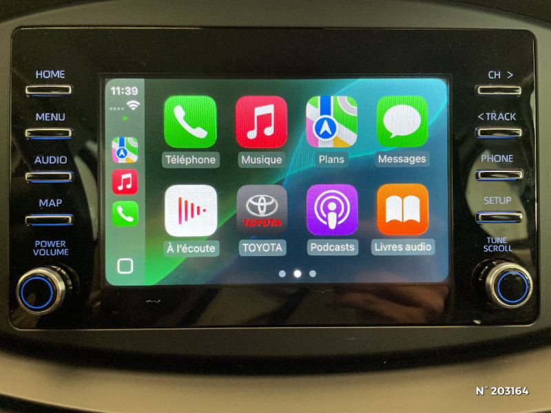Compte-tours / Commande de boîte de vitesses en cuir synthetique / Coques de rétroviseurs noires / Eclairage de coffre / Fermeture centralisée avec commande à distance / Indicateur de perte de pression des pneus / Jantes en acier 17" avec enjoliveurs et centre de roue avec logo Toyota / Kit anti-crevaison / Kit de sécurité / Passages de roues et bas de caisse latéraux noirs / Peinture Blanc Pur / Poignées de portes noires / Porte-gobelet / Projecteurs AV et clignotants et feux halogènes / Système d'appel d'urgence automatique "E-Call" / Système de contrôle de stabilité (VSC) et système de contrôle de motricité (TRC) / Système de freinage antiblocage ABS / Système multimédia Toyota Touch avec écran couleur tactile 7", radio digitale (DAB) et système téléphonique Bluetooth / Tapis de sol AV/AR / Toyota Safety Sense : Système de sécurité précollision avec détection des véhicules, piétons et cyclistes, actif également dans les intersections, Alerte de franchissement de ligne avec aide au maintien dans la file, assistant de trajectoire et détecteur de fatigue, Régulateur de vitesse adaptatif intelligent allant jusqu'à l'arrêt, Lecture des panneaux de signalisation avec limiteur de vitesse et Gestion automatique des feux de route / 1 Port USB type A AV / 2 HP / Appuis-tête AR intdépendants / Ciel de toit gris clair / Combiné d'instrumentation avec écran couleur TFT multifonction 4" / Connectivité smartphone Apple CarPlay et Android Auto