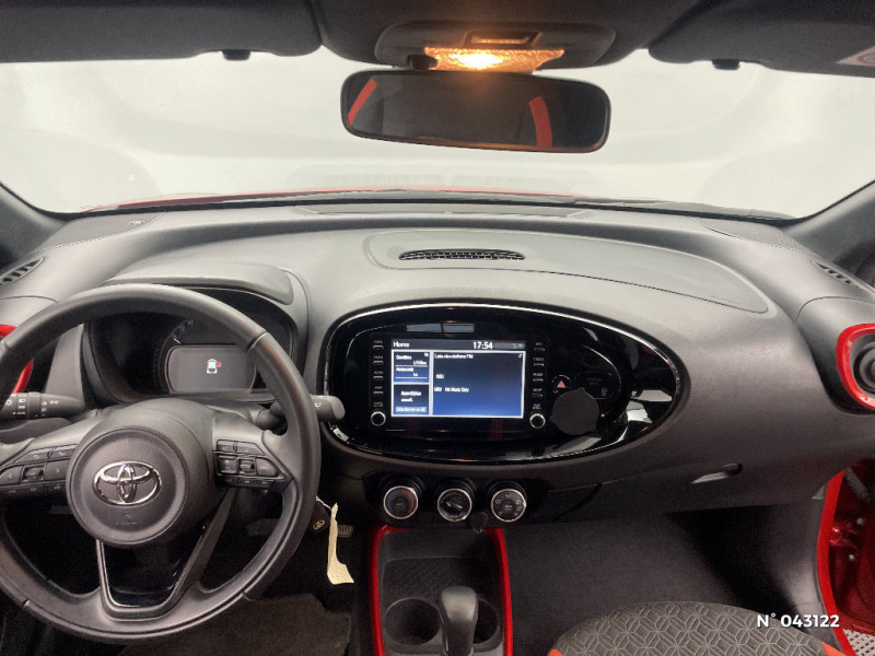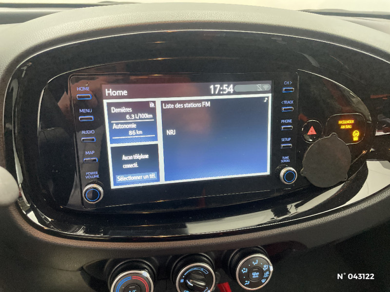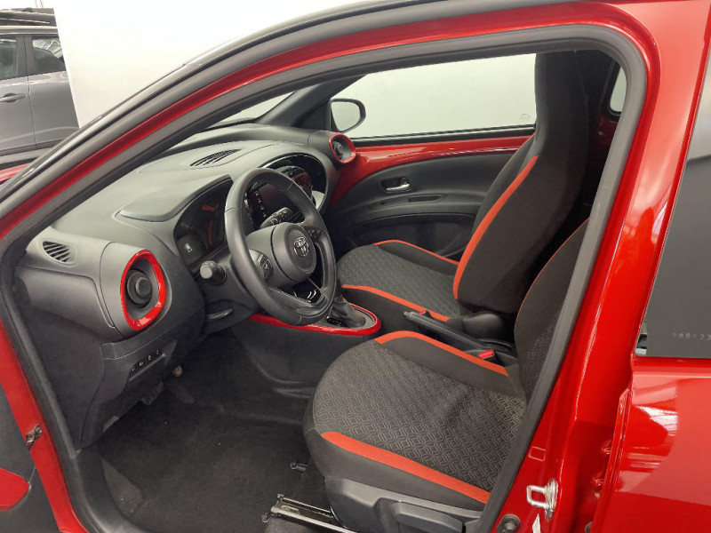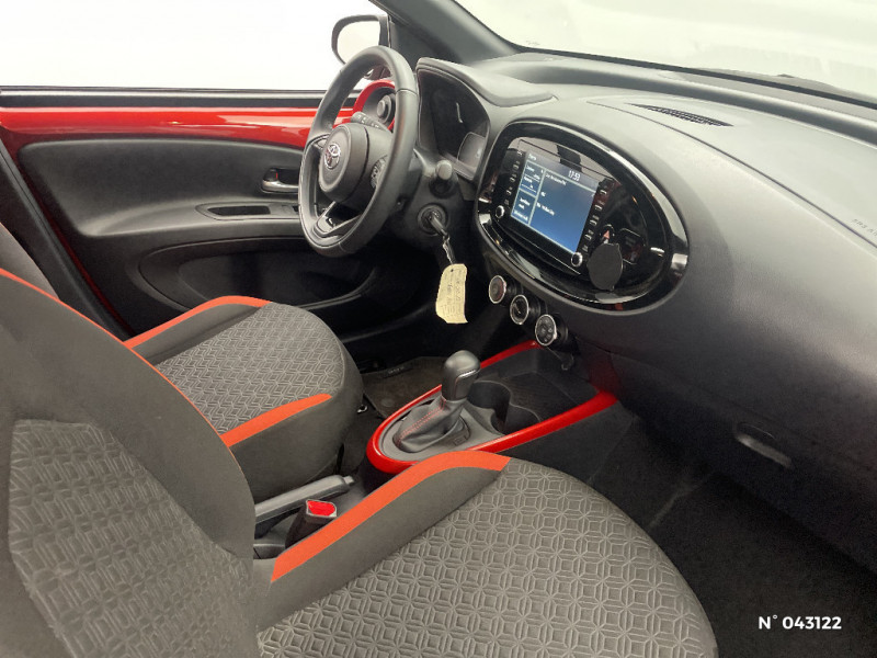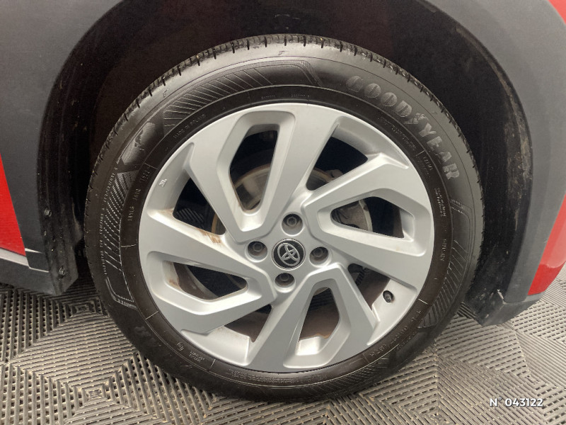 Indicateur de perte pression de pneus / Système de freinage antiblocage ABS / Insert de pare-chocs AR couleur carrosserie / Ciel de toit noir / Tapis de sol AV et AR / Compte-tours / Contours d'aérateurs couleur carrosserie / Kit anti-crevaison / Kit de sécurité / Poignées de portes couleur carrosserie / Combiné d'instrumentation avec écran couleur TFT multifonction 4" / Alerte de franchissement de ligne avec aide au maintien dans la file et assistant de trajectoire / Toyota Safety Sense : Système de sécurité précollision avec détection des véhicules, piétons et cyclistes, actif également dans les intersections, Alerte de franchissement de ligne avec aide au maintien dans la file, assistant de trajectoire et détecteur de fatigue, Régulateur de vitesse adaptatif intelligent allant jusqu'à l'arrêt, Lecture des panneaux de signalisation avec limiteur de vitesse et Gestion automatique des feux de route / Ornements latéraux noirs / Jantes alliage 18" noir mat et inserts Orange Tangerine / 1 Port USB type A AV / Fermeture centralisée avec commande à distance / Système de contrôle de stabilité (VSC) + Système de contrôle de motricité (TRC) / Connectivité smartphone Apple CarPlay et Android Auto / Système multimédia Toyota Touch avec écran tactile couleur 8" / Appuis-tête AR intdépendants / Coques de rétroviseurs noires / 2 HP / Sellerie tissu avec contour d'assise et de dossier couleur carrosserie / Levier de vitesse en cuir avec surpiqures couleur carrosserie / Contour de l'ecran tactile 8" noir laqué / Contour de console centrale couleur carrosserie / Branche centrale du volant noir laqué / Capote en toile découvrable electriquement / Passages de roues et bas de caisse latéraux noirs / Porte-gobelet / Système d'appel d'urgence automatique e-Call / Carrosserie bi-ton avec toit et piliers peints en noir / Calandre noir laqué / Eclairage du coffre / Projecteurs AV et clignotants et feux halogènes