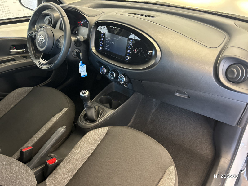 Appuis-tête AR intdépendants / Ciel de toit gris clair / Combiné d'instrumentation avec écran couleur TFT multifonction 4" / Compte-tours / Connectivité smartphone Apple CarPlay et Android Auto / Coques de rétroviseurs noires / Eclairage de coffre / Fermeture centralisée avec commande à distance / Indicateur de perte de pression des pneus / Kit de sécurité / Levier de vitesse en cuir synthetique avec surpiqures et pommeau avec contour chrome / Passages de roues et bas de caisse latéraux noirs / Peinture Blanc Pur / Poignées de portes couleur carrosserie / Porte-gobelet / Projecteurs AV et clignotants et feux halogènes / Système d'appel d'urgence automatique "E-Call" / Système de contrôle de stabilité (VSC) + Système de contrôle de motricité (TRC) / Système de freinage antiblocage ABS / Système multimédia Toyota Touch avec écran couleur tactile 7" multifonction, système de téléphone Bluetooth, 4 HP et radio digitale (DAB) / Tapis de sol AV/AR / Toyota Safety Sense : Système de sécurité précollision avec détection des véhicules, piétons et cyclistes, actif également dans les intersections, Alerte de franchissement de ligne avec aide au maintien dans la file, assistant de trajectoire et détecteur de fatigue, Régulateur de vitesse adaptatif intelligent allant jusqu'à l'arrêt, Lecture des panneaux de signalisation avec limiteur de vitesse et Gestion automatique des feux de route / 1 Port USB type A AV / 2 HP / Jantes en acier 17" avec enjoliveurs et centre de roue avec logo Toyota / Kit anti-crevaison