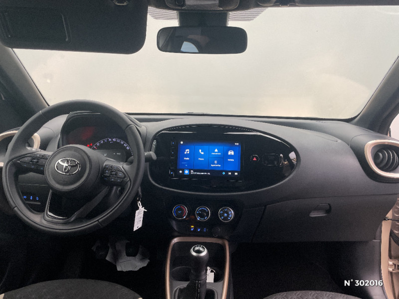Contour de console centrale couleur carrosserie / Contour d'aérateurs couleur carrosserie / Coques de rétroviseurs noires / Eclairage de coffre / Fermeture centralisée avec commande à distance / Indicateur de perte de pression des pneus / Insert de pare-chocs AR couleur carrosserie / Jantes en alliage 17" noir usiné avec centre de roue avec logo Toyota noir / Kit anti-crevaison / Kit de sécurité / Levier de vitesse en cuir avec surpiqûres couleur carrosserie / Ornements latéraux noirs (partie supérieure du bas de caisse) / Passages de roues et bas de caisse latéraux noirs / Poignées de portes extérieurs couleur carroserie / Pommeau de levier de vitesse avec contour chromé / Porte-gobelets (2) / Projecteurs AV et clignotants halogènes / Rétroviseurs extérieurs électriques, dégivrants et rabattables manuellement / Sellerie tissu avec contour d'assise et de dossier couleur carrosserie / Services connectés standards MyToyota (inclus 10 ans) / 1 prise 12V AV sur console centrale / 4 HP / Système d'appel d'urgence automatique "E-Call" / Système de contrôle de stabilité (VSC) + Système de contrôle de motricité (TRC) / Système de freinage antiblocage ABS / Système multimédia Toyota Touch 3 avec écran couleur tactile 9" haute définition, Bluetooth, USB, Radio FM et DAB (digitale), Système de connectivité smartphone Apple CarPlay et Android Auto (sans fil) / Système multimédia Toyota Touch 3 avec écran couleur tactile 9", radio digitale (DAB) et système de téléphonie Bluetooth / Tapis de sol AV/AR / Toyota Safety Sense Système de sécurité précollision avec détection des véhicules, des piétons et des cyclistes, actif également dans les intersections, Alerte de franchissement de ligne avec aide au maintien dans la voie et assistant de trajectoire, Régulateur de vitesse adaptatif intelligent, Lecture des panneaux de signalisation, Gestion automatique des feux de route / Toyota Safety Sense Système de sécurité précollision avec détection des véhicules, piétons et cyclistes, actif également dans les intersections. Alerte de franchissement de ligne avec aide au maintien dans la file, assistant de trajectoire et détecteur de fatigue, Lecture des panneaux de signalisation avec limiteur de vitesse, Gestion automatique des feux de route, Régulateur de vitesse adaptatif intelligent / Volant cuir avec commandes au volant / 1 Port USB de type C sur console centrale / Branche centrale du volant noir laqué / Calandre noir laqué / Carrosserie bi-ton avec toit et piliers peints en noir / Ciel de toit noir / Combiné d'instrumentation avec écran couleur TFT multifonction 4,2" / Compte-tours / Connectivité smartphone Apple CarPlay et Android Auto sans fil / Contour de l'écran tactile noir laqué