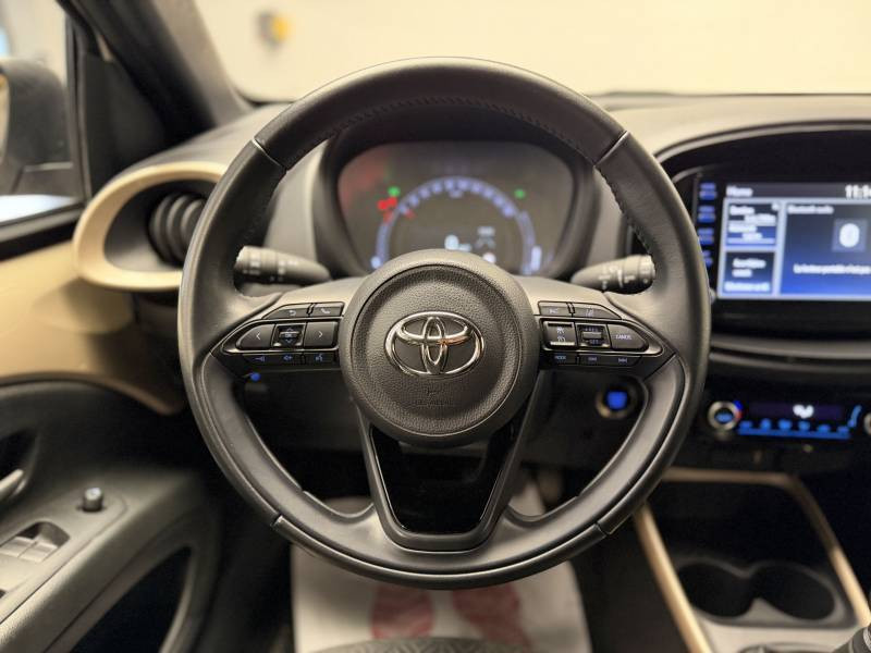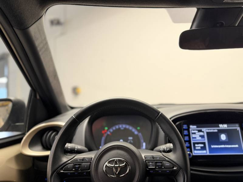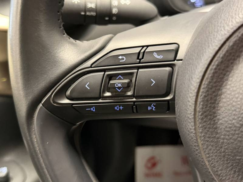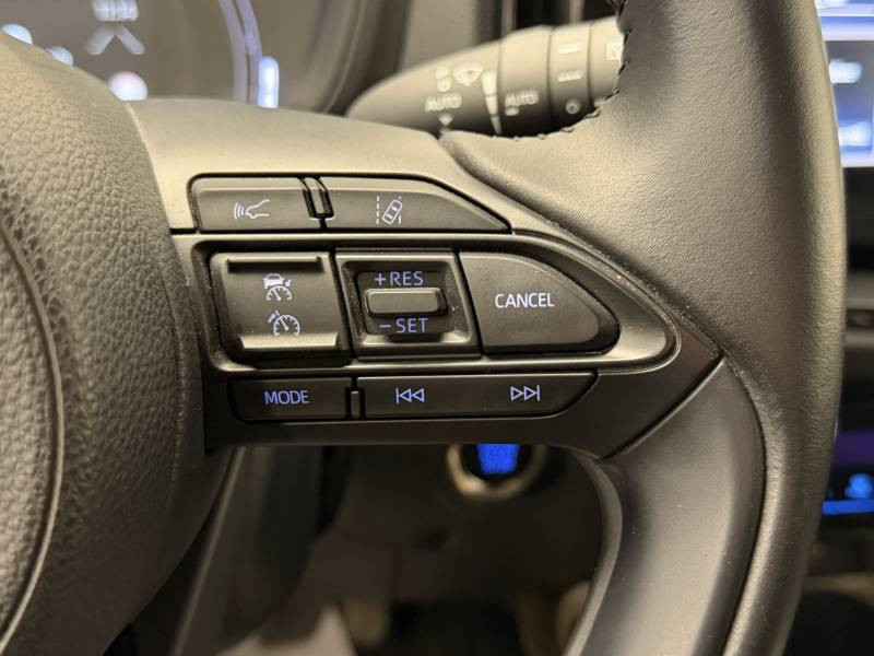 1 Port USB type A AV / 2 HP / Appuis-tête AR intdépendants / Branche centrale du volant noir laqué / Calandre noir laqué / Carrosserie bi-ton avec toit et piliers peints en noir / Ciel de toit noir / Combiné d'instrumentation avec écran couleur TFT multifonction 4" / Compte-tours / Connectivité smartphone Apple CarPlay et Android Auto / Contour de console centrale couleur carrosserie / Contour de l'ecran tactile 8" noir laqué / Contours d'aérateurs couleur carrosserie / Coques de rétroviseurs noires / Eclairage de coffre / Fermeture centralisée avec commande à distance / Indicateur de perte de pression des pneus / Insert de pare-chocs AR couleur carrosserie / Jantes alliage 17" avec centre de roues avec logo Toyota noir / Kit anti-crevaison / Kit de sécurité / Levier de vitesse en cuir avec surpiqûres couleur carrosserie / Ornements latéraux noirs / Passages de roues et bas de caisse latéraux noirs / Poignées de portes couleur carrosserie / Porte-gobelet / Projecteurs AV et clignotants et feux halogènes / Sellerie tissu avec contour d'assise et de dossier couleur carrosserie / Système d'appel d'urgence automatique "E-Call" / Système de contrôle de stabilité (VSC) + Système de contrôle de motricité (TRC) / Système de freinage antiblocage ABS / Système multimédia Toyota Touch avec écran tactile couleur 8" / Tapis de sol AV/AR / Toyota Safety Sense : Système de sécurité précollision avec détection des véhicules, piétons et cyclistes, actif également dans les intersections, Alerte de franchissement de ligne avec aide au maintien dans la file, assistant de trajectoire et détecteur de fatigue, Régulateur de vitesse adaptatif intelligent allant jusqu'à l'arrêt, Lecture des panneaux de signalisation avec limiteur de vitesse et Gestion automatique des feux de route
