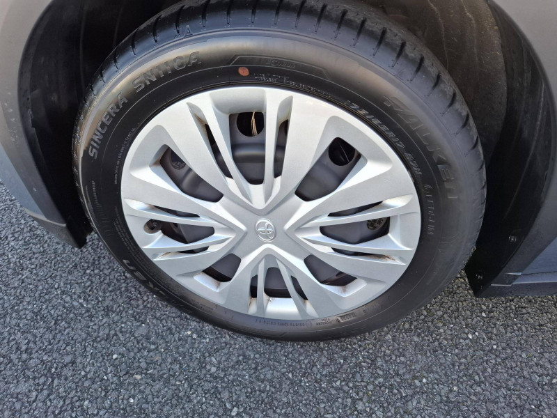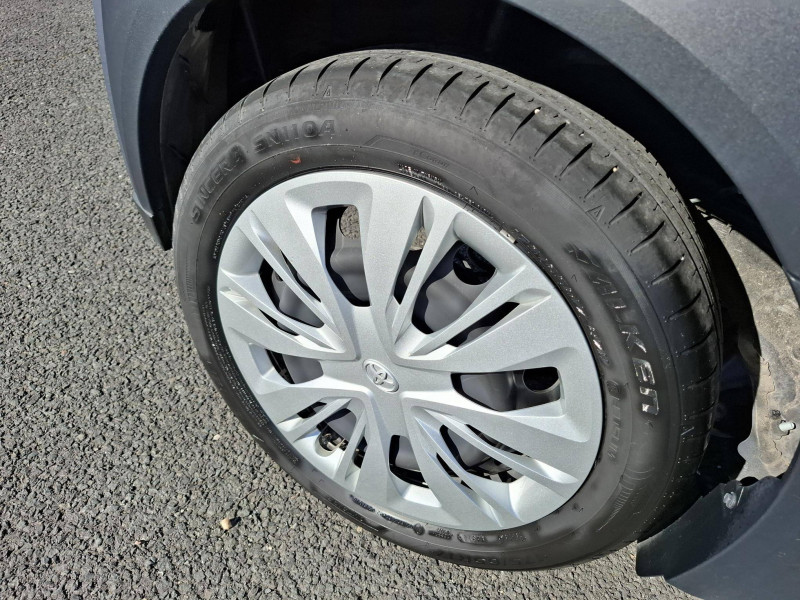 1 Port USB de type C sur console centrale / 1 prise 12V AV sur console centrale / 4 HP / Branche centrale du volant noir laqué / Ciel de toit gris clair / Combiné d'instrumentation avec écran couleur TFT multifonction 4,2" / Compte-tours / Connectivité smartphone Apple CarPlay et Android Auto sans fil / Coques de rétroviseurs noires / Eclairage de coffre / Fermeture centralisée avec commande à distance / Indicateur de perte de pression des pneus / Jantes en acier 17" avec enjoliveurs et centre de roue avec logo Toyota / Kit anti-crevaison / Kit de sécurité / Levier de vitesse en cuir avec surpiqûres / Passages de roues et bas de caisse latéraux noirs / Poignées de portes extérieurs couleur carroserie / Porte-gobelets (2) / Projecteurs AV et clignotants halogènes / Rétroviseurs extérieurs électriques, dégivrants et rabattables manuellement / Services connectés standards MyToyota (inclus 10 ans) / Système d'appel d'urgence automatique "E-Call" / Système de contrôle de stabilité (VSC) + Système de contrôle de motricité (TRC) / Système de freinage antiblocage ABS / Système multimédia Toyota Touch 3 avec écran couleur tactile 9" haute définition, Bluetooth, USB, Radio FM et DAB (digitale), Système de connectivité smartphone Apple CarPlay et Android Auto (sans fil) / Tapis de sol AV/AR / Toyota Safety Sense Système de sécurité précollision avec détection des véhicules, piétons et cyclistes, actif également dans les intersections. Alerte de franchissement de ligne avec aide au maintien dans la file, assistant de trajectoire et détecteur de fatigue, Lecture des panneaux de signalisation avec limiteur de vitesse, Gestion automatique des feux de route, Régulateur de vitesse adaptatif intelligent / Volant cuir avec commandes au volant