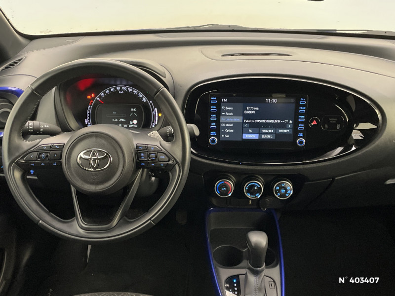 Carrosserie bi-ton avec toit et piliers peints en noir / Ciel de toit noir / Combiné d'instrumentation avec écran couleur TFT multifonction 4" / Compte-tours / Connectivité smartphone Apple CarPlay et Android Auto / Contour de console centrale couleur carrosserie / Contour de l'ecran tactile 8" noir laqué / Contours d'aérateurs couleur carrosserie / Coques de rétroviseurs noires / Eclairage de coffre / Fermeture centralisée avec commande à distance / Indicateur de perte de pression des pneus / Insert de pare-chocs AR couleur carrosserie / Jantes alliage 17" avec centre de roues avec logo Toyota noir / Kit anti-crevaison / Kit de sécurité / Levier de vitesse en cuir avec surpiqûres couleur carrosserie / Ornements latéraux noirs / Passages de roues et bas de caisse latéraux noirs / Poignées de portes couleur carrosserie / Porte-gobelet / Projecteurs AV et clignotants et feux halogènes / Sellerie tissu avec contour d'assise et de dossier couleur carrosserie / Système d'appel d'urgence automatique "E-Call" / Système de contrôle de stabilité (VSC) + Système de contrôle de motricité (TRC) / Système de freinage antiblocage ABS / Système multimédia Toyota Touch avec écran tactile couleur 8" / Tapis de sol AV/AR / Toyota Safety Sense : Système de sécurité précollision avec détection des véhicules, piétons et cyclistes, actif également dans les intersections, Alerte de franchissement de ligne avec aide au maintien dans la file, assistant de trajectoire et détecteur de fatigue, Régulateur de vitesse adaptatif intelligent allant jusqu'à l'arrêt, Lecture des panneaux de signalisation avec limiteur de vitesse et Gestion automatique des feux de route / 1 Port USB type A AV / 2 HP / Appuis-tête AR intdépendants / Branche centrale du volant noir laqué / Calandre noir laqué
