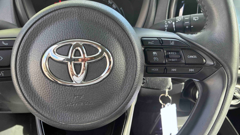 1 Port USB type A AV / 2 HP / Appuis-tête AR intdépendants / Branche centrale du volant noir laqué / Calandre noir laqué / Carrosserie bi-ton avec toit et piliers peints en noir / Ciel de toit noir / Combiné d'instrumentation avec écran couleur TFT multifonction 4" / Compte-tours / Connectivité smartphone Apple CarPlay et Android Auto / Contour de console centrale couleur carrosserie / Contour de l'ecran tactile 8" noir laqué / Contours d'aérateurs couleur carrosserie / Coques de rétroviseurs noires / Eclairage de coffre / Fermeture centralisée avec commande à distance / Indicateur de perte de pression des pneus / Insert de pare-chocs AR couleur carrosserie / Jantes alliage 17" avec centre de roues avec logo Toyota noir / Kit anti-crevaison / Kit de sécurité / Levier de vitesse en cuir avec surpiqûres couleur carrosserie / Ornements latéraux noirs / Passages de roues et bas de caisse latéraux noirs / Poignées de portes couleur carrosserie / Porte-gobelet / Projecteurs AV et clignotants et feux halogènes / Sellerie tissu avec contour d'assise et de dossier couleur carrosserie / Système d'appel d'urgence automatique "E-Call" / Système de contrôle de stabilité (VSC) + Système de contrôle de motricité (TRC) / Système de freinage antiblocage ABS / Système multimédia Toyota Touch avec écran tactile couleur 8" / Tapis de sol AV/AR / Toyota Safety Sense : Système de sécurité précollision avec détection des véhicules, piétons et cyclistes, actif également dans les intersections, Alerte de franchissement de ligne avec aide au maintien dans la file, assistant de trajectoire et détecteur de fatigue, Régulateur de vitesse adaptatif intelligent allant jusqu'à l'arrêt, Lecture des panneaux de signalisation avec limiteur de vitesse et Gestion automatique des feux de route
