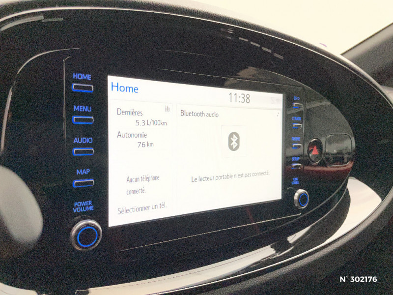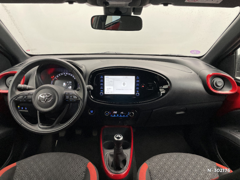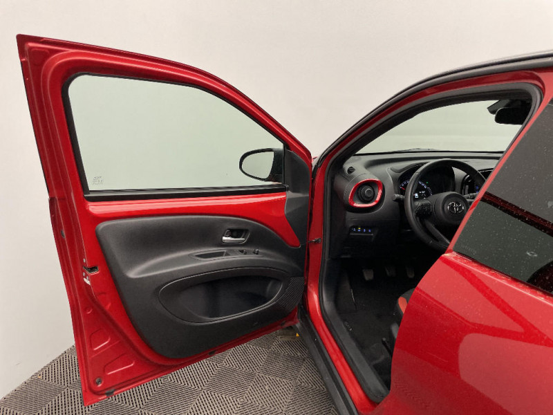Sellerie tissu avec contour d'assise et de dossier couleur carrosserie / Système d'appel d'urgence automatique "E-Call" / Système de contrôle de stabilité (VSC) + Système de contrôle de motricité (TRC) / Système de freinage antiblocage ABS / Système multimédia Toyota Touch avec écran tactile couleur 8" / Tapis de sol AV/AR / Toyota Safety Sense : Système de sécurité précollision avec détection des véhicules, piétons et cyclistes, actif également dans les intersections, Alerte de franchissement de ligne avec aide au maintien dans la file, assistant de trajectoire et détecteur de fatigue, Régulateur de vitesse adaptatif intelligent allant jusqu'à l'arrêt, Lecture des panneaux de signalisation avec limiteur de vitesse et Gestion automatique des feux de route / 1 Port USB type A AV / 2 HP / Appuis-tête AR intdépendants / Branche centrale du volant noir laqué / Calandre noir laqué / Carrosserie bi-ton avec toit et piliers peints en noir / Ciel de toit noir / Combiné d'instrumentation avec écran couleur TFT multifonction 4" / Compte-tours / Connectivité smartphone Apple CarPlay et Android Auto / Contour de console centrale couleur carrosserie / Contour de l'ecran tactile 8" noir laqué / Contours d'aérateurs couleur carrosserie / Coques de rétroviseurs noires / Eclairage de coffre / Fermeture centralisée avec commande à distance / Indicateur de perte de pression des pneus / Insert de pare-chocs AR couleur carrosserie / Jantes alliage 17" avec centre de roues avec logo Toyota noir / Kit anti-crevaison / Kit de sécurité / Levier de vitesse en cuir avec surpiqûres couleur carrosserie / Ornements latéraux noirs / Passages de roues et bas de caisse latéraux noirs / Poignées de portes couleur carrosserie / Porte-gobelet / Projecteurs AV et clignotants et feux halogènes