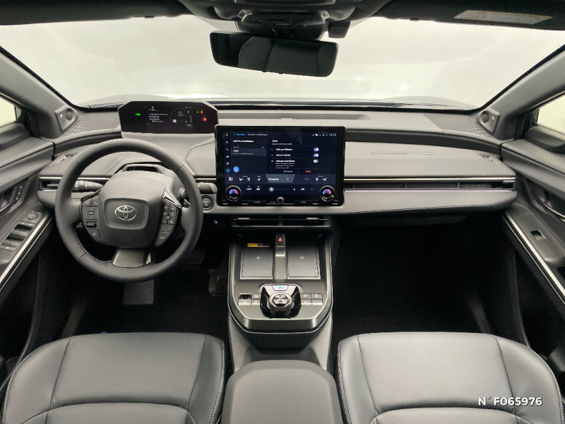 Seuils de portes en aluminium / Siège conducteur à réglage lombaire électrique / Siège conducteur avec mémoire / Siège passager à réglages électriques 8 positions / Signature lumineuse avec bandeau LED / Système audio JBL Premium avec 9HP / Système d'alarme avec fonction double verrouillage / Système de contrôle de trajectoire (VSC) / Système de feux de route adaptatifs (AHS) / Système de préconditionnement de la batterie / Aide à la sortie sécurisée (SEA) / Aide active au changement de voie liée à l'activation des feux clignotants (LCA) / Antenne de toit type requin / Assistant visuel de conduite (DMC) / Avertisseur d'angles morts (BSM) / Becquet AR aérodynamique / Boîte de vitesse avec fonction continu / Buses de lave-glace dégivrantes / Câble de recharge Mode 3 (Type 2) - Borne de recharge (32 A) - 7,5 m / Carrosserie monoton / Chargeur embarqué 22 kW / Chauffage radiant AV / Avertisseur de circulation AV et freinage d'urgence (FCTA) / Clé digitale / Coffre à ouverture et fermeture électriques / Combiné d'instrumentation 7'' / Console centrale plus pratique / Contrôle de traction (TCS) / Double chargeur à induction / Eclairage d'accueil / Eclairage d'ambiance intérieur personnalisable et interactif (64 couleurs) / Essuie-glace AV à détecteur de pluie / Feux AV, AR, clignotants et antibrouillard à LED / Lecture des panneaux de signalisation avec limiteur de vitesse (RSA) / Palettes au volant avec 4 niveaux de régénération / Pare-brise AV dégrivant / Passage de roues noir laqué / Système de préconditionnement de la batterie / Système de sécurité précollision (PCS) / Système de stationnement semi-autonome (Toyota Teammate Advanced Park) / Système d'ouverture/fermeture et démarrage sans clé "Smart Entry & Start" / Système Multimédia Smart Connect Plus de 14" / Système multimédia Toyota Smart Connect Plus - Ecran 14" - Connectivité Bluetooth, USB, radio FM et DAB (digitale) - Système de connectivité smartphone sans fil Apple CarPlay et Android Auto - Services intelligents dont navigation connectée avec infotrafic en temps réel, mises à jour cartographiques, assistant vocal "Hey Toyota" et recherche de bornes de recharge et de points d'intérêt (inclus 4 ans) / Tableau de bord au design épuré / Tapis de sol / Toyota Safety Sense 3 - Alerte de franchissement de ligne (LTA) - Assistant visuel de conduite (DMC) - Lecture des panneaux de signalisation avec limiteur de vitesse (RSA) - Régulateur de vitesse adaptatif intelligent avec détection de fortes courbes et allant jusqu'à l'arrêt (ACC) - Système de feux de route adaptatif (AHS) - Système de sécurité précollision (PCS) / Volant chauffant / 4 prises USB Type-C (2 à l'AV et 2 à l'AR) / Planificateur d'itinéraire électrique intégré au système de navigation / Poignées de portes extérieures couleur carroserie / Pompe à chaleur / Programme "Toyota Experience" / Purificateur d'air Nanoe / Radars de stationnement AV/AR anticollision (ICS) / Rails de toit longitudinaux / Rétroviseur intérieur intelligent / Rétroviseurs extérieurs à mémoire et inclinables en marche AR / Sellerie Premium
