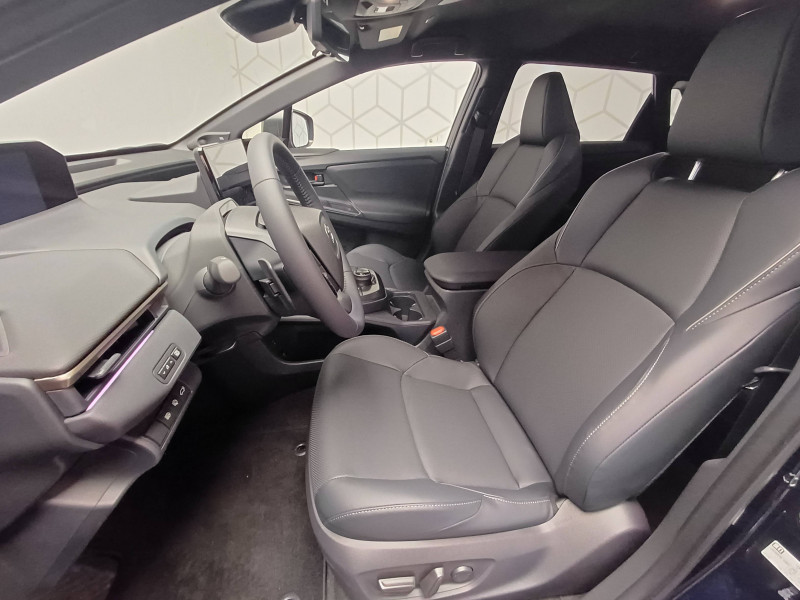 4 prises USB Type-C (2 à l'AV et 2 à l'AR) / Aide active au changement de voie liée à l'activation des feux clignotants (LCA) / Aide à la sortie sécurisée (SEA) / Antenne de toit type requin / Assistant visuel de conduite (DMC) / Avertisseur d'angles morts (BSM) / Avertisseur de circulation AV et freinage d'urgence (FCTA) / Becquet AR aérodynamique / Boîte de vitesse avec fonction continu / Buses de lave-glace dégivrantes / Câble de recharge Mode 3 (Type 2) - Borne de recharge (32 A) - 7,5 m / Carrosserie monoton / Chargeur embarqué 22 kW / Chauffage radiant AV / Clé digitale / Coffre à ouverture et fermeture électriques / Combiné d'instrumentation 7'' / Console centrale plus pratique / Contrôle de traction (TCS) / Double chargeur à induction / Eclairage d'accueil / Eclairage d'ambiance intérieur personnalisable et interactif (64 couleurs) / Essuie-glace AV à détecteur de pluie / Feux AV, AR, clignotants et antibrouillard à LED / Lecture des panneaux de signalisation avec limiteur de vitesse (RSA) / Palettes au volant avec 4 niveaux de régénération / Pare-brise AV dégrivant / Passage de roues noir laqué / Planificateur d'itinéraire électrique intégré au système de navigation / Poignées de portes extérieures couleur carroserie / Pompe à chaleur / Programme "Toyota Experience" / Purificateur d'air Nanoe / Radars de stationnement AV/AR anticollision (ICS) / Rails de toit longitudinaux / Rétroviseur intérieur intelligent / Rétroviseurs extérieurs à mémoire et inclinables en marche AR / Sellerie Premium / Seuils de portes en aluminium / Siège conducteur à réglage lombaire électrique / Siège conducteur avec mémoire / Siège passager à réglages électriques 8 positions / Signature lumineuse avec bandeau LED / Système audio JBL Premium avec 9HP / Système d'alarme avec fonction double verrouillage / Système de contrôle de trajectoire (VSC) / Système de feux de route adaptatifs (AHS) / Système de préconditionnement de la batterie / Système de préconditionnement de la batterie / Système de sécurité précollision (PCS) / Système de stationnement semi-autonome (Toyota Teammate Advanced Park) / Système d'ouverture/fermeture et démarrage sans clé "Smart Entry & Start" / Système Multimédia Smart Connect Plus de 14" / Système multimédia Toyota Smart Connect Plus - Ecran 14" - Connectivité Bluetooth, USB, radio FM et DAB (digitale) - Système de connectivité smartphone sans fil Apple CarPlay et Android Auto - Services intelligents dont navigation connectée avec infotrafic en temps réel, mises à jour cartographiques, assistant vocal "Hey Toyota" et recherche de bornes de recharge et de points d'intérêt (inclus 4 ans) / Tableau de bord au design épuré / Tapis de sol / Toyota Safety Sense 3 - Alerte de franchissement de ligne (LTA) - Assistant visuel de conduite (DMC) - Lecture des panneaux de signalisation avec limiteur de vitesse (RSA) - Régulateur de vitesse adaptatif intelligent avec détection de fortes courbes et allant jusqu'à l'arrêt (ACC) - Système de feux de route adaptatif (AHS) - Système de sécurité précollision (PCS) / Volant chauffant