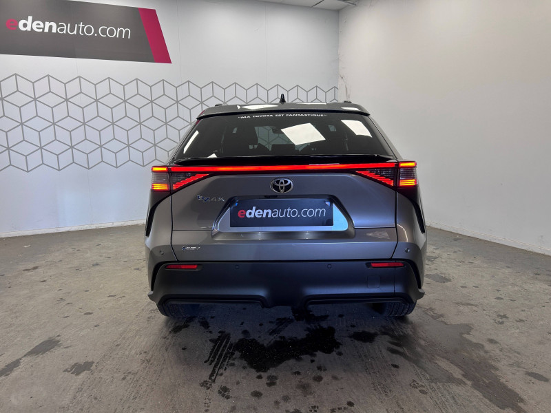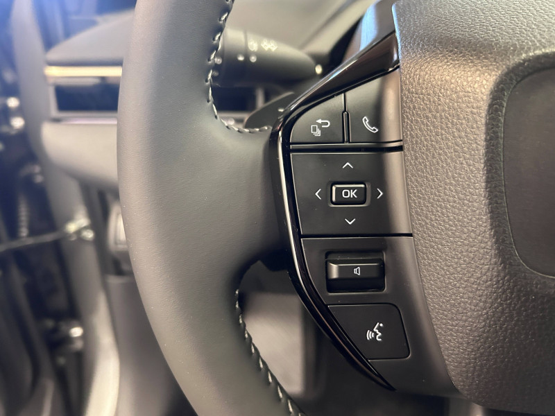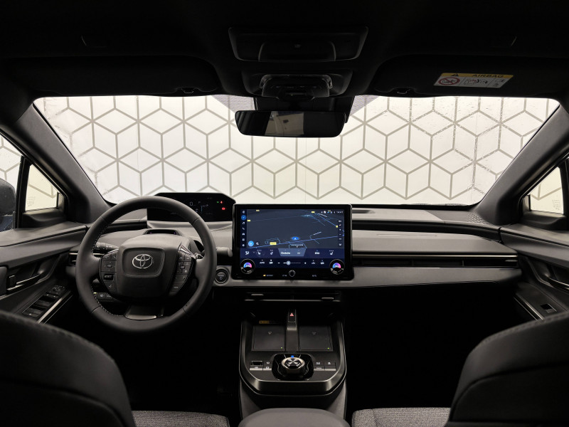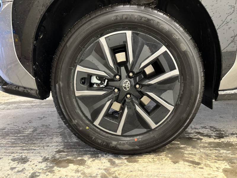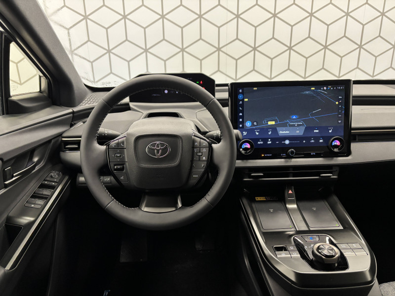 4 prises USB Type-C (2 à l'AV et 2 à l'AR) / 6 HP / Aide à la sortie sécurisée (SEA) / Antenne de toit type requin / Assistant visuel de conduite (DMC) / Avertisseur d'angles morts (BSM) / Boîte de vitesse avec fonction continu / Câble de recharge Mode 3 (Type 2) - Borne de recharge (32 A) - 7,5 m / Carrosserie monoton / Chargeur embarqué 11 kW / Clé digitale / Coffre à ouverture et fermeture électriques / Combiné d'instrumentation 7'' / Console centrale plus pratique / Contrôle de traction (TCS) / Double chargeur à induction / Eclairage d'accueil / Eclairage d'ambiance intérieur personnalisable et interactif (64 couleurs) / Essuie-glace AV à détecteur de pluie / Feux AV, AR, clignotants et antibrouillard à LED / Lecture des panneaux de signalisation avec limiteur de vitesse (RSA) / Palettes au volant avec 4 niveaux de régénération / Passage de roues noir laqué / Planificateur d'itinéraire électrique intégré au système de navigation / Poignées de portes extérieures couleur carroserie / Pompe à chaleur / Programme "Toyota Experience" / Purificateur d'air Nanoe / Radars de stationnement AV/AR anticollision (ICS) / Rails de toit longitudinaux / Sellerie mixte Premium et tissu / Siège conducteur à réglage lombaire électrique / Signature lumineuse avec bandeau LED / Système d'alarme avec fonction double verrouillage / Système de contrôle de trajectoire (VSC) / Système de feux de route adaptatifs (AHS) / Système de préconditionnement de la batterie / Système de préconditionnement de la batterie / Système de sécurité précollision (PCS) / Système d'ouverture/fermeture et démarrage sans clé "Smart Entry & Start" / Système Multimédia Smart Connect Plus de 14" / Système multimédia Toyota Smart Connect Plus - Ecran 14" - Connectivité Bluetooth, USB, radio FM et DAB (digitale) - Système de connectivité smartphone sans fil Apple CarPlay et Android Auto - Services intelligents dont navigation connectée avec infotrafic en temps réel, mises à jour cartographiques, assistant vocal "Hey Toyota" et recherche de bornes de recharge et de points d'intérêt (inclus 4 ans) / Tableau de bord au design épuré / Tapis de sol / Toyota Safety Sense 3 - Alerte de franchissement de ligne (LTA) - Assistant visuel de conduite (DMC) - Lecture des panneaux de signalisation avec limiteur de vitesse (RSA) - Régulateur de vitesse adaptatif intelligent avec détection de fortes courbes et allant jusqu'à l'arrêt (ACC) - Système de feux de route adaptatif (AHS) - Système de sécurité précollision (PCS) / Volant chauffant