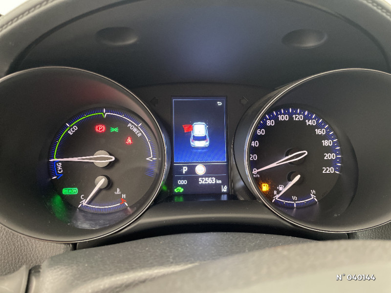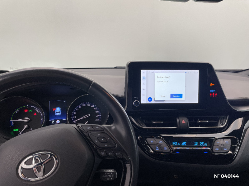Eclairage d'accueil / Accoudoir central avec compartiment de rangement / Projecteurs AV et clignotants et feux halogènes / Calculateur de temps de conduite en électrique / Seuils de portes en aluminium / Becquet AV couleur carrosserie / Ecrous antivol / Ajustement manuel de la hauteur des phares / Kit de sécurité / Système de freinage antiblocage (ABS), BA et EBD / Ciel de pavillon noir / Système de connectivité smartphone Apple CarPlay / Android Auto / Optiques AV et AR à LED / Sellerie en tissu gris sombre avec surpiqures bleues et embossage faà§on diamant / 7 Airbags (frontaux, lateraux, rideaux et un protège-genoux conducteur) / Kit de réparation anti-crevaison / 6 HP / Antenne de toit requin / Toyota Safety Sense / Indicateur de sous gonflage des pneus / Lignes de vitres chromées / Montant central (pilier B) noir laqué / Sièges AV type sport avec maintiens latéraux / Système de contrôle de motricité (TRC) / Système d'appel d'urgence automatique e-Call / Rétroviseurs extérieurs électriques et dégivrants avec rappels de clignotants / Tapis de sol en velours AV/AR / Filet coffre / Système AVAS (Acoustic Vehicle Alerting System) / Système d'accès (conducteur, passager et coffre) et de démarrage sans clé "Smart Entry & Start" / Frein de stationnement électrique / Combiné d'instrumentation avec écran couleur TFT multifonction 4" / Coques de rétroviseur couleur carrosserie / Siège passager ajustable manuellement en hauteur / Alarme avec fonction antidémarrage / Ornements de console centrale et de portières Gris Célestine / Poignées de portes et pare-chocs AV couleur carrosserie / Système multimédia Toyota Touch avec radio DAB, écran couleur tactile 8'', bluetooth, USB / Poches aumonières au dos des sièges AV / Système de contrôle de trajectoire (VSC) / Fermeture centralisée avec commande à distance / Rétroviseur intérieur électrochromatique