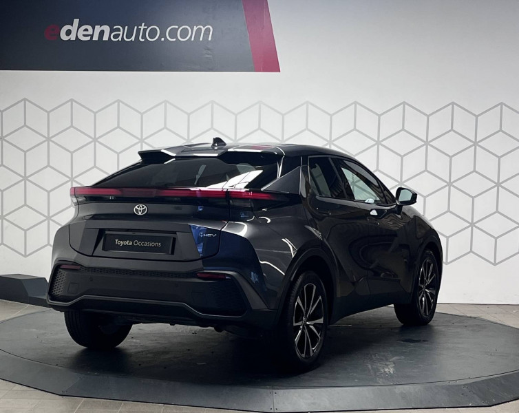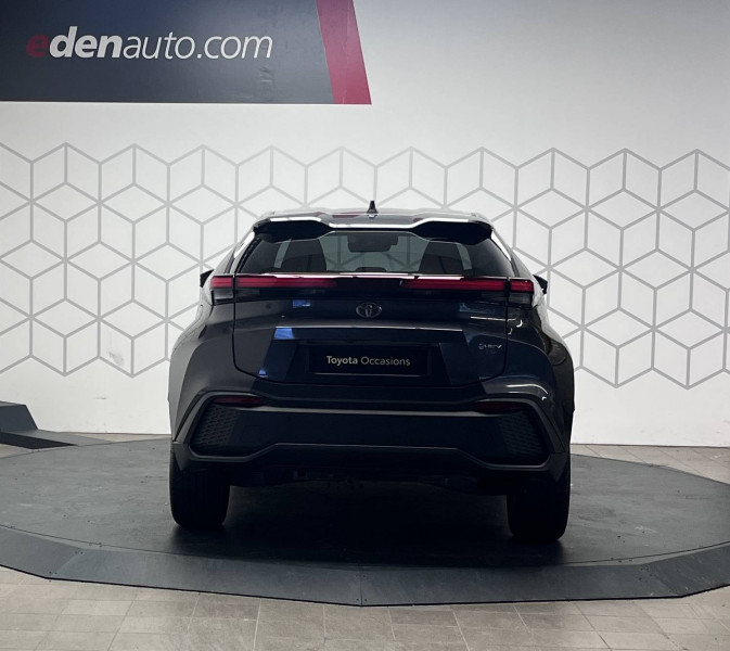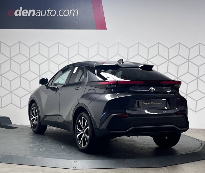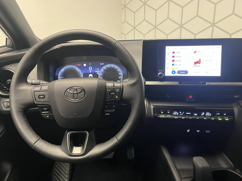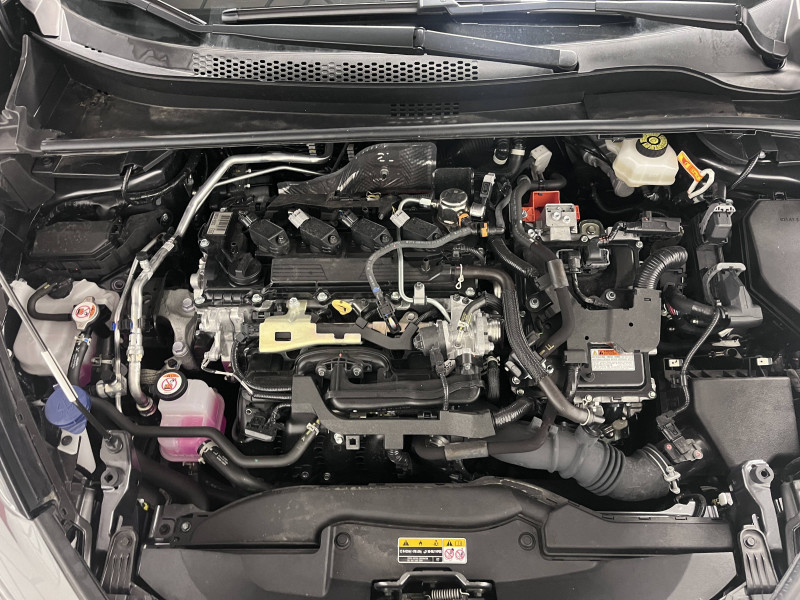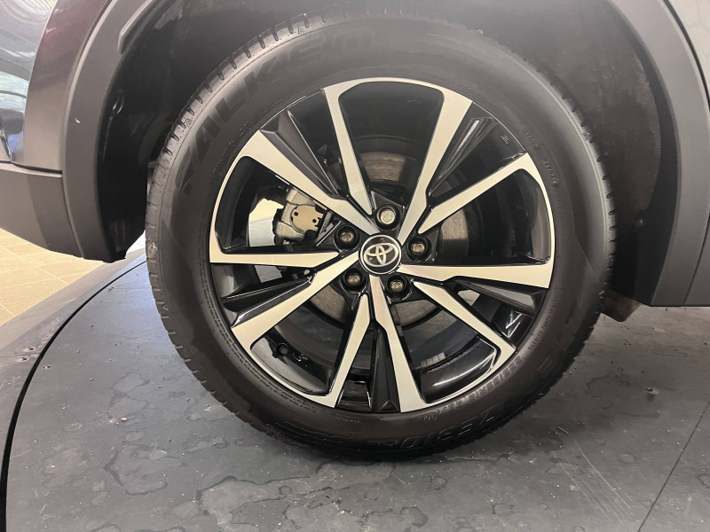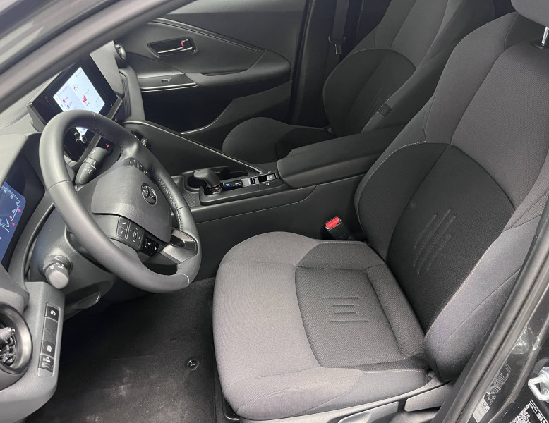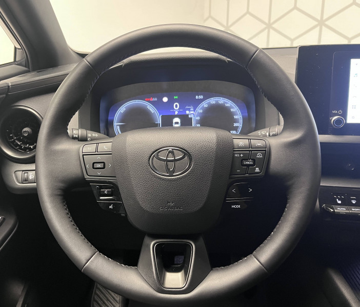 6 HP / Activation automatique des feux de détresse AR (FHL) / Aide à la sortie sécurisée (SEA) Le système vous aide à prévenir les accidents en surveillant les autres usagers de la route qui s'approchent par l'arrière. Lorsqu'il détecte la présence d'un cycliste ou d'un véhicule, un indicateur lumineux s'affiche dans les rétroviseurs extérieurs et sur l'écran multi-informations et une alarme sonore alerte les occupants. / Alarme avec fonction antidémarrage / Avertisseur d'angles morts (BSM) Lorsque les capteurs détectent un véhicule dans votre angle mort latéral, un indicateur lumineux s'éclaire sur le rétroviseur extérieur correspondant. Si vous mettez votre clignotant afin d'indiquer un changement de voie alors qu'un véhicule est dans votre angle mort, un indicateur lumineux apparaît dans le rétroviseur correspondant pour vous avertir du danger. / Avertisseur de circulation AR (RCTA) Cet avertisseur vous permet grâce aux capteurs d'angles morts de repérer un véhicule arrivant de côté quand vous sortez en marche AR d'une place de parking. S'il détecte un risque de collision, le système freine automatiquement et stoppe le véhicule. / Carrosserie monoton / Compteur numérique personnalisable 12,3" / Eclairage d'ambiance intérieur monochrome éclairage non personnalisable et non interactif : cave à pieds / rangement passager / Ecrous antivol / Essuie-glaces AV avec détecteur de pluie / Filet coffre / Jantes en alliage 18" bi-ton noir et aluminium / Kit de réparation anti-crevaison / Kit de sécurité / Optiques AV full-LED / Pare-brise chauffant (sous les essuie-glaces uniquement) / Poignées de portes affleurantes / Radars de stationnement AV et AR (PKSB) Lorsque vous roulez à basse vitesse ou en marche AR, les radars permettent de détecter des objets statiques (obstacles, murs...) ou en mouvement (véhicules traversant à l'AR), le système de freinage de l'aide au stationnement fournit alors une assistance pour réduire l'impact. / Rétroviseur intérieur électrochromatique / Rétroviseurs extérieurs avec éclairage au sol / Sellerie tissu gris foncé avec surpiqûres cuivre / Services connectés de contrôle à distance MyToyota (inclus 4 ans) / Services connectés standards MyToyota (inclus 10 ans) / Seuils de portes en aluminium / Siège conducteur avec support lombaire électrique / Siège passager réglable manuellement en hauteur / Système d'appel d'urgence automatique "E-Call" / Système de rappel pour les sièges AR (RSRS) / Système d'ouverture/fermeture et démarrage sans clé "Smart Entry & Start" / Système multimédia Toyota Smart Connect : Ecran couleur tactile 8" haute définition,Connectivité Bluetooth, USB et radio FM et DAB (digitale) Connectivité smartphone Apple CarPlay et Android Auto (sans fil), Navigation connectée avec infotrafic en temps réel et Smart Parking (aide à la recherche de stationnement), Reconnaissance vocale avancée "Hey Toyota", 4 ans de mises à jour cartographiques et services connectés inclus / Toyota Safety Sense : Système de sécurité précollision avec détection des véhicules, piétons (jour/nuit) et cyclistes, actif également dans les intersections (PCS), Alerte de franchissement de ligne avec aide au maintien dans la file, assistant de trajectoire et détecteur de fatigue (LTA), Régulateur de vitesse adaptatif intelligent allant jusqu'à l'arrêt (ACC), Lecture des panneaux de signalisation avec limiteur de vitesse (RSA) et Gestion automatique des feux de route (AHB), Système d'arrêt d'urgence autonome (EDSS) / Volant chauffant / Volant en cuir synthétique