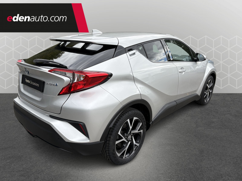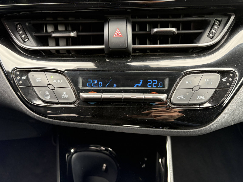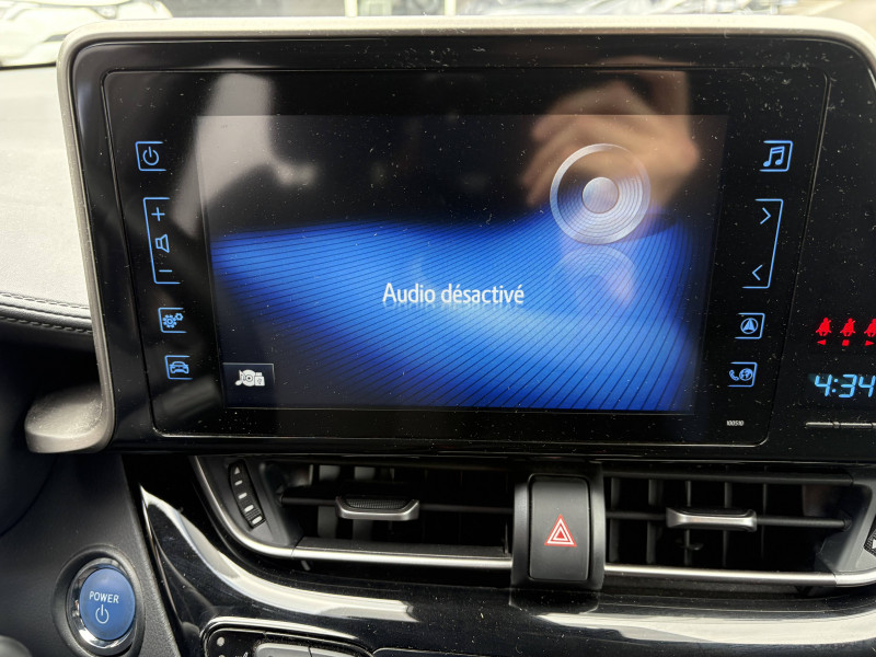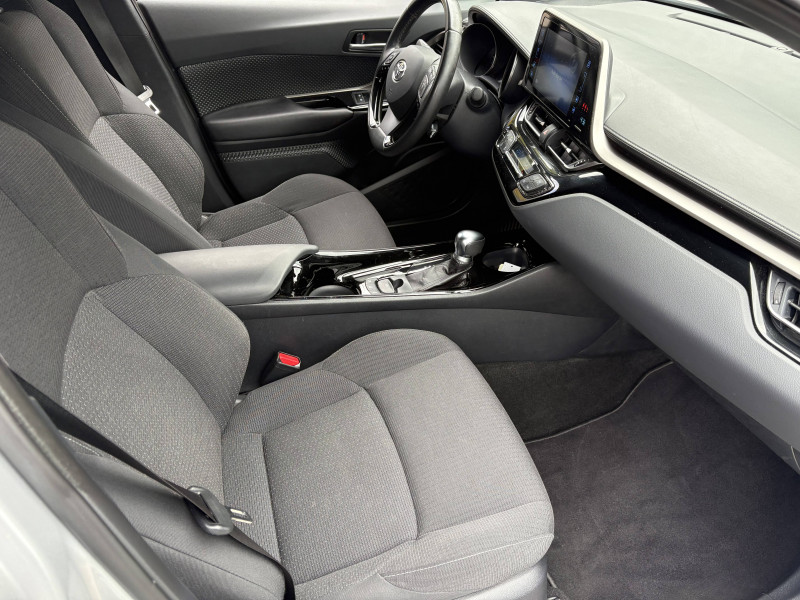 6 HP / 7 Airbags (frontaux et latéraux pour conducteur et passager AV, rideaux AV et AR et protège-genoux conducteur) / Antenne de toit type requin / Console centrale noir laqué / Contre-portes avec inserts noirs laqués / Illumination des contre-portes / Indicateur de perte de pression des pneus / Kit de réparation anti-crevaison / Lignes de vitres chromées / Montant central (pilier B) noir laqué / Ordinateur de bord avec écran TFT couleur 4.2" multifonctions / Phares à extinction différée / Prises auxiliaire et USB / Réglages manuels du siège conducteur / Rétroviseur intérieur anti-éblouissement / Rétroviseurs extérieurs rabattables automatiquement avec projection au sol du logo Toyota C-HR / Sellerie tissu gris foncé / Sièges AV type sport avec maintiens latéraux / Support lombaire du siège conducteur (électrique) / Système de contrôle de stabilité (VSC) + Système de contrôle de motricité (TRC) / Système de freinage antiblocage ABS / Système de téléphonie Bluetooth / Système d'ouverture/fermeture et démarrage sans clé "Smart Entry & Start" (conducteur, passager et coffre) / Système multimédia Toyota Touch 2 (Système audio avec radio) / Toyota Safety Sense Système de sécurité précollision avec détection des piétons, Alerte de franchissement de ligne et détecteur de fatigue, gestion automatique des feux de route, lecture des panneaux de signalisation, régulateur de vitesse adaptatif.