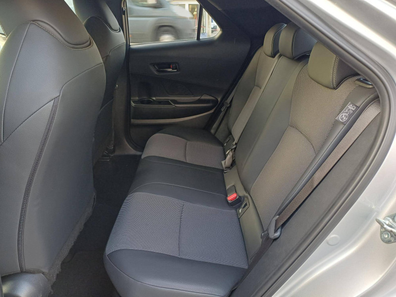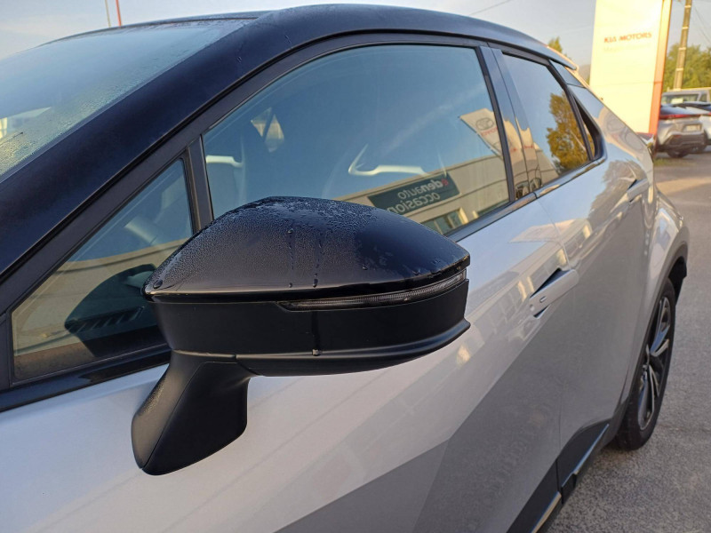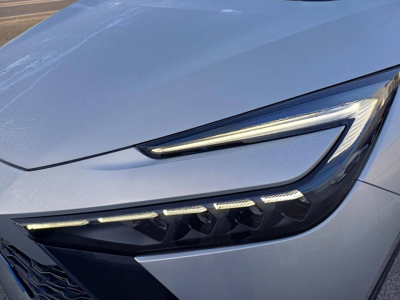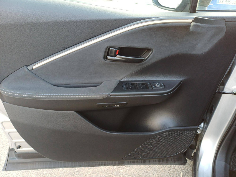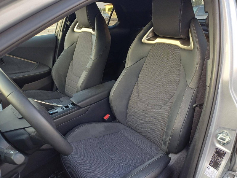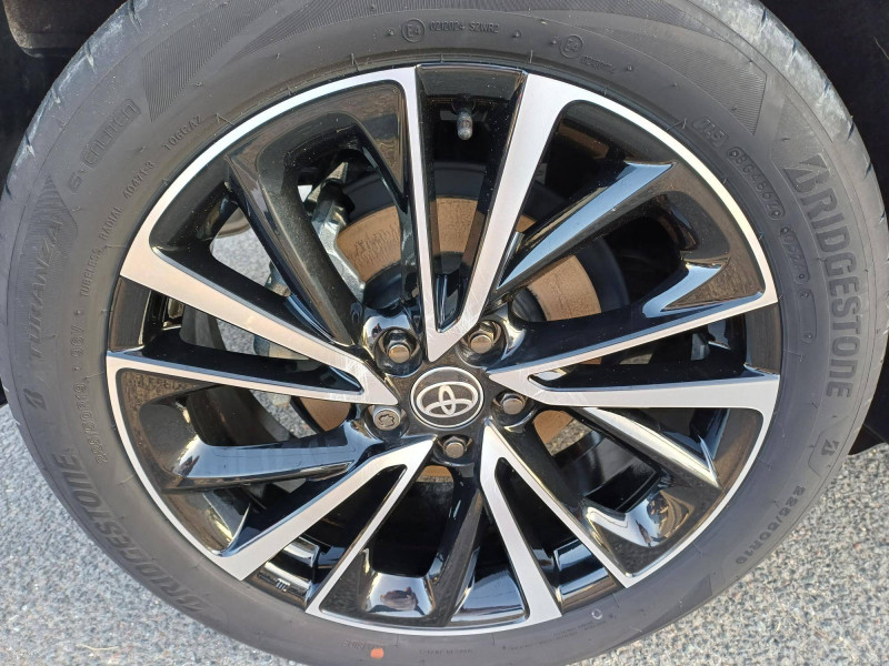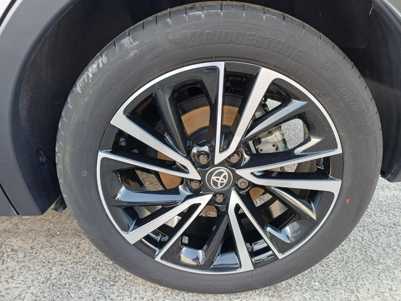 Activation automatique des feux de détresse AR (FHL) / Aide à la sortie sécurisée (SEA) Le système vous aide à prévenir les accidents en surveillant les autres usagers de la route qui s'approchent par l'arrière. Lorsqu'il détecte la présence d'un cycliste ou d'un véhicule, un indicateur lumineux s'affiche dans les rétroviseurs extérieurs et sur l'écran multi-informations et une alarme sonore alerte les occupants. / Alarme avec fonction antidémarrage / Avertisseur d'angles morts (BSM) Lorsque les capteurs détectent un véhicule dans votre angle mort latéral, un indicateur lumineux s'éclaire sur le rétroviseur extérieur correspondant. Si vous mettez votre clignotant afin d'indiquer un changement de voie alors qu'un véhicule est dans votre angle mort, un indicateur lumineux apparaît dans le rétroviseur correspondant pour vous avertir du danger. / Avertisseur de circulation AR (RCTA) Cet avertisseur vous permet grâce aux capteurs d'angles morts de repérer un véhicule arrivant de côté quand vous sortez en marche AR d'une place de parking. S'il détecte un risque de collision, le système freine automatiquement et stoppe le véhicule. / Caméra de recul avec lave-caméra / Carrosserie bi-ton / Compteur numérique personnalisable 12,3" / Eclairage d'ambiance intérieur personnalisable et interactif / Ecrous antivol / Essuie-glaces AV avec détecteur de pluie / Filet coffre / Jantes en alliage 19" bi-ton noir et aluminium / Kit de réparation anti-crevaison / Kit de sécurité / Optiques AV LED avec signature lumineuse Premium / Ornements latéraux noirs laqués / Pare-brise chauffant (sous les essuie-glaces uniquement) / Poches aumonières au dos du siège passager AV / Poignées de portes affleurantes / Purificateur d'air ionique Nanoe / Radars de stationnement AV et AR (PKSB) Lorsque vous roulez à basse vitesse ou en marche AR, les radars permettent de détecter des objets statiques (obstacles, murs...) ou en mouvement (véhicules traversant à l'AR), le système de freinage de l'aide au stationnement fournit alors une assistance pour réduire l'impact. / Rétroviseur intérieur électrochromatique / Rétroviseurs extérieurs avec éclairage au sol / Sellerie en cuir synthétique, alcantara et tissu avec surpiqûres bleues et blanches / Services connectés de contrôle à distance MyToyota (inclus 4 ans) / Services connectés standards MyToyota (inclus 10 ans) / Seuils de portes en aluminium / Siège conducteur à réglages électriques avec mémorisation / Siège conducteur avec support lombaire électrique / Siège passager réglable manuellement en hauteur / Sièges AV contours enveloppants / Système audio premium JBL 9 HP / Système d'appel d'urgence automatique "E-Call" / Système de rappel pour les sièges AR (RSRS) / Système d'ouverture/fermeture et démarrage sans clé "Smart Entry & Start" / Système multimédia Toyota Smart Connect Plus : Ecran couleur tactile 12,3" haute définition, Connectivité Bluetooth, USB et radio FM et DAB (digitale) , Système de connectivité smartphone Apple CarPlay et Android Auto (sans fil), Navigation satellitaire embarquée, Services intelligents dont navigation connectée avec infotrafic en temps réel, mises à jour cartographiques, Assistant vocal "Hey Toyota", recherche de points d'intérêts, zones de danger (fixes) / Toyota Safety Sense : Système de sécurité précollision avec détection des véhicules, piétons (jour/nuit) et cyclistes, actif également dans les intersections (PCS), Alerte de franchissement de ligne avec aide au maintien dans la file, assistant de trajectoire et détecteur de fatigue (LTA), Régulateur de vitesse adaptatif intelligent allant jusqu'à l'arrêt (ACC), Lecture des panneaux de signalisation avec limiteur de vitesse (RSA) et Gestion automatique des feux de route (AHB), Système d'arrêt d'urgence autonome (EDSS) / Vitrage feuilleté insonorisé / Volant chauffant / Volant en cuir synthétique