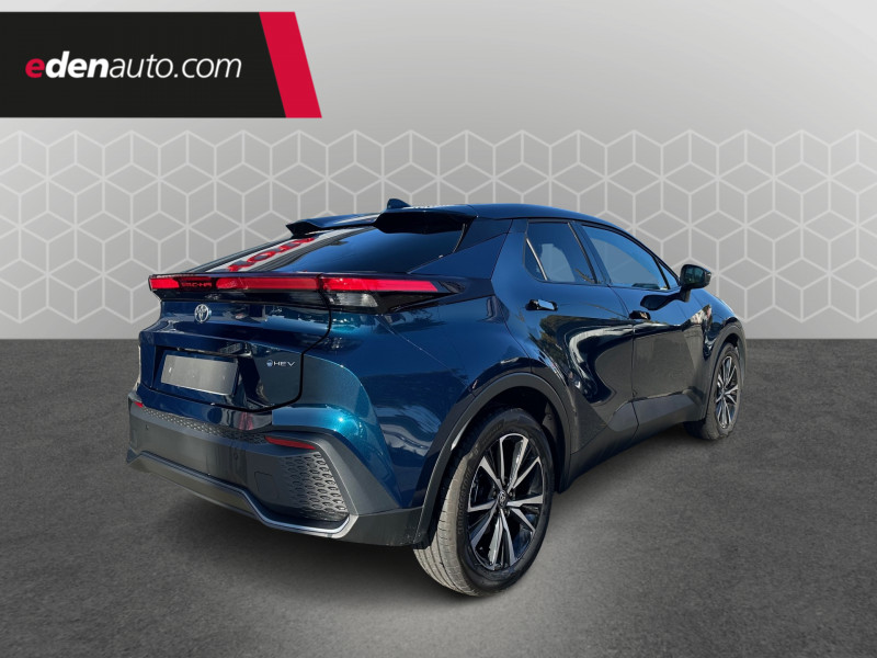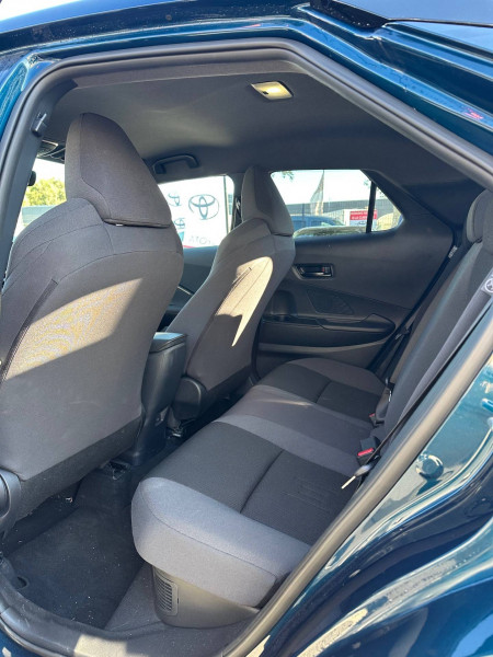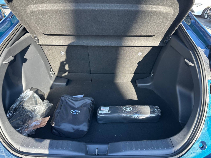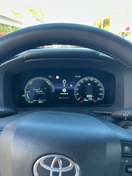6 HP / Activation automatique des feux de détresse AR (FHL) / Aide à la sortie sécurisée (SEA) Le système vous aide à prévenir les accidents en surveillant les autres usagers de la route qui s'approchent par l'arrière. Lorsqu'il détecte la présence d'un cycliste ou d'un véhicule, un indicateur lumineux s'affiche dans les rétroviseurs extérieurs et sur l'écran multi-informations et une alarme sonore alerte les occupants. / Alarme avec fonction antidémarrage / Avertisseur d'angles morts (BSM) Lorsque les capteurs détectent un véhicule dans votre angle mort latéral, un indicateur lumineux s'éclaire sur le rétroviseur extérieur correspondant. Si vous mettez votre clignotant afin d'indiquer un changement de voie alors qu'un véhicule est dans votre angle mort, un indicateur lumineux apparaît dans le rétroviseur correspondant pour vous avertir du danger. / Avertisseur de circulation AR (RCTA) Cet avertisseur vous permet grâce aux capteurs d'angles morts de repérer un véhicule arrivant de côté quand vous sortez en marche AR d'une place de parking. S'il détecte un risque de collision, le système freine automatiquement et stoppe le véhicule. / Carrosserie monoton / Compteur numérique personnalisable 12,3" / Eclairage d'ambiance intérieur monochrome éclairage non personnalisable et non interactif : cave à pieds / rangement passager / Ecrous antivol / Essuie-glaces AV avec détecteur de pluie / Filet coffre / Jantes en alliage 18" bi-ton noir et aluminium / Kit de réparation anti-crevaison / Kit de sécurité / Montants B de portes noir laqué / Optiques AV full-LED / Pare-brise chauffant (sous les essuie-glaces uniquement) / Poignées de portes affleurantes / Radars de stationnement AV et AR (PKSB) Lorsque vous roulez à basse vitesse ou en marche AR, les radars permettent de détecter des objets statiques (obstacles, murs...) ou en mouvement (véhicules traversant à l'AR), le système de freinage de l'aide au stationnement fournit alors une assistance pour réduire l'impact. / Rétroviseur intérieur électrochromatique / Rétroviseurs extérieurs avec éclairage au sol / Sellerie tissu gris foncé avec surpiqûres cuivre / Services connectés de contrôle à distance MyToyota (inclus 4 ans) / Services connectés standards MyToyota (inclus 10 ans) / Seuils de portes en aluminium / Siège conducteur avec support lombaire électrique / Siège passager réglable manuellement en hauteur / Système d'appel d'urgence automatique "E-Call" / Système de rappel pour les sièges AR (RSRS) / Système d'ouverture/fermeture et démarrage sans clé "Smart Entry & Start" / Système multimédia Toyota Smart Connect : Écran couleur tactile 8 haute définition, Connectivité Bluetooth, USB et radio, FM et DAB (digitale), Système de connectivité smartphone Apple CarPlay et Android Auto (sans fil), Services intelligents dont navigation connectée avec infotrafic en temps réel, mises à jour cartographiques, assitant vocal Hey Toyota et recherche de points d'intérêts (inclus 4 ans) / Toyota Safety Sense : Système de sécurité précollision avec détection des véhicules, piétons (jour/nuit) et cyclistes, actif également dans les intersections (PCS), Alerte de franchissement de ligne avec aide au maintien dans la file, assistant de trajectoire et détecteur de fatigue (LTA), Régulateur de vitesse adaptatif intelligent allant jusqu'à l'arrêt (ACC), Lecture des panneaux de signalisation avec limiteur de vitesse (RSA) et Gestion automatique des feux de route (AHB), Système d'arrêt d'urgence autonome (EDSS) / Volant chauffant / Volant gainé de matière synthétique