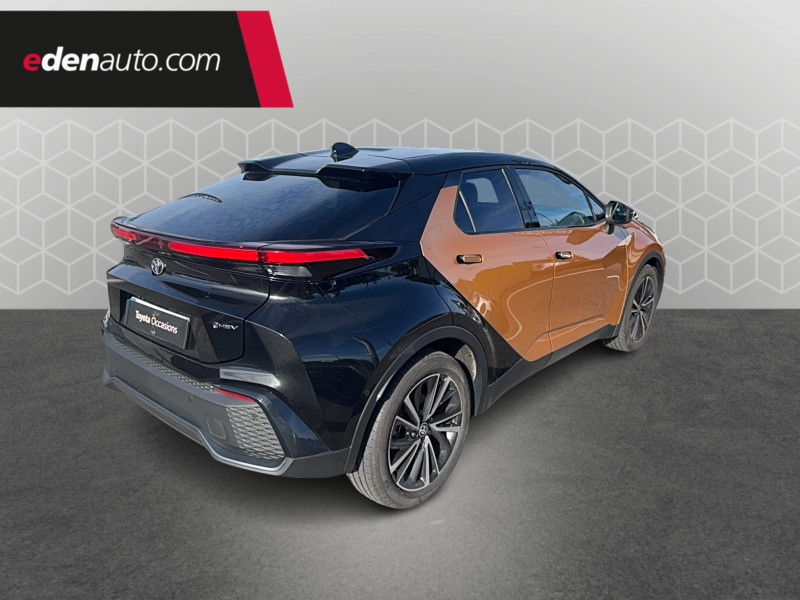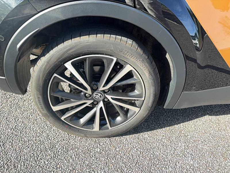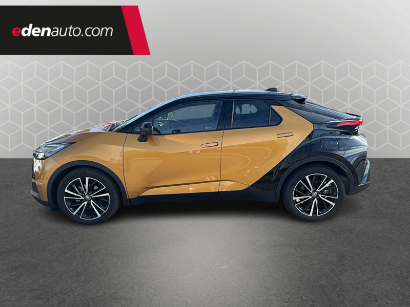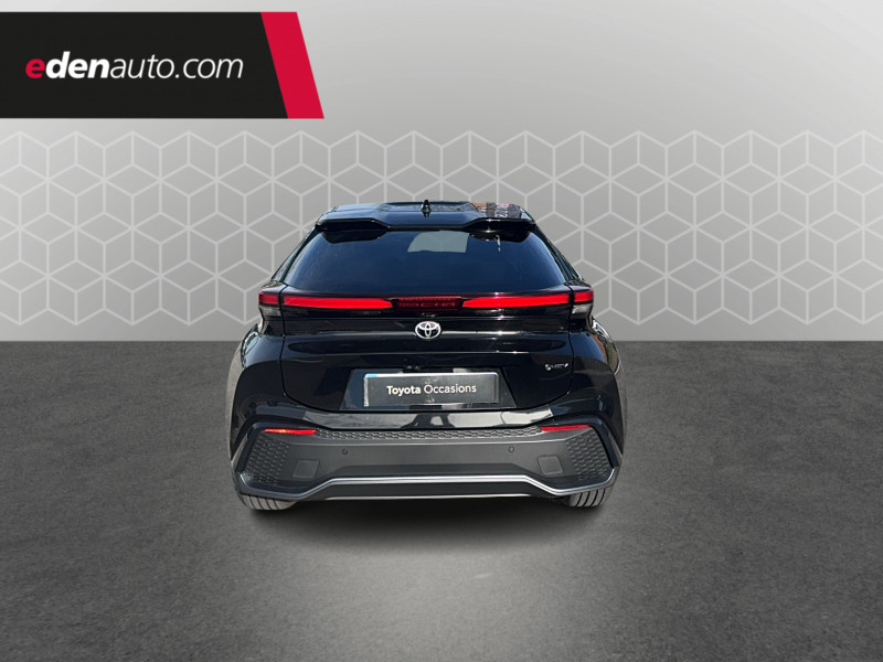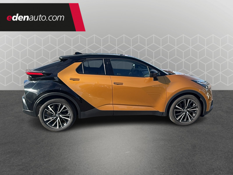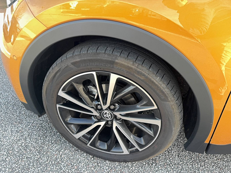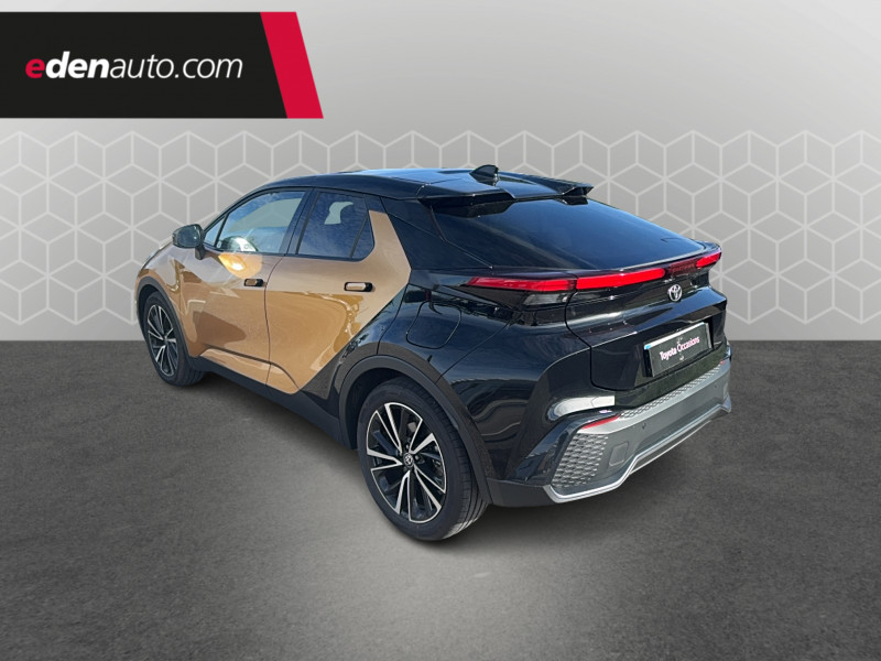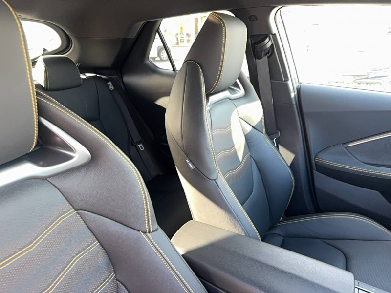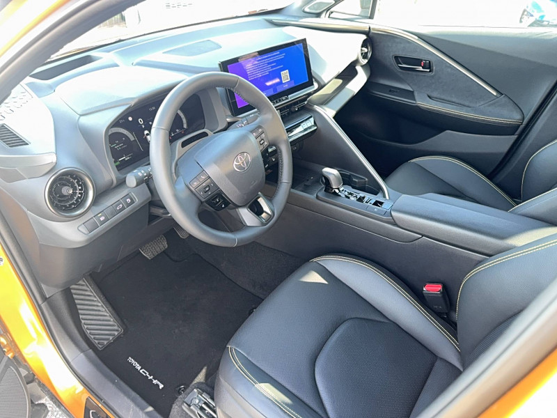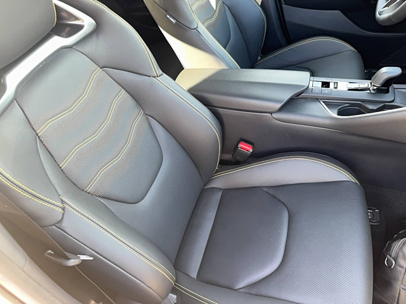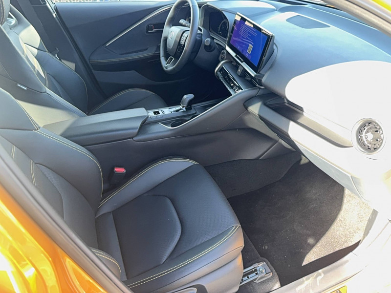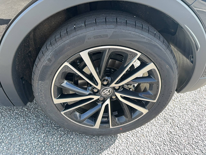 Activation automatique des feux de détresse AR (FHL) / Aide active au changement de voie liée à l'activation des feux clignotants (LCA) Ce système peut être utilisé sur l'autoroute lorsque le régulateur de vitesse adaptatif et l'assistant de trajectoire sont activés. Quand le conducteur met son clignotant pour changer de voie, le système s'assure qu'il peut le faire en toute sécurité et l'assiste automatiquement à l'aide du régulateur de vitesse. / Aide à la sortie sécurisée (SEA) Le système vous aide à prévenir les accidents en surveillant les autres usagers de la route qui s'approchent par l'arrière. Lorsqu'il détecte la présence d'un cycliste ou d'un véhicule, un indicateur lumineux s'affiche dans les rétroviseurs extérieurs et sur l'écran multi-informations et une alarme sonore alerte les occupants. / Ajustement automatique de la hauteur des phares / Alarme avec fonction antidémarrage / Assistant visuel de conduite (DMC) Ce système utilise une caméra située audessus du volant pour surveiller le niveau d'alerte et l'état du conducteur. Le système envoie un avertissement s'il détecte un état anormal, comme de la fatigue. Ces activités sont utilisées pour améliorer la performance du système d'arrêt d'urgence autonome (EDSS) à travers la détection précoce de la distraction. / Avertisseur d'angles morts (BSM) Lorsque les capteurs détectent un véhicule dans votre angle mort latéral, un indicateur lumineux s'éclaire sur le rétroviseur extérieur correspondant. Si vous mettez votre clignotant afin d'indiquer un changement de voie alors qu'un véhicule est dans votre angle mort, un indicateur lumineux apparaît dans le rétroviseur correspondant pour vous avertir du danger. / Avertisseur de circulation AR (RCTA) Cet avertisseur vous permet grâce aux capteurs d'angles morts de repérer un véhicule arrivant de côté quand vous sortez en marche AR d'une place de parking. S'il détecte un risque de collision, le système freine automatiquement et stoppe le véhicule. / Avertisseur de circulation AV et freinage d'urgence (FCTA) L'avertisseur détecte les véhicules et les vélos qui traversent devant votre véhicule et les signale au conducteur sur l'affichage tête haute. Si vous continuez d'avancer, une alarme sonore retentit afin d'éviter la collision. / Carrosserie bi-ton+ Toit et AR Noir / Clé digitale / Compteur numérique personnalisable 12,3" / Eclairage d'ambiance intérieur monochrome éclairage non personnalisable et non interactif : cave à pieds / rangement passager / Eclairage d'ambiance intérieur personnalisable et interactif 64 couleurs sous l'écran et panneaux de porte) / Ecrous antivol / Essuie-glaces AV avec détecteur de pluie / Feux d'angles De nuit, les feux d'angle émettent une lumière latérale lorsque vous tournez le volant. Cet éclairage augmente votre champ de vision sur les routes sinueuses ou dans les virages et vous permet de mieux visualiser la courbe de la route et les éventuels obstacles qui pourraient s'y trouver. / Feux de route adaptatifs (AHS) En conduite de nuit, ce système optimise automatiquement la répartition de vos phares, en occultant la zone où se trouve le trafic, afin que vos feux de route n'éblouissent pas les autres conducteurs tout en vous apportant une visibilité suffisante. / Filet coffre / Jantes en alliage 19" bi-ton noir et aluminium / Kit de réparation anti-crevaison / Kit de sécurité / Montants B de portes noir laqué / Optiques AV LED avec signature lumineuse Premium / Pare-brise chauffant (sous les essuie-glaces uniquement) / Poches aumonières au dos du siège passager AV / Poignées de portes affleurantes / Purificateur d'air ionique Nanoe / Radars de stationnement AV et AR (PKSB) Lorsque vous roulez à basse vitesse ou en marche AR, les radars permettent de détecter des objets statiques (obstacles, murs...) ou en mouvement (véhicules traversant à l'AR), le système de freinage de l'aide au stationnement fournit alors une assistance pour réduire l'impact. / Rétroviseur intérieur électrochromatique / Rétroviseur intérieur intelligent / Rétroviseurs extérieurs avec éclairage au sol / Sellerie en cuir véritable noir avec surpiqûres Jaune Sulfure / Services connectés de contrôle à distance MyToyota (inclus 4 ans) / Services connectés standards MyToyota (inclus 10 ans) / Seuils de portes en aluminium / Siège conducteur à réglages électriques avec mémorisation / Siège conducteur avec support lombaire électrique / Siège passager réglable manuellement en hauteur / Sièges AV contours enveloppants / Système audio premium JBL 9 HP / Système d'appel d'urgence automatique "E-Call" / Système de rappel pour les sièges AR (RSRS) / Système de stationnement semi-autonome (Toyota Teammate Advanced Park) avec caméra 360° (PVM) / Système d'ouverture/fermeture et démarrage sans clé "Smart Entry & Start" / Système multimédia Toyota Smart Connect Plus : Ecran couleur tactile 12,3" haute définition, Connectivité Bluetooth, USB et radio FM et DAB (digitale) , Système de connectivité smartphone Apple CarPlay et Android Auto (sans fil), Navigation satellitaire embarquée, Services intelligents dont navigation connectée avec infotrafic en temps réel, mises à jour cartographiques, Assistant vocal "Hey Toyota", recherche de points d'intérêts, zones de danger (fixes) / Toyota Safety Sense : Système de sécurité précollision avec détection des véhicules, piétons (jour/nuit) et cyclistes, actif également dans les intersections (PCS), Alerte de franchissement de ligne avec aide au maintien dans la file, assistant de trajectoire et détecteur de fatigue (LTA), Régulateur de vitesse adaptatif intelligent allant jusqu'à l'arrêt (ACC), Lecture des panneaux de signalisation avec limiteur de vitesse (RSA) et Gestion automatique des feux de route (AHB), Système d'arrêt d'urgence autonome (EDSS) / Vitrage feuilleté insonorisé / Volant chauffant / Volant