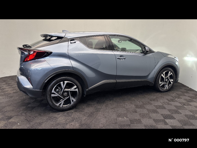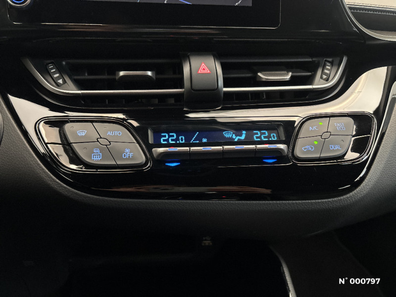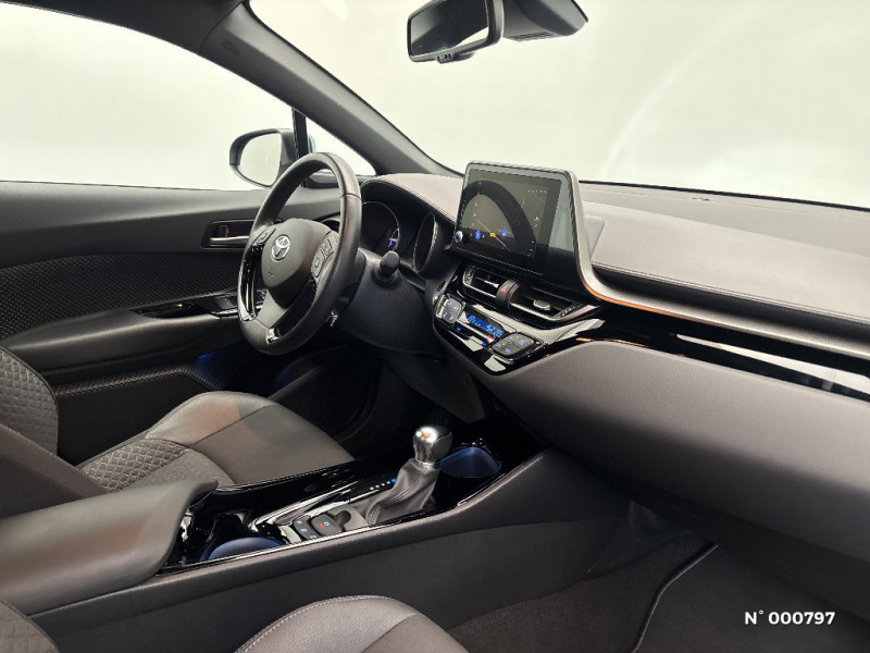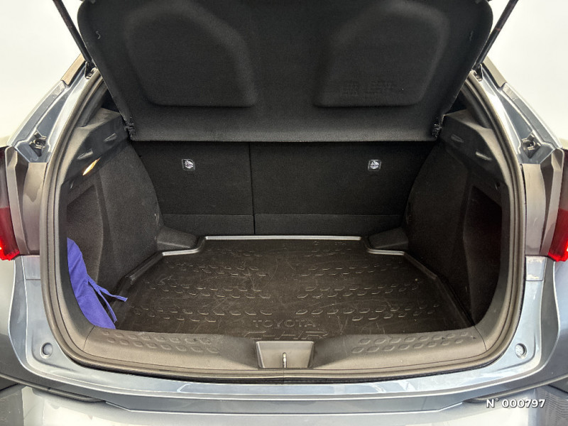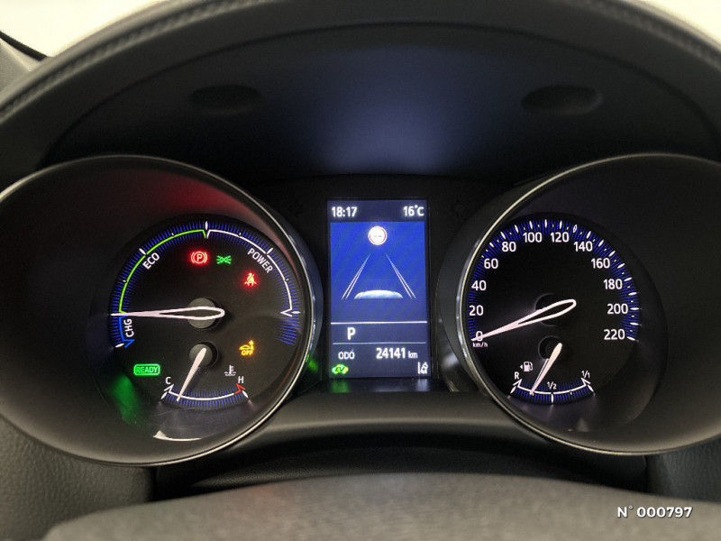 Alarme avec fonction antidémarrage / Antenne de toit type requin / "ATTENTION" - Equipements non communiqués / Becquet AV couleur carrosserie / Calculateur de temps de conduite en électrique / Ciel de pavillon noir / Combiné d'instrumentation avec écran couleur TFT multifonction 4" / Coques de rétroviseur couleur carrosserie / Eclairage d'accueil / Ecrous antivol / Fermeture centralisée avec commande à distance / Filet coffre / Follow me home (feux AV à extinction différée) / Frein de stationnement électrique / Indicateur de sous-gonflage des pneus / Kit de réparation anti-crevaison / Kit de sécurité / Lignes de vitres chromées / Montant central (pilier B) noir laqué / Optiques AV et AR à LED / Ornements de console centrale et de portières Gris Célestine / Poches aumonières au dos des sièges AV / Poignées de portes couleur carrosserie / Poignées de portes et pare-chocs AV couleur carrosserie / Projecteurs AV et clignotants et feux halogènes / Rétroviseur intérieur anti-éblouissement / Rétroviseur intérieur électrochromatique / Rétroviseurs extérieurs électriques et dégivrants avec rappels de clignotants / Sellerie en tissu gris sombre avec surpiqûres bleues et embossage faà§on diamant / Sellerie en tissu sport noir et bleu avec embossage faà§on diamant / Sellerie mi-cuir chocolat et noir avec surpiqûres faà§on diamant / Seuils de portes en aluminium / Siège passager AV ajustable manuellement en hauteur / Sièges AV type sport avec maintiens latéraux / Système AVAS (Acoustic Vehicle Alerting System) / Système d'accès (conducteur, passager et coffre) et de démarrage sans clé "Smart Entry & Start" / Système d'appel d'urgence automatique "E-Call" / Système de connectivité smartphone Apple CarPlay / Android Auto / Système de contrôle de motricité (TRC) / Système de contrôle de trajectoire (VSC) / Système de freinage antiblocage (ABS), BA et EBD / Système multimédia Toyota Touch avec radio DAB, écran couleur tactile 8'', bluetooth, USB / Tapis de sol en velours AV/AR / Toyota Safety Sense Système de sécurité précollision avec détection des piétons, Alerte de franchissement de ligne et détecteur de fatigue, gestion automatique des feux de route, lecture des panneaux de signalisation, régulateur de vitesse adaptatif. / Toyota Touch (système audio, écran tactile, Bluetooth et caméra de recul) / 6 HP / 7 Airbags (frontaux, lateraux, rideaux et un protège-genoux conducteur) / Accoudoir central avec compartiment de rangement / Ajustement manuel de la hauteur des phares