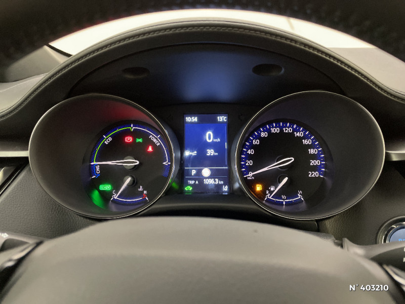 Antenne de toit type requin / "ATTENTION" - Equipements non communiqués / Becquet AV couleur carrosserie / Calculateur de temps de conduite en électrique / Ciel de pavillon noir / Combiné d'instrumentation avec écran couleur TFT multifonction 4" / Coques de rétroviseur couleur carrosserie / Eclairage d'accueil / Ecrous antivol / Fermeture centralisée avec commande à distance / 6 HP / 7 Airbags (frontaux, lateraux, rideaux et un protège-genoux conducteur) / Filet coffre / Follow me home (feux AV à extinction différée) / Frein de stationnement électrique / Indicateur de sous-gonflage des pneus / Kit de réparation anti-crevaison / Kit de sécurité / Lignes de vitres chromées / Montant central (pilier B) noir laqué / Optiques AV et AR à LED / Ornements de console centrale et de portières Gris Célestine / Accoudoir central avec compartiment de rangement / Ajustement manuel de la hauteur des phares / Poches aumonières au dos des sièges AV / Poignées de portes couleur carrosserie / Poignées de portes et pare-chocs AV couleur carrosserie / Projecteurs AV et clignotants et feux halogènes / Rétroviseur intérieur anti-éblouissement / Rétroviseur intérieur électrochromatique / Rétroviseurs extérieurs électriques et dégivrants avec rappels de clignotants / Sellerie en tissu gris sombre avec surpiqûres bleues et embossage faà§on diamant / Sellerie en tissu sport noir et bleu avec embossage faà§on diamant / Sellerie mi-cuir chocolat et noir avec surpiqûres faà§on diamant / Seuils de portes en aluminium / Siège passager AV ajustable manuellement en hauteur / Sièges AV type sport avec maintiens latéraux / Système AVAS (Acoustic Vehicle Alerting System) / Système d'accès (conducteur, passager et coffre) et de démarrage sans clé "Smart Entry & Start" / Système d'appel d'urgence automatique "E-Call" / Système de connectivité smartphone Apple CarPlay / Android Auto / Système de contrôle de motricité (TRC) / Système de contrôle de trajectoire (VSC) / Système de freinage antiblocage (ABS), BA et EBD / Système multimédia Toyota Touch avec radio DAB, écran couleur tactile 8'', bluetooth, USB / Tapis de sol en velours AV/AR / Toyota Safety Sense Système de sécurité précollision avec détection des piétons, Alerte de franchissement de ligne et détecteur de fatigue, gestion automatique des feux de route, lecture des panneaux de signalisation, régulateur de vitesse adaptatif. / Toyota Touch (système audio, écran tactile, Bluetooth et caméra de recul) / Alarme avec fonction antidémarrage