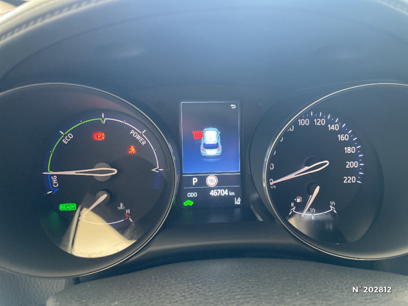 Rétroviseurs extérieurs électriques et dégivrants avec rappels de clignotants / Sellerie en tissu gris sombre avec surpiqûres bleues et embossage faà§on diamant / Sellerie en tissu/cuir synthétique noir avec surpiqûres grises et embossage faà§on diamant / Seuils de portes en aluminium / Sièges AV type sport avec maintiens latéraux / Système AVAS (Acoustic Vehicle Alerting System) / Système d'accès (conducteur, passager et coffre) et de démarrage sans clé "Smart Entry & Start" / Système d'appel d'urgence automatique "E-Call" / Système de connectivité smartphone Apple CarPlay / Android Auto / Système de contrôle de motricité (TRC) / Système de contrôle de trajectoire (VSC) / Système de freinage antiblocage (ABS), BA et EBD / Système multimédia Toyota Touch avec radio DAB, écran couleur tactile 8'', bluetooth, USB / Tapis de sol en velours AV/AR / Toyota Safety Sense Système de sécurité précollision avec détection des piétons, Alerte de franchissement de ligne et détecteur de fatigue, gestion automatique des feux de route, lecture des panneaux de signalisation, régulateur de vitesse adaptatif. / Toyota Smart Connect avec écran couleur tactile 8" haute définition, connectivité smartphone sans fil compatible AppleCar Play et Android Auto, Navigation connectée avec infotrafic en temps réel et Smart Parking (aide à la recherche de stationnement) Reconnaissance vocale avancée "Hey Toyota", 4 ans de mises à jour cartographiques et services connectés inclus / 6 HP / 7 Airbags (frontaux, lateraux, rideaux et un protège-genoux conducteur) / Siège passager AV ajustable manuellement en hauteur / Accoudoir central avec compartiment de rangement / Ajustement manuel de la hauteur des phares / Alarme avec fonction antidémarrage / Antenne de toit type requin / Avertisseur de circulation AR (RCTA) / Becquet AV couleur carrosserie / Calculateur de temps de conduite en électrique / Ciel de pavillon noir / Combiné d'instrumentation avec écran couleur TFT multifonction 4" / Coques de rétroviseur couleur carrosserie / Eclairage d'accueil / Ecrous antivol / Fermeture centralisée avec commande à distance / Filet coffre / Frein de stationnement électrique / Indicateur de sous-gonflage des pneus / Kit de réparation anti-crevaison / Kit de sécurité / Lignes de vitres chromées / Montant central (pilier B) noir laqué / Optiques AV à LED / Ornements de portière Bronze / Poches aumonières au dos des sièges AV / Poignées de portes et pare-chocs AV couleur carrosserie / Projecteurs antibrouillard, clignotants et feux AR halogènes / Rétroviseur intérieur électrochromatique