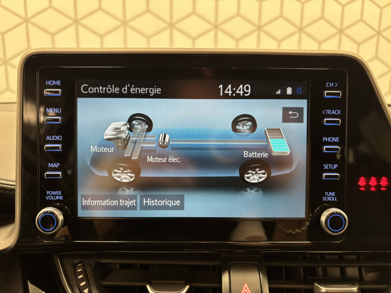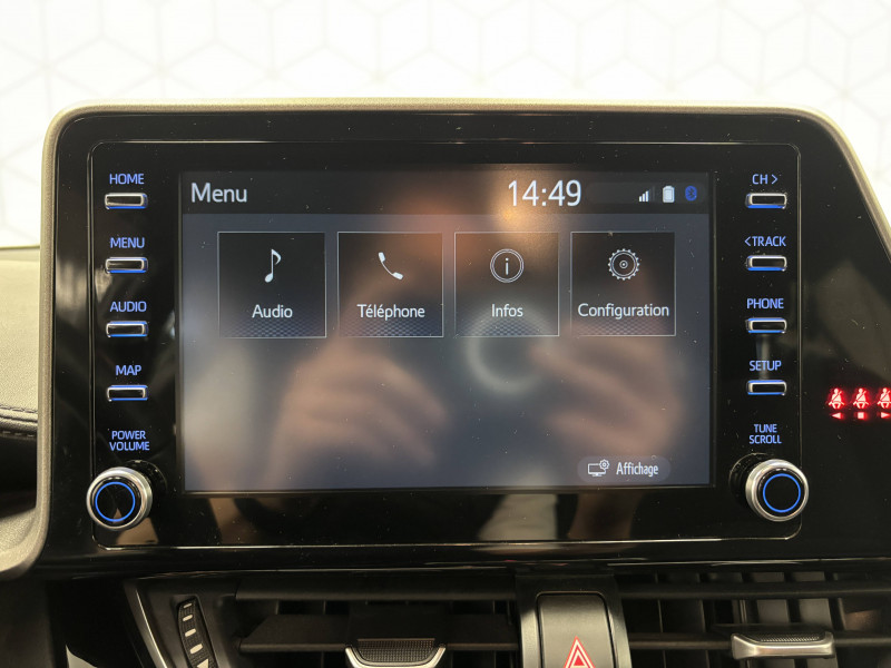 6 HP / 7 Airbags (frontaux, lateraux, rideaux et un protège-genoux conducteur) / Accoudoir central avec compartiment de rangement / Ajustement manuel de la hauteur des phares / Alarme avec fonction antidémarrage / Antenne de toit type requin / Becquet AV couleur carrosserie / Calculateur de temps de conduite en électrique / Ciel de pavillon noir / Combiné d'instrumentation avec écran couleur TFT multifonction 4" / Coques de rétroviseur couleur carrosserie / Ecrous antivol / Essuie-glace AV à déclenchement manuel / Fermeture centralisée avec commande à distance / Filet coffre / Frein de stationnement électrique / Indicateur de sous-gonflage des pneus / Kit de réparation anti-crevaison / Kit de sécurité / Lignes de vitres noires / Optiques AV et AR à LED / Ornements de console centrale et de portières Gris Platine / Poignées de portes et pare-chocs AV couleur carrosserie / Projecteurs AV et clignotants et feux halogènes / Rétroviseurs extérieurs électriques et dégivrants avec rappels de clignotants / Sellerie en tissu gris sombre avec surpiqûres grises et embossage façon diamant / Sièges AV type sport avec maintiens latéraux / Système AVAS (Acoustic Vehicle Alerting System) / Système d'appel d'urgence automatique "E-Call" / Système de connectivité smartphone Apple CarPlay / Android Auto / Système de contrôle de motricité (TRC) / Système de contrôle de trajectoire (VSC) / Système de freinage antiblocage (ABS), BA et EBD / Système multimédia Toyota Touch avec radio DAB, écran couleur tactile 8'', bluetooth, USB / Tapis de sol en velours AV/AR / Toyota Safety Sense Système de sécurité précollision avec détection des piétons, Alerte de franchissement de ligne et détecteur de fatigue, gestion automatique des feux de route, lecture des panneaux de signalisation, régulateur de vitesse adaptatif.