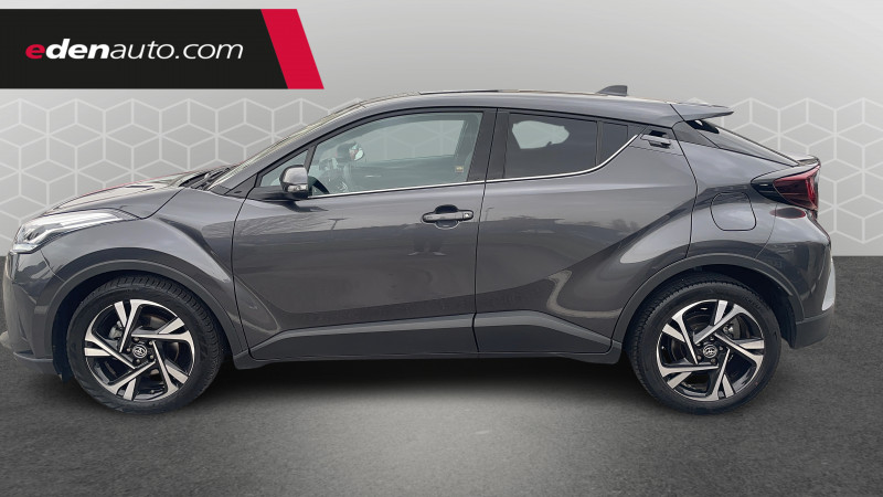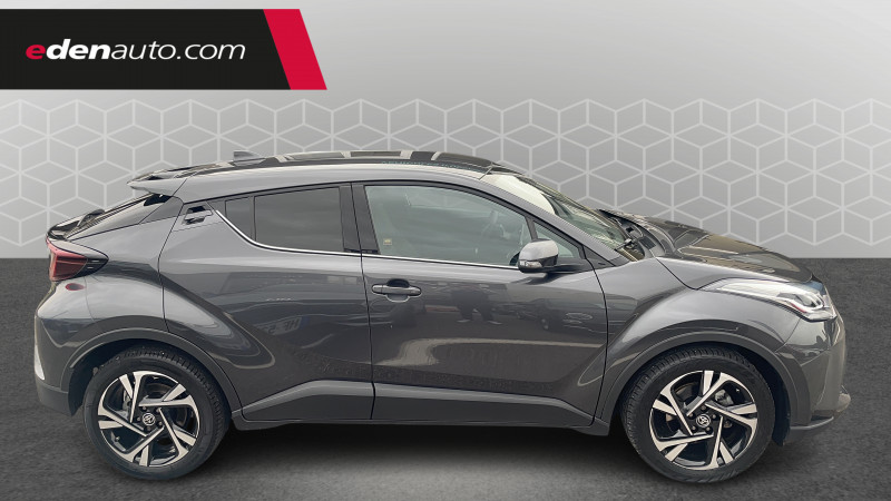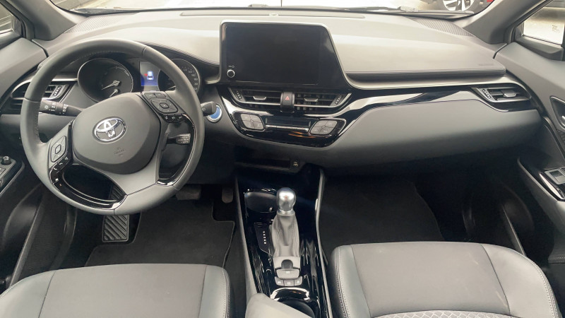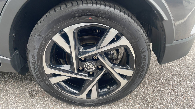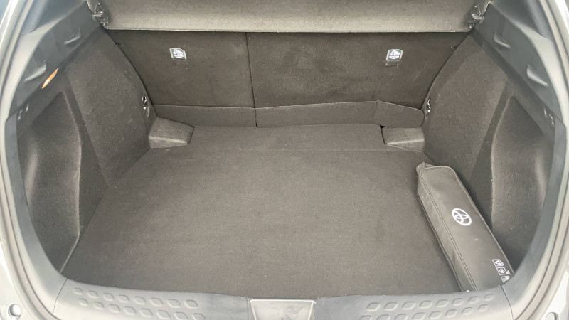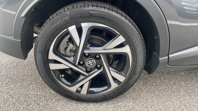 6 HP / 7 Airbags (frontaux, lateraux, rideaux et un protège-genoux conducteur) / Accoudoir central avec compartiment de rangement / Ajustement manuel de la hauteur des phares / Alarme avec fonction antidémarrage / Antenne de toit type requin / Becquet AV couleur carrosserie / Calculateur de temps de conduite en électrique / Ciel de pavillon noir / Combiné d'instrumentation avec écran couleur TFT multifonction 4" / Coques de rétroviseur couleur carrosserie / Eclairage d'accueil / Ecrous antivol / Fermeture centralisée avec commande à distance / Filet coffre / Frein de stationnement électrique / Indicateur de sous-gonflage des pneus / Kit de réparation anti-crevaison / Kit de sécurité / Lignes de vitres chromées / Montant central (pilier B) noir laqué / Optiques AV et AR à LED / Ornements de portière Bronze / Poches aumonières au dos des sièges AV / Poignées de portes et pare-chocs AV couleur carrosserie / Projecteurs AV et clignotants et feux halogènes / Rétroviseur intérieur électrochromatique / Rétroviseurs extérieurs électriques et dégivrants avec rappels de clignotants / Sellerie en tissu gris sombre avec surpiqûres bleues et embossage façon diamant / Seuils de portes en aluminium / Siège passager AV ajustable manuellement en hauteur / Sièges AV type sport avec maintiens latéraux / Système AVAS (Acoustic Vehicle Alerting System) / Système d'accès (conducteur, passager et coffre) et de démarrage sans clé "Smart Entry & Start" / Système d'appel d'urgence automatique "E-Call" / Système de connectivité smartphone Apple CarPlay / Android Auto / Système de contrôle de motricité (TRC) / Système de contrôle de trajectoire (VSC) / Système de freinage antiblocage (ABS), BA et EBD / Système multimédia Toyota Touch avec radio DAB, écran couleur tactile 8'', bluetooth, USB / Tapis de sol en velours AV/AR / Toyota Safety Sense Système de sécurité précollision avec détection des piétons, Alerte de franchissement de ligne et détecteur de fatigue, gestion automatique des feux de route, lecture des panneaux de signalisation, régulateur de vitesse adaptatif. / Toyota Smart Connect