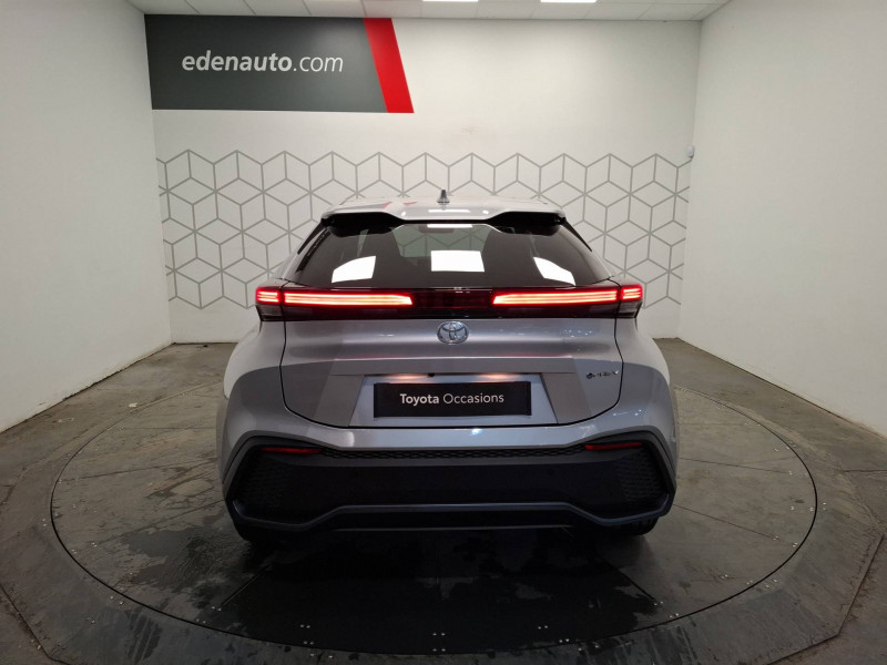 6 HP / Activation automatique des feux de détresse AR (FHL) / Aide à la sortie sécurisée (SEA) Le système vous aide à prévenir les accidents en surveillant les autres usagers de la route qui s'approchent par l'arrière. Lorsqu'il détecte la présence d'un cycliste ou d'un véhicule, un indicateur lumineux s'affiche dans les rétroviseurs extérieurs et sur l'écran multi-informations et une alarme sonore alerte les occupants. / Alarme avec fonction antidémarrage / Assistant visuel de conduite (DMC) Ce système utilise une caméra située audessus du volant pour surveiller le niveau d'alerte et l'état du conducteur. Le système envoie un avertissement s'il détecte un état anormal, comme de la fatigue. Ces activités sont utilisées pour améliorer la performance du système d'arrêt d'urgence autonome (EDSS) à travers la détection précoce de la distraction. / "ATTENTION" - Equipements en cours de saisie / Avertisseur d'angles morts (BSM) Lorsque les capteurs détectent un véhicule dans votre angle mort latéral, un indicateur lumineux s'éclaire sur le rétroviseur extérieur correspondant. Si vous mettez votre clignotant afin d'indiquer un changement de voie alors qu'un véhicule est dans votre angle mort, un indicateur lumineux apparaît dans le rétroviseur correspondant pour vous avertir du danger. / Avertisseur de circulation AR (RCTA) Cet avertisseur vous permet grâce aux capteurs d'angles morts de repérer un véhicule arrivant de côté quand vous sortez en marche AR d'une place de parking. S'il détecte un risque de collision, le système freine automatiquement et stoppe le véhicule. / Boîte automatique à variation continue / Câble de recharge Mode 2 (Type 2) 1,8 kW / 6 mètres (domestique) / Câble de recharge Mode 3 (Type 2) 22kW / 7,5 mètres (Wallbox) / Carrosserie monoton / Coffre avec plancher surélevé / Compteur numérique personnalisable 12,3" / Contrôle de traction (TCS) / Eclairage d'ambiance intérieur monochrome éclairage non personnalisable et non interactif : cave à pieds / rangement passager / Ecrous antivol / Electrostabilisateur programmé (ESP) / Essuie-glaces AV avec détecteur de pluie / Filet coffre / Jantes en alliage 18" bi-ton gris anthracite mat et aluminium / Kit de réparation anti-crevaison / Kit de sécurité / Montants B de portes noir laqué / Optiques AV full-LED / Pare-brise chauffant (sous les essuie-glaces uniquement) / Poignées de portes affleurantes / Prise 230 V dans le coffre / Programme "Toyota Experience" / Radars de stationnement AV et AR (PKSB) Lorsque vous roulez à basse vitesse ou en marche AR, les radars permettent de détecter des objets statiques (obstacles, murs...) ou en mouvement (véhicules traversant à l'AR), le système de freinage de l'aide au stationnement fournit alors une assistance pour réduire l'impact. / Rétroviseur intérieur électrochromatique / Rétroviseurs extérieurs avec éclairage au sol / Sacoche de rangement pour le câble de recharge / Sellerie tissu bi-ton gris anthracite avec surpiqûres blanches / Services connectés de contrôle à distance MyToyota (inclus 4 ans) / Services connectés standards MyToyota (inclus 10 ans) / Seuils de portes en aluminium / Siège conducteur avec support lombaire électrique / Siège passager réglable manuellement en hauteur / Système d'appel d'urgence automatique "E-Call" / Système de rappel pour les sièges AR (RSRS) / Système d'ouverture/fermeture et démarrage sans clé "Smart Entry & Start" / Système multimédia Toyota Smart Connect : Écran couleur tactile 8 haute définition, Connectivité Bluetooth, USB et radio, FM et DAB (digitale), Système de connectivité smartphone Apple CarPlay et Android Auto (sans fil), Services intelligents dont navigation connectée avec infotrafic en temps réel, mises à jour cartographiques, assitant vocal Hey Toyota et recherche de points d'intérêts (inclus 4 ans) / Toyota Safety Sense : Système de sécurité précollision avec détection des véhicules, piétons (jour/nuit) et cyclistes, actif également dans les intersections (PCS), Alerte de franchissement de ligne avec aide au maintien dans la file, assistant de trajectoire et détecteur de fatigue (LTA), Régulateur de vitesse adaptatif intelligent allant jusqu'à l'arrêt (ACC), Lecture des panneaux de signalisation avec limiteur de vitesse (RSA) et Gestion automatique des feux de route (AHB), Système d'arrêt d'urgence autonome (EDSS) / Vitrage feuilleté insonorisé / Volant chauffant / Volant gainé de matière synthétique