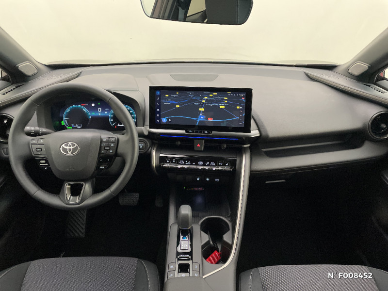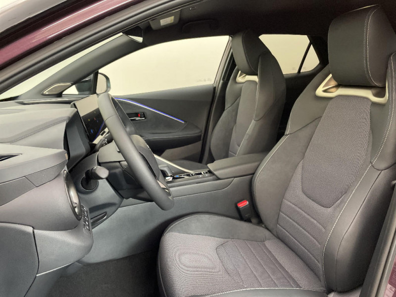 Sacoche de rangement pour le câble de recharge / Sellerie Premium suédine et tissu avec surpiqûres bleues et blanches / Services connectés de contrôle à distance MyToyota (inclus 4 ans) / Services connectés standards MyToyota (inclus 10 ans) / Seuils de portes en aluminium / Toyota Safety Sense : Système de sécurité précollision avec détection des véhicules, piétons (jour/nuit) et cyclistes, actif également dans les intersections (PCS), Alerte de franchissement de ligne avec aide au maintien dans la file, assistant de trajectoire et détecteur de fatigue (LTA), Régulateur de vitesse adaptatif intelligent allant jusqu'à l'arrêt (ACC), Lecture des panneaux de signalisation avec limiteur de vitesse (RSA) et Gestion automatique des feux de route (AHB), Système d'arrêt d'urgence autonome (EDSS) / Vitrage feuilleté insonorisé / Avertisseur de circulation AR (RCTA) Cet avertisseur vous permet grâce aux capteurs d'angles morts de repérer un véhicule arrivant de côté quand vous sortez en marche AR d'une place de parking. S'il détecte un risque de collision, le système freine automatiquement et stoppe le véhicule. / Câble de recharge Mode 2 (Type 2) 1,8 kW / 6 mètres (domestique) / Câble de recharge Mode 3 (Type 2) 22kW / 7,5 mètres (Wallbox) / Carrosserie bi-ton / Clé digitale / Coffre avec plancher surélevé / Compteur numérique personnalisable 12,3" / Eclairage d'ambiance intérieur monochrome éclairage non personnalisable et non interactif : cave à pieds / rangement passager / Eclairage d'ambiance intérieur personnalisable et interactif 64 couleurs sous l'écran et panneaux de porte) / Ecrous antivol / Essuie-glaces AV avec détecteur de pluie / Filet coffre / Jantes en alliage 19" bi-ton noir et aluminium / Aide à la sortie sécurisée (SEA) Le système vous aide à prévenir les accidents en surveillant les autres usagers de la route qui s'approchent par l'arrière. Lorsqu'il détecte la présence d'un cycliste ou d'un véhicule, un indicateur lumineux s'affiche dans les rétroviseurs extérieurs et sur l'écran multi-informations et une alarme sonore alerte les occupants. / Alarme avec fonction antidémarrage / Avertisseur d'angles morts (BSM) Lorsque les capteurs détectent un véhicule dans votre angle mort latéral, un indicateur lumineux s'éclaire sur le rétroviseur extérieur correspondant. Si vous mettez votre clignotant afin d'indiquer un changement de voie alors qu'un véhicule est dans votre angle mort, un indicateur lumineux apparaît dans le rétroviseur correspondant pour vous avertir du danger. / Activation automatique des feux de détresse AR (FHL) / Volant chauffant / Volant en cuir synthétique / Volant gainé de matière synthétique / Kit de réparation anti-crevaison / Kit de sécurité / Montants B de portes noir laqué / Optiques AV LED avec signature lumineuse Premium / Ornements latéraux noirs laqués / Pare-brise chauffant (sous les essuie-glaces uniquement) / Poches aumonières au dos du siège passager AV / Poignées de portes affleurantes / Prise 230 V dans le coffre / Programme "Toyota Experience" / Purificateur d'air ionique Nanoe / Radars de stationnement AV et AR (PKSB) Lorsque vous roulez à basse vitesse ou en marche AR, les radars permettent de détecter des objets statiques (obstacles, murs...) ou en mouvement (véhicules traversant à l'AR), le système de freinage de l'aide au stationnement fournit alors une assistance pour réduire l'impact. / Siège conducteur à réglages électriques avec mémorisation / Siège conducteur avec support lombaire électrique / Siège passager réglable manuellement en hauteur / Sièges AV contours enveloppants / Système audio premium JBL 9 HP / Système d'appel d'urgence automatique "E-Call" / Système de rappel pour les sièges AR (RSRS) / Système d'ouverture/fermeture et démarrage sans clé "Smart Entry & Start" / Système multimédia Toyota Smart Connect Plus : Ecran couleur tactile 12,3" haute définition, Connectivité Bluetooth, USB et radio FM et DAB (digitale) , Système de connectivité smartphone Apple CarPlay et Android Auto (sans fil), Navigation satellitaire embarquée, Services intelligents dont navigation connectée avec infotrafic en temps réel, mises à jour cartographiques, Assistant vocal "Hey Toyota", recherche de points d'intérêts, zones de danger (fixes) / Rétroviseur intérieur électrochromatique / Rétroviseurs extérieurs avec éclairage au sol