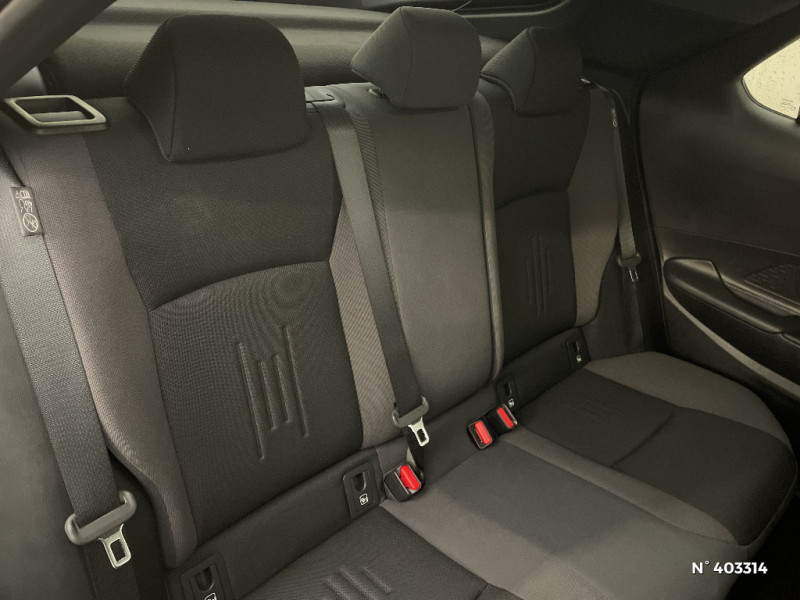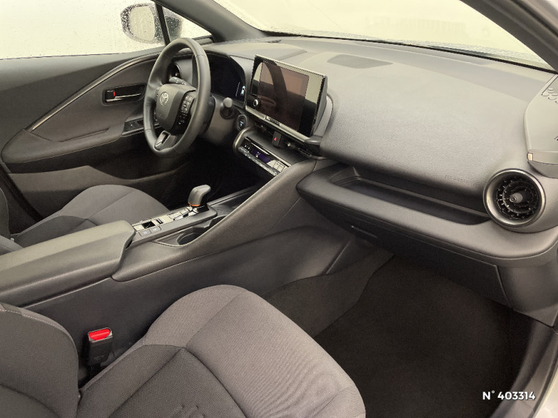 Kit de sécurité / Kit de réparation anti-crevaison / Montants B de portes noir laqué / Optiques AV full-LED / Pare-brise chauffant (sous les essuie-glaces uniquement) / Poignées de portes affleurantes / Radars de stationnement AV et AR (PKSB) Lorsque vous roulez à basse vitesse ou en marche AR, les radars permettent de détecter des objets statiques (obstacles, murs...) ou en mouvement (véhicules traversant à l'AR), le système de freinage de l'aide au stationnement fournit alors une assistance pour réduire l'impact. / Rétroviseur intérieur électrochromatique / Rétroviseurs extérieurs avec éclairage au sol / Sellerie tissu bi-ton gris anthracite avec surpiqûres blanches / Services connectés de contrôle à distance MyToyota (inclus 4 ans) / Services connectés standards MyToyota (inclus 10 ans) / Seuils de portes en aluminium / Siège conducteur avec support lombaire électrique / Siège passager réglable manuellement en hauteur / Système d'appel d'urgence automatique "E-Call" / Système de rappel pour les sièges AR (RSRS) / Système d'ouverture/fermeture et démarrage sans clé "Smart Entry & Start" / Système multimédia Toyota Smart Connect : à?cran couleur tactile 8 haute définition, Connectivité Bluetooth, USB et radio, FM et DAB (digitale), Système de connectivité smartphone Apple CarPlay et Android Auto (sans fil), Services intelligents dont navigation connectée avec infotrafic en temps réel, mises à jour cartographiques, assitant vocal Hey Toyota et recherche de points d'intérêts (inclus 4 ans) / Toyota Safety Sense : Système de sécurité précollision avec détection des véhicules, piétons (jour/nuit) et cyclistes, actif également dans les intersections (PCS), Alerte de franchissement de ligne avec aide au maintien dans la file, assistant de trajectoire et détecteur de fatigue (LTA), Régulateur de vitesse adaptatif intelligent allant jusqu'à l'arrêt (ACC), Lecture des panneaux de signalisation avec limiteur de vitesse (RSA) et Gestion automatique des feux de route (AHB), Système d'arrêt d'urgence autonome (EDSS) / Volant chauffant / Volant gainé de matière synthétique / 6 HP / Activation automatique des feux de détresse AR (FHL) / Aide à la sortie sécurisée (SEA) Le système vous aide à prévenir les accidents en surveillant les autres usagers de la route qui s'approchent par l'arrière. Lorsqu'il détecte la présence d'un cycliste ou d'un véhicule, un indicateur lumineux s'affiche dans les rétroviseurs extérieurs et sur l'écran multi-informations et une alarme sonore alerte les occupants. / Alarme avec fonction antidémarrage / Assistant visuel de conduite (DMC) Ce système utilise une caméra située audessus du volant pour surveiller le niveau d'alerte et l'état du conducteur. Le système envoie un avertissement s'il détecte un état anormal, comme de la fatigue. Ces activités sont utilisées pour améliorer la performance du système d'arrêt d'urgence autonome (EDSS) à travers la détection précoce de la distraction. / Avertisseur d'angles morts (BSM) Lorsque les capteurs détectent un véhicule dans votre angle mort latéral, un indicateur lumineux s'éclaire sur le rétroviseur extérieur correspondant. Si vous mettez votre clignotant afin d'indiquer un changement de voie alors qu'un véhicule est dans votre angle mort, un indicateur lumineux apparaît dans le rétroviseur correspondant pour vous avertir du danger. / Avertisseur de circulation AR (RCTA) Cet avertisseur vous permet grâce aux capteurs d'angles morts de repérer un véhicule arrivant de côté quand vous sortez en marche AR d'une place de parking. S'il détecte un risque de collision, le système freine automatiquement et stoppe le véhicule. / Boîte automatique à variation continue / Carrosserie monoton / Compteur numérique personnalisable 12,3" / Contrôle de traction (TCS) / Eclairage d'ambiance intérieur monochrome éclairage non personnalisable et non interactif : cave à pieds / rangement passager / Ecrous antivol / Electrostabilisateur programmé (ESP) / Essuie-glaces AV avec détecteur de pluie / Feux Full LED (AV/AR et antibrouillard) / Filet coffre / Jantes en alliage 18" bi-ton gris anthracite mat et aluminium