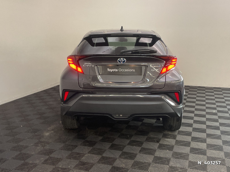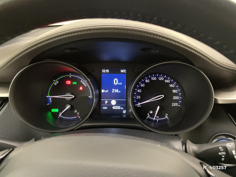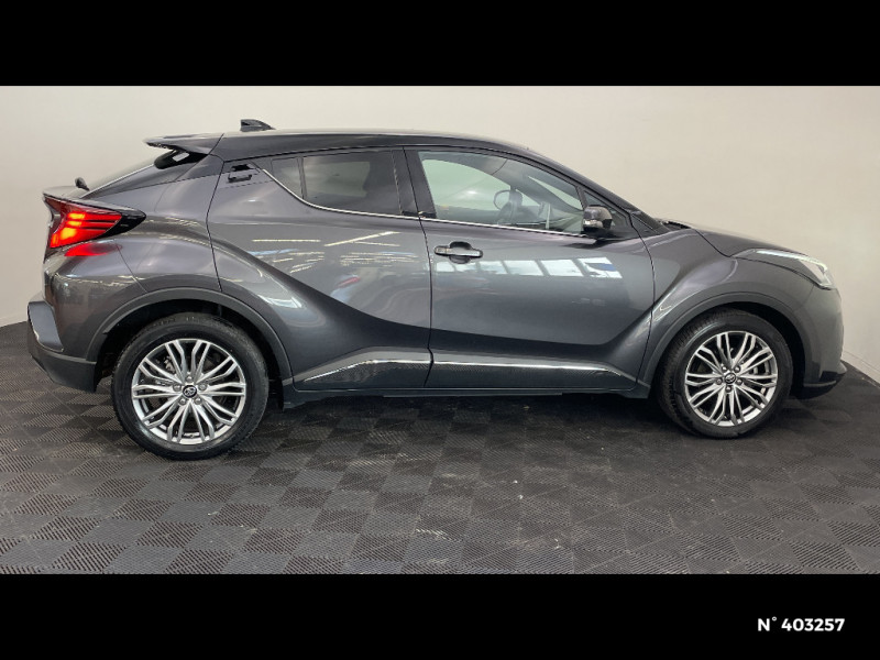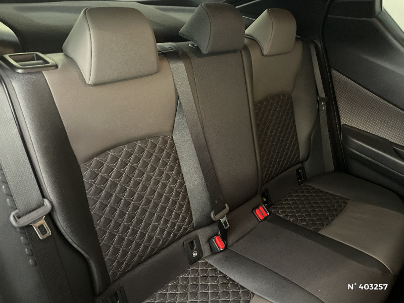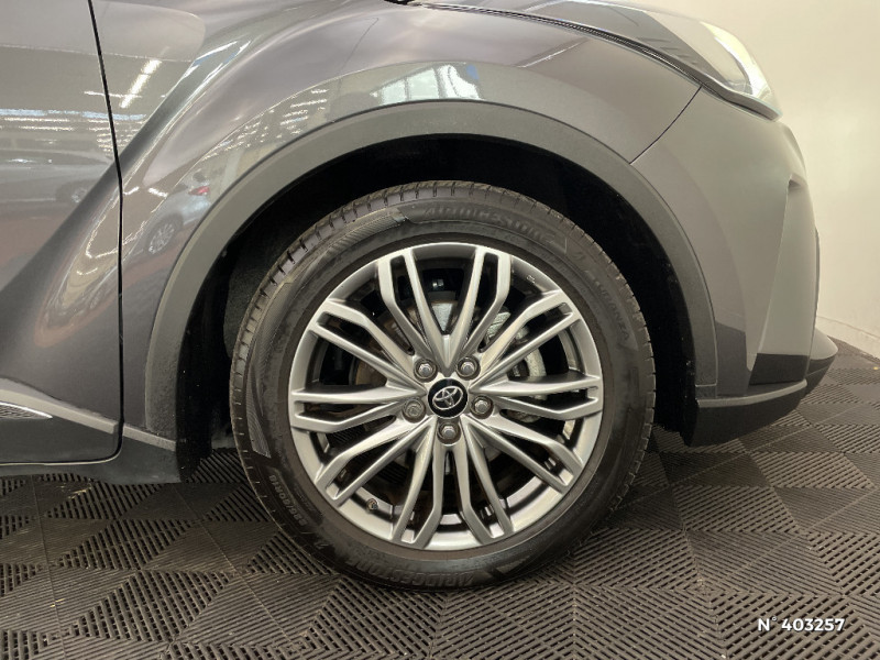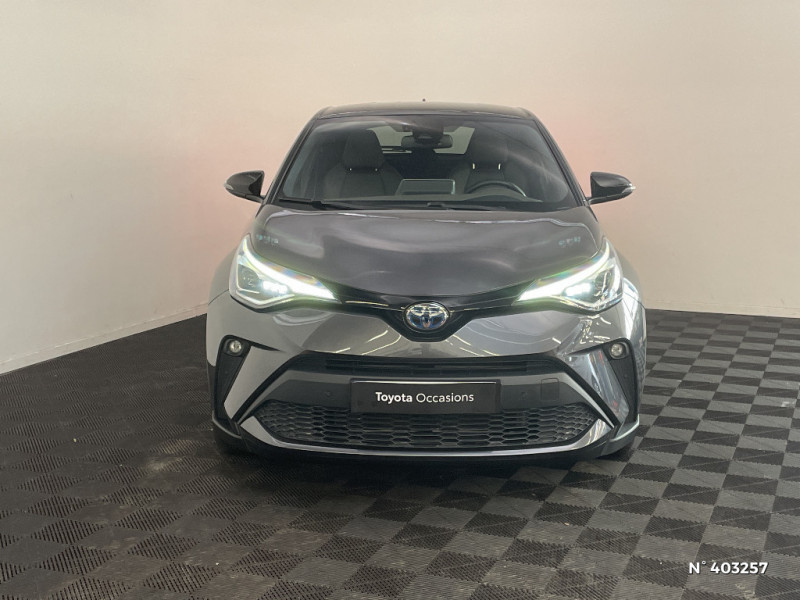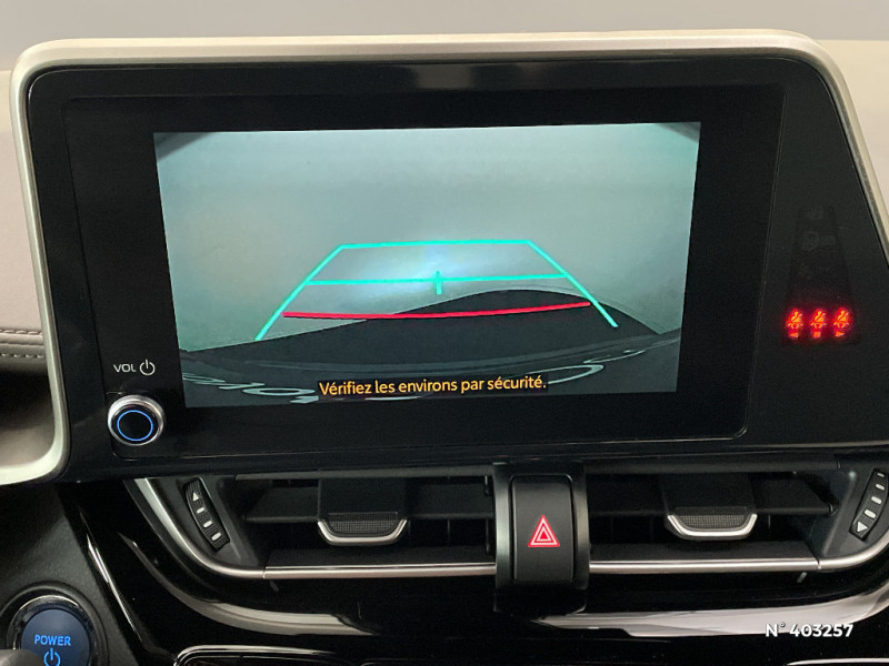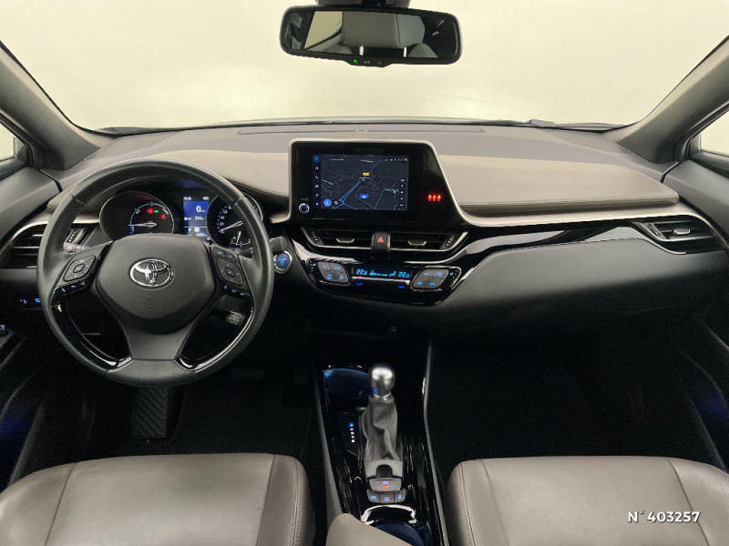 Système de freinage antiblocage (ABS), BA et EBD / Système multimédia Toyota Touch avec radio DAB, écran couleur tactile 8'', bluetooth, USB / Tapis de sol en velours AV/AR / Toyota Safety Sense Système de sécurité précollision avec détection des piétons, Alerte de franchissement de ligne et détecteur de fatigue, gestion automatique des feux de route, lecture des panneaux de signalisation, régulateur de vitesse adaptatif. / 6 HP / 7 Airbags (frontaux, lateraux, rideaux et un protège-genoux conducteur) / Accoudoir central avec compartiment de rangement / Ajustement manuel de la hauteur des phares / Alarme avec fonction antidémarrage / Antenne de toit type requin / Avertisseurs d'angles morts et de circulation AR avec freinage d'urgence auto / Becquet AV couleur carrosserie / Calculateur de temps de conduite en électrique / Carrosserie bi-ton avec toit noir / Ciel de pavillon noir / Combiné d'instrumentation avec écran couleur TFT multifonction 4" / Coques de rétroviseurs extérieurs noires / Eclairage d'accueil / Ecrous antivol / Fermeture centralisée avec commande à distance / Feu de recul central à LED sur bouclier AR / Feux AR à LED avec clignotants séquentiels / Filet coffre / Frein de stationnement électrique / Garnissage de portières brun / Indicateur de sous-gonflage des pneus / Kit de réparation anti-crevaison / Kit de sécurité / Lignes de vitres chromées / Montant central (pilier B) noir laqué / Optiques AV LED avec signature lumineuse Premium / Ornements de console centrale et de portières Gris Lune / Poches aumonières au dos des sièges AV / Poignées de portes et pare-chocs AV couleur carrosserie / Purificateur d'air ionique Nanoe / Rétroviseur intérieur électrochromatique / Rétroviseurs extérieurs avec projection au sol du logo Toyota C-HR / Rétroviseurs extérieurs électriques et dégivrants avec rappels de clignotants / Revêtement supérieur de planche de bord et d´accoudoir central brun sombre / Sellerie mi-cuir chocolat et noir avec surpiqûres faà§on diamant / Siège conducteur à réglage lombaire électrique / Siège passager AV ajustable manuellement en hauteur / Sièges AV type sport avec maintiens latéraux / Système AVAS (Acoustic Vehicle Alerting System) / Système d'accès (conducteur, passager et coffre) et de démarrage sans clé "Smart Entry & Start" / Système d'appel d'urgence automatique "E-Call" / Système de connectivité smartphone Apple CarPlay / Android Auto / Système de contrôle de motricité (TRC) / Système de contrôle de trajectoire (VSC)