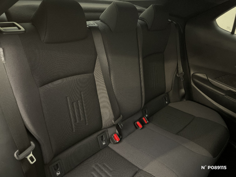 Pare-brise chauffant (sous les essuie-glaces uniquement) / Optiques AV full-LED / Poignées de portes affleurantes / Radars de stationnement AV et AR (PKSB) Lorsque vous roulez à basse vitesse ou en marche AR, les radars permettent de détecter des objets statiques (obstacles, murs...) ou en mouvement (véhicules traversant à l'AR), le système de freinage de l'aide au stationnement fournit alors une assistance pour réduire l'impact. / Rétroviseur intérieur électrochromatique / Rétroviseurs extérieurs avec éclairage au sol / Avertisseur d'angles morts (BSM) Lorsque les capteurs détectent un véhicule dans votre angle mort latéral, un indicateur lumineux s'éclaire sur le rétroviseur extérieur correspondant. Si vous mettez votre clignotant afin d'indiquer un changement de voie alors qu'un véhicule est dans votre angle mort, un indicateur lumineux apparaît dans le rétroviseur correspondant pour vous avertir du danger. / Activation automatique des feux de détresse AR (FHL) / Aide à la sortie sécurisée (SEA) Le système vous aide à prévenir les accidents en surveillant les autres usagers de la route qui s'approchent par l'arrière. Lorsqu'il détecte la présence d'un cycliste ou d'un véhicule, un indicateur lumineux s'affiche dans les rétroviseurs extérieurs et sur l'écran multi-informations et une alarme sonore alerte les occupants. / Alarme avec fonction antidémarrage / Assistant visuel de conduite (DMC) Ce système utilise une caméra située audessus du volant pour surveiller le niveau d'alerte et l'état du conducteur. Le système envoie un avertissement s'il détecte un état anormal, comme de la fatigue. Ces activités sont utilisées pour améliorer la performance du système d'arrêt d'urgence autonome (EDSS) à travers la détection précoce de la distraction. / Services connectés standards MyToyota (inclus 10 ans) / Seuils de portes en aluminium / Siège conducteur avec support lombaire électrique / Siège passager réglable manuellement en hauteur / Système d'appel d'urgence automatique "E-Call" / Système de rappel pour les sièges AR (RSRS) / Système d'ouverture/fermeture et démarrage sans clé "Smart Entry & Start" / Système multimédia Toyota Smart Connect : à?cran couleur tactile 8 haute définition, Connectivité Bluetooth, USB et radio, FM et DAB (digitale), Système de connectivité smartphone Apple CarPlay et Android Auto (sans fil), Services intelligents dont navigation connectée avec infotrafic en temps réel, mises à jour cartographiques, assitant vocal Hey Toyota et recherche de points d'intérêts (inclus 4 ans) / Toyota Safety Sense : Système de sécurité précollision avec détection des véhicules, piétons (jour/nuit) et cyclistes, actif également dans les intersections (PCS), Alerte de franchissement de ligne avec aide au maintien dans la file, assistant de trajectoire et détecteur de fatigue (LTA), Régulateur de vitesse adaptatif intelligent allant jusqu'à l'arrêt (ACC), Lecture des panneaux de signalisation avec limiteur de vitesse (RSA) et Gestion automatique des feux de route (AHB), Système d'arrêt d'urgence autonome (EDSS) / Volant chauffant / Volant gainé de matière synthétique / 6 HP / Sellerie tissu bi-ton gris anthracite avec surpiqûres blanches / Services connectés de contrôle à distance MyToyota (inclus 4 ans) / Avertisseur de circulation AR (RCTA) Cet avertisseur vous permet grâce aux capteurs d'angles morts de repérer un véhicule arrivant de côté quand vous sortez en marche AR d'une place de parking. S'il détecte un risque de collision, le système freine automatiquement et stoppe le véhicule. / Boîte automatique à variation continue / Carrosserie monoton / Compteur numérique personnalisable 12,3" / Contrôle de traction (TCS) / Eclairage d'ambiance intérieur monochrome éclairage non personnalisable et non interactif : cave à pieds / rangement passager / Ecrous antivol / Electrostabilisateur programmé (ESP) / Essuie-glaces AV avec détecteur de pluie / Feux Full LED (AV/AR et antibrouillard) / Filet coffre / Jantes en alliage 18" bi-ton gris anthracite mat et aluminium / Kit de réparation anti-crevaison / Kit de sécurité / Montants B de portes noir laqué