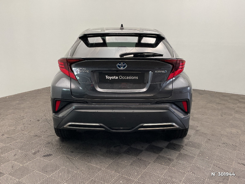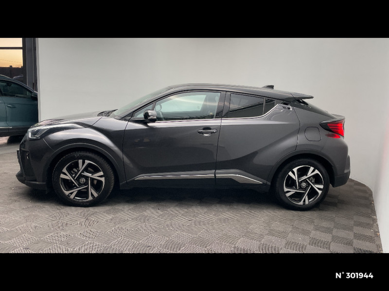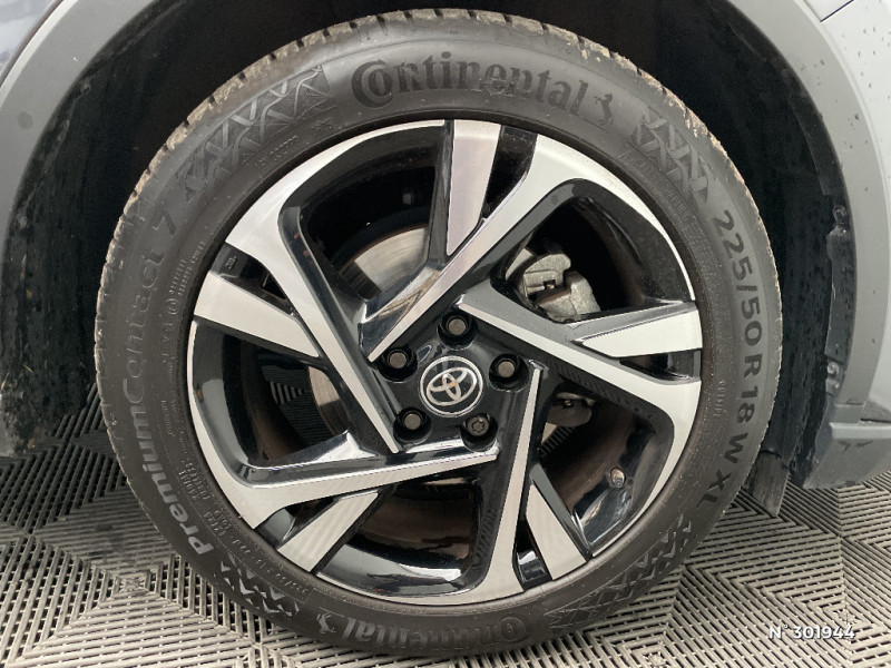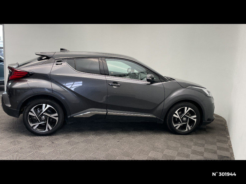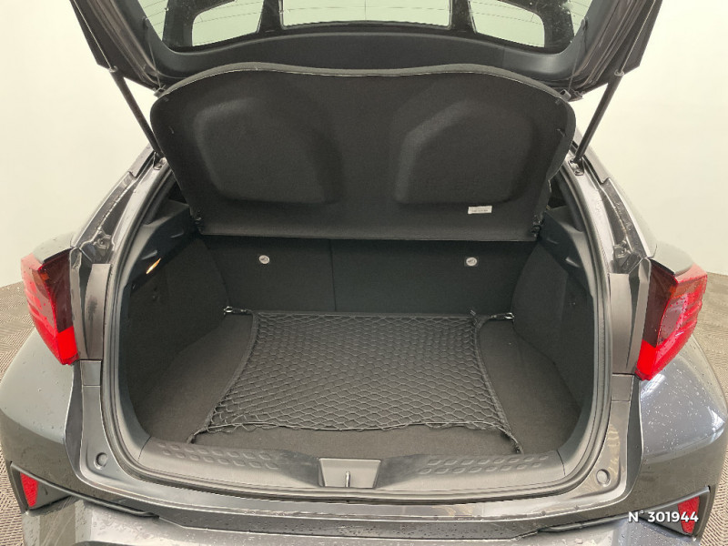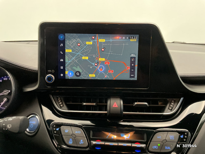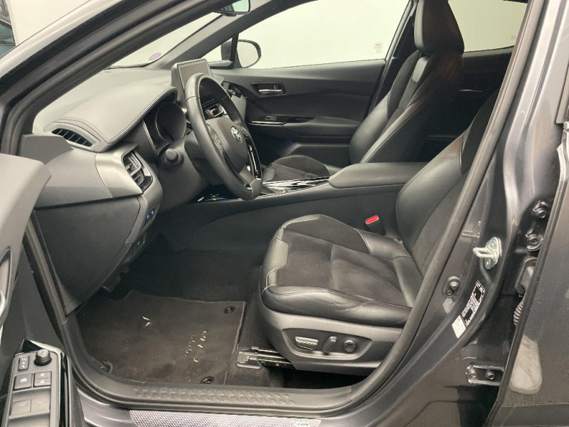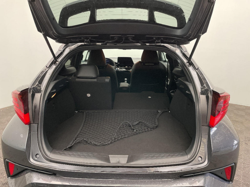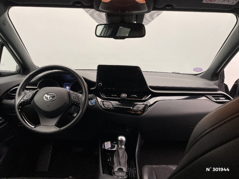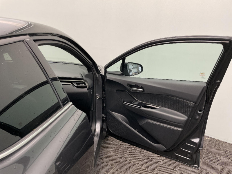 Frein de stationnement électrique / Indicateur de sous-gonflage des pneus / Kit de réparation anti-crevaison / Kit de sécurité / Lignes de vitres chromées / Montant central (pilier B) noir laqué / Optiques AV LED avec signature lumineuse Premium / Ornement de pare-chocs AR chromé faà§on canules / Ornements de portière Bronze / Poches aumonières au dos des sièges AV / Poignées de portes et pare-chocs AV couleur carrosserie / Projecteurs adaptatifs avec ajustement automatique de la hauteur des phares / Rétroviseur intérieur électrochromatique / Rétroviseurs extérieurs avec projection au sol du logo Toyota C-HR / Rétroviseurs extérieurs électriques et dégivrants avec rappels de clignotants / Revêtement supérieur de planche de bord et d'accoudoir central noir / Sellerie en cuir Alcantara noir avec embossage Toyota C-HR / Siège conducteur à réglage lombaire électrique / Siège passager AV ajustable manuellement en hauteur / Sièges AV type sport avec maintiens latéraux / Système AVAS (Acoustic Vehicle Alerting System) / Système d'accès (conducteur, passager et coffre) et de démarrage sans clé "Smart Entry & Start" / Système d'aide au stationnement intelligent S-IPA / Système d'appel d'urgence automatique "E-Call" / Système de connectivité smartphone Apple CarPlay / Android Auto / Système de contrôle de motricité (TRC) / Système de contrôle de trajectoire (VSC) / Système de freinage antiblocage (ABS), BA et EBD / Système multimédia Toyota Touch avec radio DAB, écran couleur tactile 8'', bluetooth, USB / Tapis de sol en velours AV/AR / Toyota Safety Sense Système de sécurité précollision avec détection des piétons, Alerte de franchissement de ligne et détecteur de fatigue, gestion automatique des feux de route, lecture des panneaux de signalisation, régulateur de vitesse adaptatif. / Volant chauffant / 7 Airbags (frontaux, lateraux, rideaux et un protège-genoux conducteur) / 9 HP / Accoudoir central avec compartiment de rangement / Alarme avec fonction antidémarrage / Antenne de toit type requin / Avertisseurs d'angles morts et de circulation AR avec freinage d'urgence auto / Becquet AV couleur carrosserie / Calculateur de temps de conduite en électrique / Carrosserie bi-ton avec toit noir / Ciel de toit gris clair / Coffre à double fond avec plancher surélevé / Combiné d'instrumentation avec écran couleur TFT multifonction 4" / Commandes de boîte de vitesses séquentielle / Coques de rétroviseurs extérieurs noires / Eclairage d'accueil / Ecrous antivol / Fermeture centralisée avec commande à distance / Feu de recul central à LED sur bouclier AR / Feux AR à LED avec clignotants séquentiels / Filet coffre