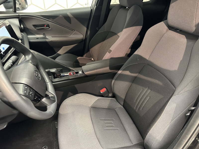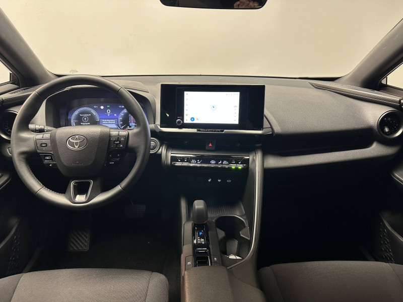 6 HP / Activation automatique des feux de détresse AR (FHL) / Aide à la sortie sécurisée (SEA) Le système vous aide à prévenir les accidents en surveillant les autres usagers de la route qui s'approchent par l'arrière. Lorsqu'il détecte la présence d'un cycliste ou d'un véhicule, un indicateur lumineux s'affiche dans les rétroviseurs extérieurs et sur l'écran multi-informations et une alarme sonore alerte les occupants. / Alarme avec fonction antidémarrage / Avertisseur d'angles morts (BSM) Lorsque les capteurs détectent un véhicule dans votre angle mort latéral, un indicateur lumineux s'éclaire sur le rétroviseur extérieur correspondant. Si vous mettez votre clignotant afin d'indiquer un changement de voie alors qu'un véhicule est dans votre angle mort, un indicateur lumineux apparaît dans le rétroviseur correspondant pour vous avertir du danger. / Avertisseur de circulation AR (RCTA) Cet avertisseur vous permet grâce aux capteurs d'angles morts de repérer un véhicule arrivant de côté quand vous sortez en marche AR d'une place de parking. S'il détecte un risque de collision, le système freine automatiquement et stoppe le véhicule. / Caméra de recul avec lave-caméra / Carrosserie monoton / Compteur numérique personnalisable 12,3" / Eclairage d'ambiance intérieur / Ecrous antivol / Essuie-glaces AV avec détecteur de pluie / Filet coffre / Jantes en alliage 18" bi-ton noir et aluminium / Kit de réparation anti-crevaison / Kit de sécurité / Optiques AV full-LED / Pare-brise chauffant (sous les essuie-glaces uniquement) / Poignées de portes affleurantes / Radars de stationnement AV et AR (PKSB) Lorsque vous roulez à basse vitesse ou en marche AR, les radars permettent de détecter des objets statiques (obstacles, murs...) ou en mouvement (véhicules traversant à l'AR), le système de freinage de l'aide au stationnement fournit alors une assistance pour réduire l'impact. / Rétroviseur intérieur électrochromatique / Rétroviseurs extérieurs avec éclairage au sol / Sellerie tissu gris foncé avec surpiqûres cuivre / Services connectés de contrôle à distance MyToyota (inclus 4 ans) / Services connectés standards MyToyota (inclus 10 ans) / Seuils de portes en aluminium / Siège conducteur avec support lombaire électrique / Siège passager réglable manuellement en hauteur / Système d'appel d'urgence automatique "E-Call" / Système de rappel pour les sièges AR (RSRS) / Système d'ouverture/fermeture et démarrage sans clé "Smart Entry & Start" / Système multimédia Toyota Smart Connect : Ecran couleur tactile 8" haute définition,Connectivité Bluetooth, USB et radio FM et DAB (digitale) Connectivité smartphone Apple CarPlay et Android Auto (sans fil), Navigation connectée avec infotrafic en temps réel et Smart Parking (aide à la recherche de stationnement), Reconnaissance vocale avancée "Hey Toyota", 4 ans de mises à jour cartographiques et services connectés inclus / Toyota Safety Sense : Système de sécurité précollision avec détection des véhicules, piétons (jour/nuit) et cyclistes, actif également dans les intersections (PCS), Alerte de franchissement de ligne avec aide au maintien dans la file, assistant de trajectoire et détecteur de fatigue (LTA), Régulateur de vitesse adaptatif intelligent allant jusqu'à l'arrêt (ACC), Lecture des panneaux de signalisation avec limiteur de vitesse (RSA) et Gestion automatique des feux de route (AHB), Système d'arrêt d'urgence autonome (EDSS) / Volant chauffant / Volant en cuir synthétique