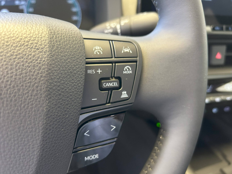 6 HP / Activation automatique des feux de détresse AR (FHL) / Aide à la sortie sécurisée (SEA) Le système vous aide à prévenir les accidents en surveillant les autres usagers de la route qui s'approchent par l'arrière. Lorsqu'il détecte la présence d'un cycliste ou d'un véhicule, un indicateur lumineux s'affiche dans les rétroviseurs extérieurs et sur l'écran multi-informations et une alarme sonore alerte les occupants. / Alarme avec fonction antidémarrage / Assistant visuel de conduite (DMC) Ce système utilise une caméra située audessus du volant pour surveiller le niveau d'alerte et l'état du conducteur. Le système envoie un avertissement s'il détecte un état anormal, comme de la fatigue. Ces activités sont utilisées pour améliorer la performance du système d'arrêt d'urgence autonome (EDSS) à travers la détection précoce de la distraction. / Avertisseur d'angles morts (BSM) Lorsque les capteurs détectent un véhicule dans votre angle mort latéral, un indicateur lumineux s'éclaire sur le rétroviseur extérieur correspondant. Si vous mettez votre clignotant afin d'indiquer un changement de voie alors qu'un véhicule est dans votre angle mort, un indicateur lumineux apparaît dans le rétroviseur correspondant pour vous avertir du danger. / Avertisseur de circulation AR (RCTA) Cet avertisseur vous permet grâce aux capteurs d'angles morts de repérer un véhicule arrivant de côté quand vous sortez en marche AR d'une place de parking. S'il détecte un risque de collision, le système freine automatiquement et stoppe le véhicule. / Boîte automatique à variation continue / Carrosserie monoton / Compteur numérique personnalisable 12,3" / Contrôle de traction (TCS) / Eclairage d'ambiance intérieur monochrome éclairage non personnalisable et non interactif : cave à pieds / rangement passager / Ecrous antivol / Electrostabilisateur programmé (ESP) / Essuie-glaces AV avec détecteur de pluie / Feux Full LED (AV/AR et antibrouillard) / Filet coffre / Jantes en alliage 18" bi-ton gris anthracite mat et aluminium / Kit de réparation anti-crevaison / Kit de sécurité / Montants B de portes noir laqué / Optiques AV full-LED / Pare-brise chauffant (sous les essuie-glaces uniquement) / Poignées de portes affleurantes / Radars de stationnement AV et AR (PKSB) Lorsque vous roulez à basse vitesse ou en marche AR, les radars permettent de détecter des objets statiques (obstacles, murs...) ou en mouvement (véhicules traversant à l'AR), le système de freinage de l'aide au stationnement fournit alors une assistance pour réduire l'impact. / Rétroviseur intérieur électrochromatique / Rétroviseurs extérieurs avec éclairage au sol / Sellerie tissu bi-ton gris anthracite avec surpiqûres blanches / Services connectés de contrôle à distance MyToyota (inclus 4 ans) / Services connectés standards MyToyota (inclus 10 ans) / Seuils de portes en aluminium / Siège conducteur avec support lombaire électrique / Siège passager réglable manuellement en hauteur / Système d'appel d'urgence automatique "E-Call" / Système de rappel pour les sièges AR (RSRS) / Système d'ouverture/fermeture et démarrage sans clé "Smart Entry & Start" / Système multimédia Toyota Smart Connect : Écran couleur tactile 8 haute définition, Connectivité Bluetooth, USB et radio, FM et DAB (digitale), Système de connectivité smartphone Apple CarPlay et Android Auto (sans fil), Services intelligents dont navigation connectée avec infotrafic en temps réel, mises à jour cartographiques, assitant vocal Hey Toyota et recherche de points d'intérêts (inclus 4 ans) / Toyota Safety Sense : Système de sécurité précollision avec détection des véhicules, piétons (jour/nuit) et cyclistes, actif également dans les intersections (PCS), Alerte de franchissement de ligne avec aide au maintien dans la file, assistant de trajectoire et détecteur de fatigue (LTA), Régulateur de vitesse adaptatif intelligent allant jusqu'à l'arrêt (ACC), Lecture des panneaux de signalisation avec limiteur de vitesse (RSA) et Gestion automatique des feux de route (AHB), Système d'arrêt d'urgence autonome (EDSS) / Volant chauffant / Volant gainé de matière synthétique