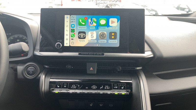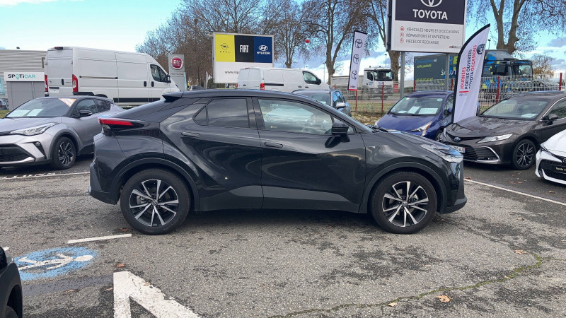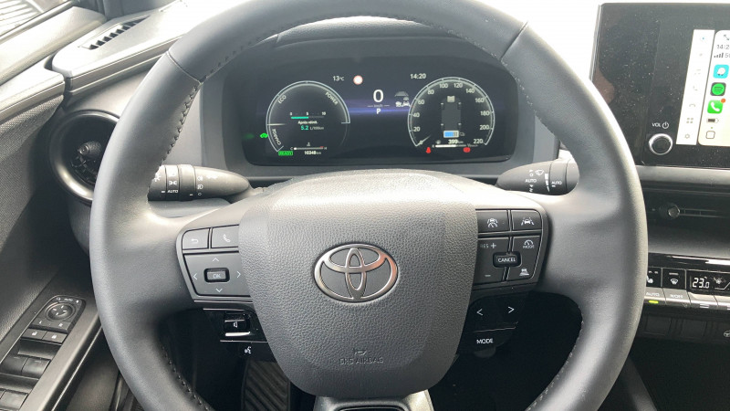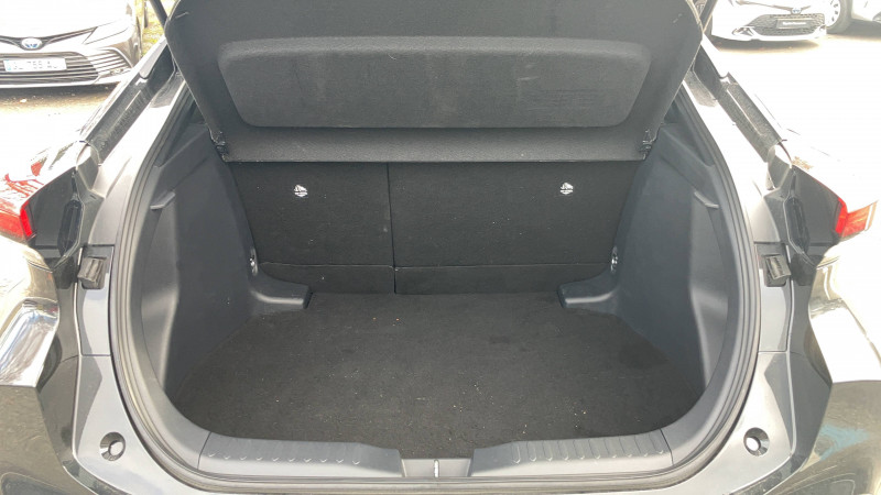6 HP / Activation automatique des feux de détresse AR (FHL) / Aide à la sortie sécurisée (SEA) Le système vous aide à prévenir les accidents en surveillant les autres usagers de la route qui s'approchent par l'arrière. Lorsqu'il détecte la présence d'un cycliste ou d'un véhicule, un indicateur lumineux s'affiche dans les rétroviseurs extérieurs et sur l'écran multi-informations et une alarme sonore alerte les occupants. / Alarme avec fonction antidémarrage / Avertisseur d'angles morts (BSM) Lorsque les capteurs détectent un véhicule dans votre angle mort latéral, un indicateur lumineux s'éclaire sur le rétroviseur extérieur correspondant. Si vous mettez votre clignotant afin d'indiquer un changement de voie alors qu'un véhicule est dans votre angle mort, un indicateur lumineux apparaît dans le rétroviseur correspondant pour vous avertir du danger. / Avertisseur de circulation AR (RCTA) Cet avertisseur vous permet grâce aux capteurs d'angles morts de repérer un véhicule arrivant de côté quand vous sortez en marche AR d'une place de parking. S'il détecte un risque de collision, le système freine automatiquement et stoppe le véhicule. / Carrosserie monoton / Compteur numérique personnalisable 12,3" / Eclairage d'ambiance intérieur monochrome éclairage non personnalisable et non interactif : cave à pieds / rangement passager / Ecrous antivol / Essuie-glaces AV avec détecteur de pluie / Filet coffre / Jantes en alliage 18" bi-ton noir et aluminium / Kit de réparation anti-crevaison / Kit de sécurité / Montants B de portes noir laqué / Optiques AV full-LED / Pare-brise chauffant (sous les essuie-glaces uniquement) / Poignées de portes affleurantes / Radars de stationnement AV et AR (PKSB) Lorsque vous roulez à basse vitesse ou en marche AR, les radars permettent de détecter des objets statiques (obstacles, murs...) ou en mouvement (véhicules traversant à l'AR), le système de freinage de l'aide au stationnement fournit alors une assistance pour réduire l'impact. / Rétroviseur intérieur électrochromatique / Rétroviseurs extérieurs avec éclairage au sol / Sellerie tissu gris foncé avec surpiqûres cuivre / Services connectés de contrôle à distance MyToyota (inclus 4 ans) / Services connectés standards MyToyota (inclus 10 ans) / Seuils de portes en aluminium / Siège conducteur avec support lombaire électrique / Siège passager réglable manuellement en hauteur / Système d'appel d'urgence automatique "E-Call" / Système de rappel pour les sièges AR (RSRS) / Système d'ouverture/fermeture et démarrage sans clé "Smart Entry & Start" / Système multimédia Toyota Smart Connect : Écran couleur tactile 8 haute définition, Connectivité Bluetooth, USB et radio, FM et DAB (digitale), Système de connectivité smartphone Apple CarPlay et Android Auto (sans fil), Services intelligents dont navigation connectée avec infotrafic en temps réel, mises à jour cartographiques, assitant vocal Hey Toyota et recherche de points d'intérêts (inclus 4 ans) / Toyota Safety Sense : Système de sécurité précollision avec détection des véhicules, piétons (jour/nuit) et cyclistes, actif également dans les intersections (PCS), Alerte de franchissement de ligne avec aide au maintien dans la file, assistant de trajectoire et détecteur de fatigue (LTA), Régulateur de vitesse adaptatif intelligent allant jusqu'à l'arrêt (ACC), Lecture des panneaux de signalisation avec limiteur de vitesse (RSA) et Gestion automatique des feux de route (AHB), Système d'arrêt d'urgence autonome (EDSS) / Volant chauffant / Volant gainé de matière synthétique