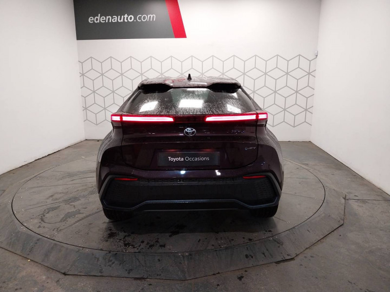 6 HP / Activation automatique des feux de détresse AR (FHL) / Aide à la sortie sécurisée (SEA) Le système vous aide à prévenir les accidents en surveillant les autres usagers de la route qui s'approchent par l'arrière. Lorsqu'il détecte la présence d'un cycliste ou d'un véhicule, un indicateur lumineux s'affiche dans les rétroviseurs extérieurs et sur l'écran multi-informations et une alarme sonore alerte les occupants. / Alarme avec fonction antidémarrage / Avertisseur d'angles morts (BSM) Lorsque les capteurs détectent un véhicule dans votre angle mort latéral, un indicateur lumineux s'éclaire sur le rétroviseur extérieur correspondant. Si vous mettez votre clignotant afin d'indiquer un changement de voie alors qu'un véhicule est dans votre angle mort, un indicateur lumineux apparaît dans le rétroviseur correspondant pour vous avertir du danger. / Avertisseur de circulation AR (RCTA) Cet avertisseur vous permet grâce aux capteurs d'angles morts de repérer un véhicule arrivant de côté quand vous sortez en marche AR d'une place de parking. S'il détecte un risque de collision, le système freine automatiquement et stoppe le véhicule. / Caméra de recul avec lave-caméra / Carrosserie monoton / Compteur numérique personnalisable 12.3 / Eclairage d'ambiance intérieur / Ecrous antivol / Essuie-glaces AV avec détecteur de pluie / Filet coffre / Jantes en alliage 18" bi-ton noir et aluminium / Kit de réparation anti-crevaison / Kit de sécurité / Optiques AV full-LED / Pare-brise chauffant (sous les essuie-glaces uniquement) / Poignées de portes affleurantes / Radars de stationnement AV et AR (PKSB) Lorsque vous roulez à basse vitesse ou en marche AR, les radars permettent de détecter des objets statiques (obstacles, murs...) ou en mouvement (véhicules traversant à l'AR), le système de freinage de l'aide au stationnement fournit alors une assistance pour réduire l'impact. / Rétroviseur intérieur électrochromatique / Rétroviseurs extérieurs avec éclairage au sol / Sellerie tissu gris foncé avec surpiqûres cuivre / Services connectés de contrôle à distance MyToyota (inclus 4 ans) / Services connectés standards MyToyota (inclus 10 ans) / Seuils de portes en aluminium / Siège conducteur avec support lombaire électrique / Siège passager réglable manuellement en hauteur / Système d'appel d'urgence automatique "E-Call" / Système de rappel pour les sièges AR (RSRS) / Système d'ouverture/fermeture et démarrage sans clé "Smart Entry & Start" / Système multimédia Toyota Smart Connect : Ecran couleur tactile 8" haute définition,Connectivité Bluetooth, USB et radio FM et DAB (digitale) Connectivité smartphone Apple CarPlay et Android Auto (sans fil), Navigation connectée avec infotrafic en temps réel et Smart Parking (aide à la recherche de stationnement), Reconnaissance vocale avancée "Hey Toyota", 4 ans de mises à jour cartographiques et services connectés inclus / Toyota Safety Sense : Système de sécurité précollision avec détection des véhicules, piétons (jour/nuit) et cyclistes, actif également dans les intersections (PCS), Alerte de franchissement de ligne avec aide au maintien dans la file, assistant de trajectoire et détecteur de fatigue (LTA), Régulateur de vitesse adaptatif intelligent allant jusqu'à l'arrêt (ACC), Lecture des panneaux de signalisation avec limiteur de vitesse (RSA) et Gestion automatique des feux de route (AHB), Système d'arrêt d'urgence autonome (EDSS) / Volant chauffant / Volant en cuir synthétique