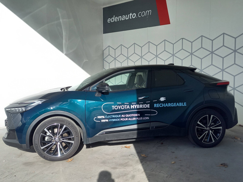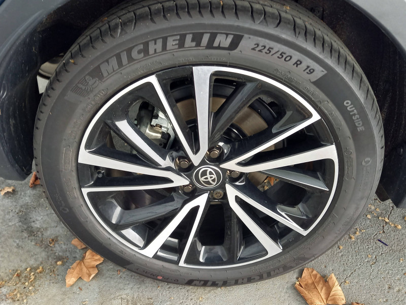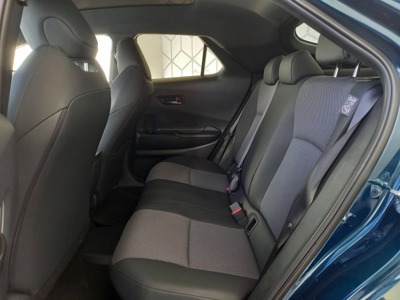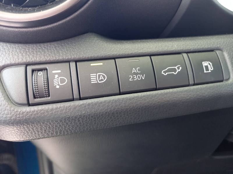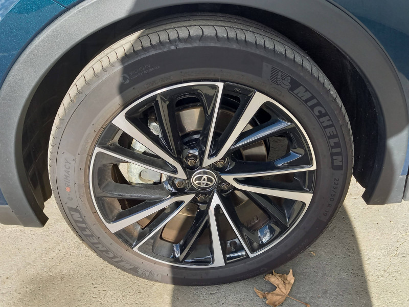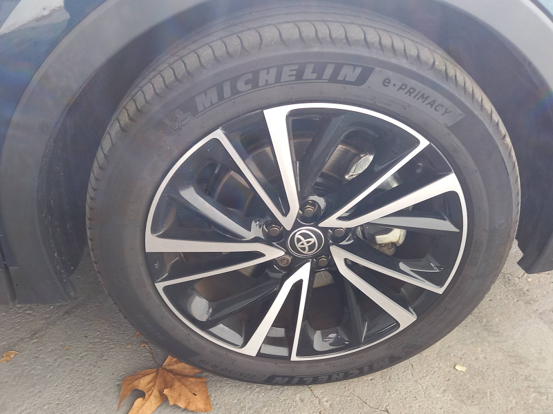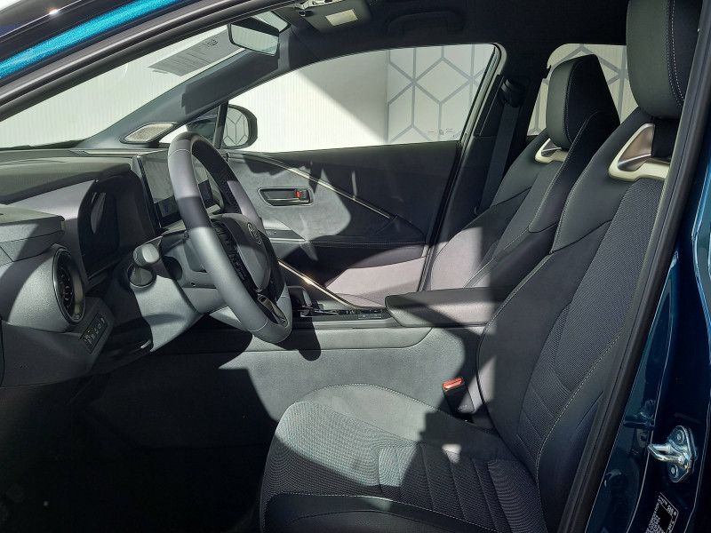 Activation automatique des feux de détresse AR (FHL) / Aide à la sortie sécurisée (SEA) Le système vous aide à prévenir les accidents en surveillant les autres usagers de la route qui s'approchent par l'arrière. Lorsqu'il détecte la présence d'un cycliste ou d'un véhicule, un indicateur lumineux s'affiche dans les rétroviseurs extérieurs et sur l'écran multi-informations et une alarme sonore alerte les occupants. / Alarme avec fonction antidémarrage / Avertisseur d'angles morts (BSM) Lorsque les capteurs détectent un véhicule dans votre angle mort latéral, un indicateur lumineux s'éclaire sur le rétroviseur extérieur correspondant. Si vous mettez votre clignotant afin d'indiquer un changement de voie alors qu'un véhicule est dans votre angle mort, un indicateur lumineux apparaît dans le rétroviseur correspondant pour vous avertir du danger. / Avertisseur de circulation AR (RCTA) Cet avertisseur vous permet grâce aux capteurs d'angles morts de repérer un véhicule arrivant de côté quand vous sortez en marche AR d'une place de parking. S'il détecte un risque de collision, le système freine automatiquement et stoppe le véhicule. / Câble de recharge Mode 2 (Type 2) 1,8 kW / 6 mètres (domestique) / Câble de recharge Mode 3 (Type 2) 22kW / 7,5 mètres (Wallbox) / Carrosserie bi-ton / Coffre avec plancher surélevé / Compteur numérique personnalisable 12,3" / Eclairage d'ambiance intérieur monochrome éclairage non personnalisable et non interactif : cave à pieds / rangement passager / Eclairage d'ambiance intérieur personnalisable et interactif 64 couleurs sous l'écran et panneaux de porte) / Ecrous antivol / Essuie-glaces AV avec détecteur de pluie / Filet coffre / Jantes en alliage 19" bi-ton noir et aluminium / Kit de réparation anti-crevaison / Kit de sécurité / Montants B de portes noir laqué / Optiques AV LED avec signature lumineuse Premium / Ornements latéraux noirs laqués / Pare-brise chauffant (sous les essuie-glaces uniquement) / Poches aumonières au dos du siège passager AV / Poignées de portes affleurantes / Programme "Toyota Experience" / Purificateur d'air ionique Nanoe / Radars de stationnement AV et AR (PKSB) Lorsque vous roulez à basse vitesse ou en marche AR, les radars permettent de détecter des objets statiques (obstacles, murs...) ou en mouvement (véhicules traversant à l'AR), le système de freinage de l'aide au stationnement fournit alors une assistance pour réduire l'impact. / Rétroviseur intérieur électrochromatique / Rétroviseurs extérieurs avec éclairage au sol / Sacoche de rangement pour le câble de recharge / Sellerie Premium suédine et tissu avec surpiqûres bleues et blanches / Services connectés de contrôle à distance MyToyota (inclus 4 ans) / Services connectés standards MyToyota (inclus 10 ans) / Seuils de portes en aluminium / Siège conducteur à réglages électriques avec mémorisation / Siège conducteur avec support lombaire électrique / Siège passager réglable manuellement en hauteur / Sièges AV contours enveloppants / Système audio premium JBL 9 HP / Système d'appel d'urgence automatique "E-Call" / Système de rappel pour les sièges AR (RSRS) / Système d'ouverture/fermeture et démarrage sans clé "Smart Entry & Start" / Système multimédia Toyota Smart Connect Plus : Ecran couleur tactile 12,3" haute définition, Connectivité Bluetooth, USB et radio FM et DAB (digitale) , Système de connectivité smartphone Apple CarPlay et Android Auto (sans fil), Navigation satellitaire embarquée, Services intelligents dont navigation connectée avec infotrafic en temps réel, mises à jour cartographiques, Assistant vocal "Hey Toyota", recherche de points d'intérêts, zones de danger (fixes) / Toyota Safety Sense : Système de sécurité précollision avec détection des véhicules, piétons (jour/nuit) et cyclistes, actif également dans les intersections (PCS), Alerte de franchissement de ligne avec aide au maintien dans la file, assistant de trajectoire et détecteur de fatigue (LTA), Régulateur de vitesse adaptatif intelligent allant jusqu'à l'arrêt (ACC), Lecture des panneaux de signalisation avec limiteur de vitesse (RSA) et Gestion automatique des feux de route (AHB), Système d'arrêt d'urgence autonome (EDSS) / Vitrage feuilleté insonorisé / Volant chauffant / Volant en cuir synthétique