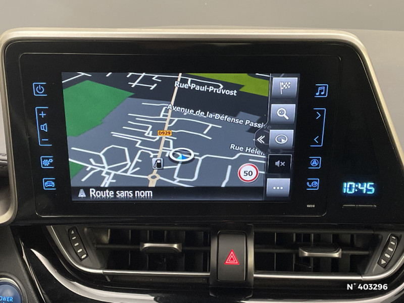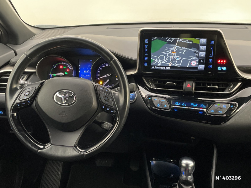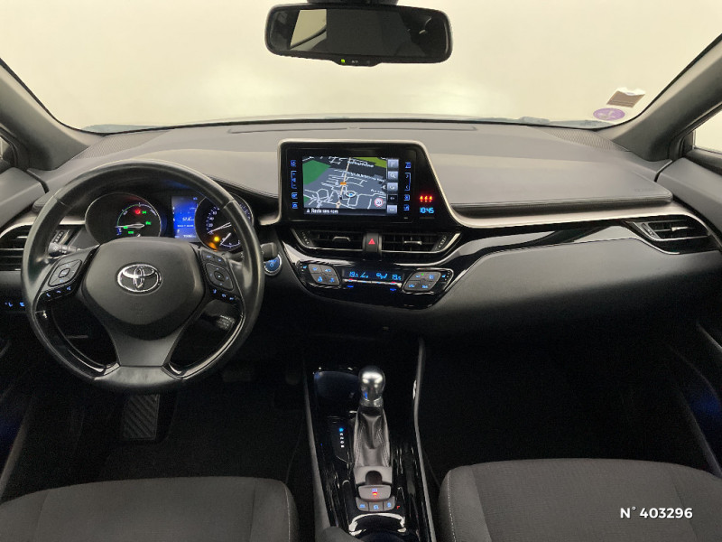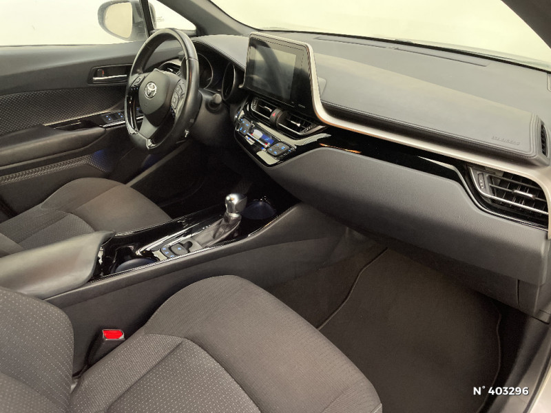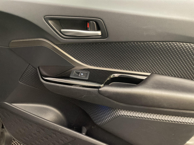Illumination des contre-portes / Kit de réparation anti-crevaison / Lignes de vitres chromées / Montant central (pilier B) noir laqué / Ordinateur de bord avec écran TFT couleur 4.2" multifonctions / Phares à extinction différée / Prises auxiliaire et USB / Réglages manuels du siège conducteur / Rétroviseur intérieur anti-éblouissement / Antenne de toit type requin / Avertisseur d'angles morts (BSM) / Avertisseur de circulation AR (RCTA) / Carrosserie bi-ton toit noir / Console centrale noir laqué / Contre-portes avec inserts noirs laqués / Follow me home (feux AV à extinction différée) / Sellerie tissu gris foncé / Sièges AV type sport avec maintiens latéraux / Support lombaire du siège conducteur (électrique) / Système d'aide au stationnement intelligent / Système de contrôle de stabilité (VSC) + Système de contrôle de motricité (TRC) / Système de freinage antiblocage ABS / Système de téléphonie Bluetooth / Système d'ouverture/fermeture et démarrage sans clé "Smart Entry & Start" (conducteur, passager et coffre) / Système multimédia Toyota Touch 2 (Système audio avec radio) / Toyota Safety Sense Système de sécurité précollision avec détection des piétons, Alerte de franchissement de ligne et détecteur de fatigue, gestion automatique des feux de route, lecture des panneaux de signalisation, régulateur de vitesse adaptatif. / 6 HP / 7 Airbags (frontaux et latéraux pour conducteur et passager AV, rideaux AV et AR et protège-genoux conducteur) / Rétroviseurs extérieurs rabattables automatiquement avec projection au sol du logo Toyota C-HR / Indicateur de perte de pression des pneus