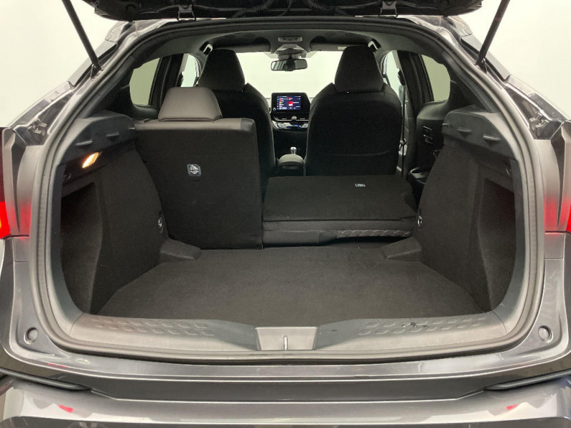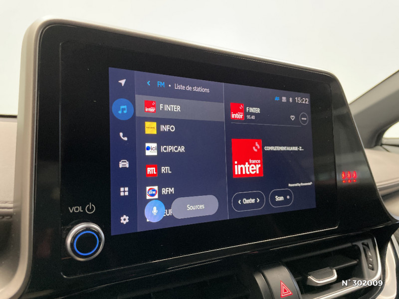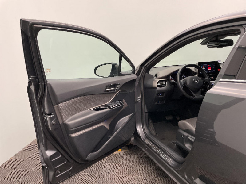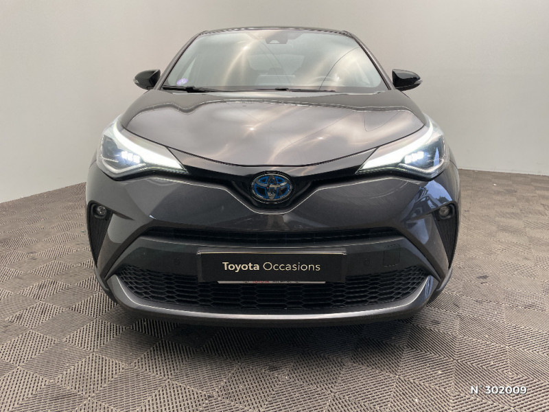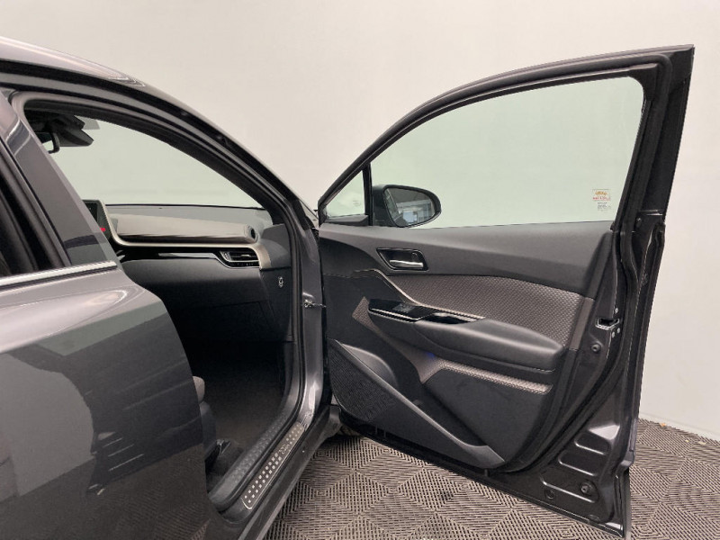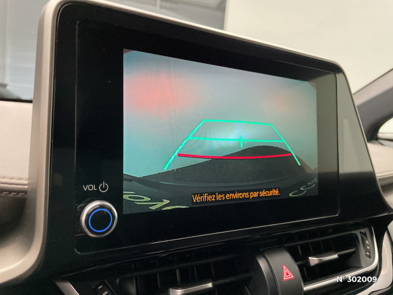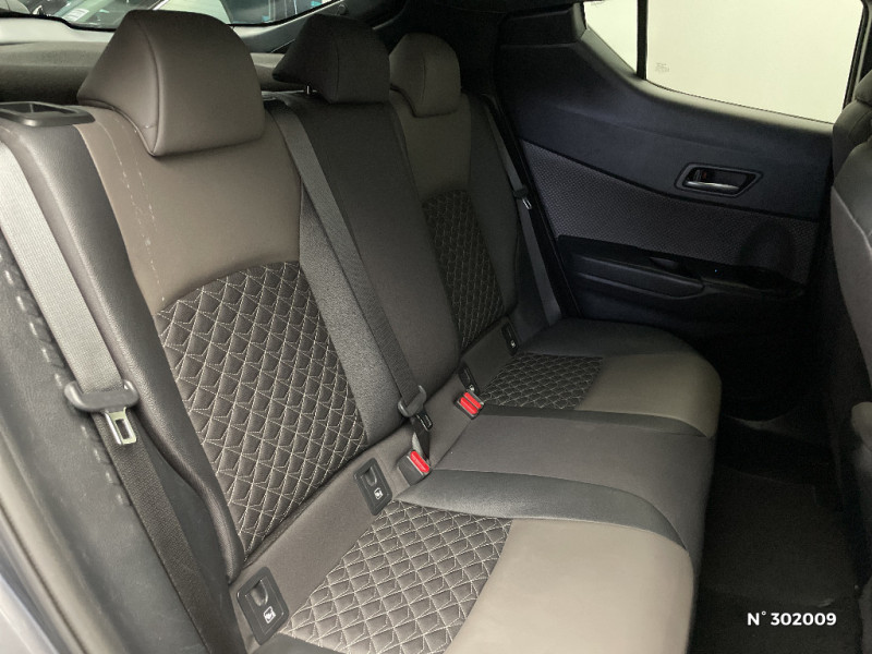 Ciel de pavillon noir / Combiné d'instrumentation avec écran couleur TFT multifonction 4" / Coques de rétroviseurs extérieurs noires / Eclairage d'accueil / Ecrous antivol / Fermeture centralisée avec commande à distance / Système de contrôle de trajectoire (VSC) / Système de freinage antiblocage (ABS), BA et EBD / Système multimédia Toyota Touch avec radio DAB, écran couleur tactile 8'', bluetooth, USB / Tapis de sol en velours AV/AR / Toyota Safety Sense Système de sécurité précollision avec détection des piétons, Alerte de franchissement de ligne et détecteur de fatigue, gestion automatique des feux de route, lecture des panneaux de signalisation, régulateur de vitesse adaptatif. / Toyota Touch (système audio, écran tactile, Bluetooth et caméra de recul) / 6 HP / 7 Airbags (frontaux, lateraux, rideaux et un protège-genoux conducteur) / Accoudoir central avec compartiment de rangement / Ajustement manuel de la hauteur des phares / Alarme avec fonction antidémarrage / Antenne de toit type requin / "ATTENTION" - Equipements non communiqués / Avertisseurs d'angles morts et de circulation AR avec freinage d'urgence auto / Becquet AV couleur carrosserie / Calculateur de temps de conduite en électrique / Carrosserie bi-ton avec toit noir / Feu de recul central à LED sur bouclier AR / Feux AR à LED avec clignotants séquentiels / Filet coffre / Follow me home (feux AV à extinction différée) / Frein de stationnement électrique / Garnissage de portières brun / Indicateur de sous-gonflage des pneus / Kit de réparation anti-crevaison / Kit de sécurité / Lignes de vitres chromées / Montant central (pilier B) noir laqué / Optiques AV LED avec signature lumineuse Premium / Optiques AV/AR full-LED avec signature lumineuse Premium / Ornements de console centrale et de portières Gris Lune / Peinture bi-ton Bleu Nebula/Toit Noir / Poches aumonières au dos des sièges AV / Poignées de portes couleur carrosserie / Poignées de portes et pare-chocs AV couleur carrosserie / Purificateur d'air ionique Nanoe / Rétroviseur intérieur anti-éblouissement / Rétroviseur intérieur électrochromatique / Rétroviseurs extérieurs avec projection au sol du logo Toyota C-HR / Rétroviseurs extérieurs électriques et dégivrants avec rappels de clignotants / Revêtement supérieur de planche de bord et d´accoudoir central brun sombre / Sellerie mi-cuir chocolat et noir avec surpiqûres faà§on diamant / Siège conducteur à réglage lombaire électrique / Siège passager AV ajustable manuellement en hauteur / Sièges AV type sport avec maintiens latéraux / Système AVAS (Acoustic Vehicle Alerting System) / Système d'accès (conducteur, passager et coffre) et de démarrage sans clé "Smart Entry & Start" / Système d'appel d'urgence automatique "E-Call" / Système de connectivité smartphone Apple CarPlay / Android Auto / Système de contrôle de motricité (TRC)